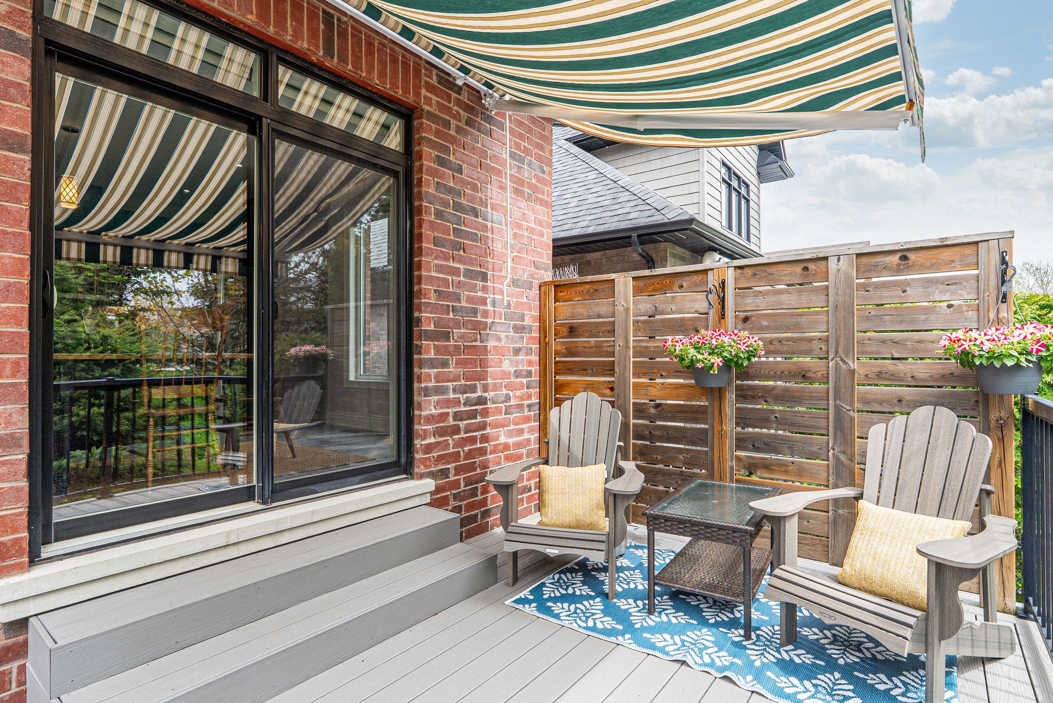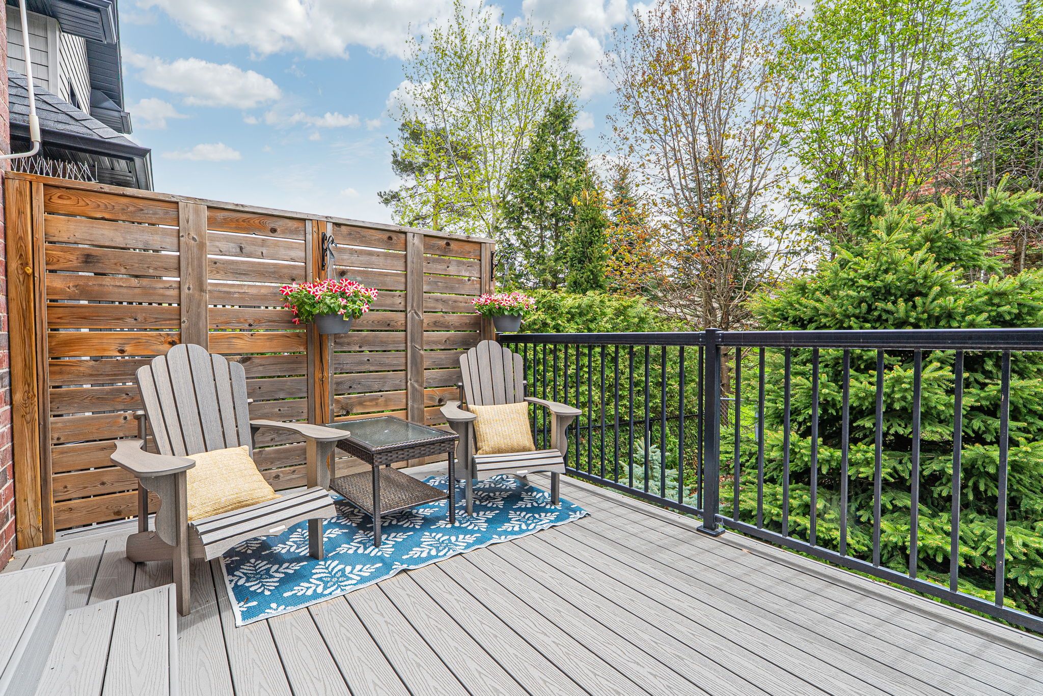 • Landscaped backyard has a raised deck and interlock patio for outdoor enjoyment.