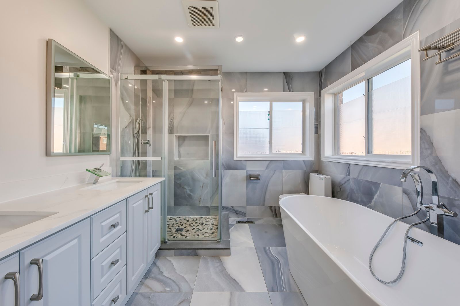 • Master bedroom features a custom ensuite with heated floors and luxury tiles.