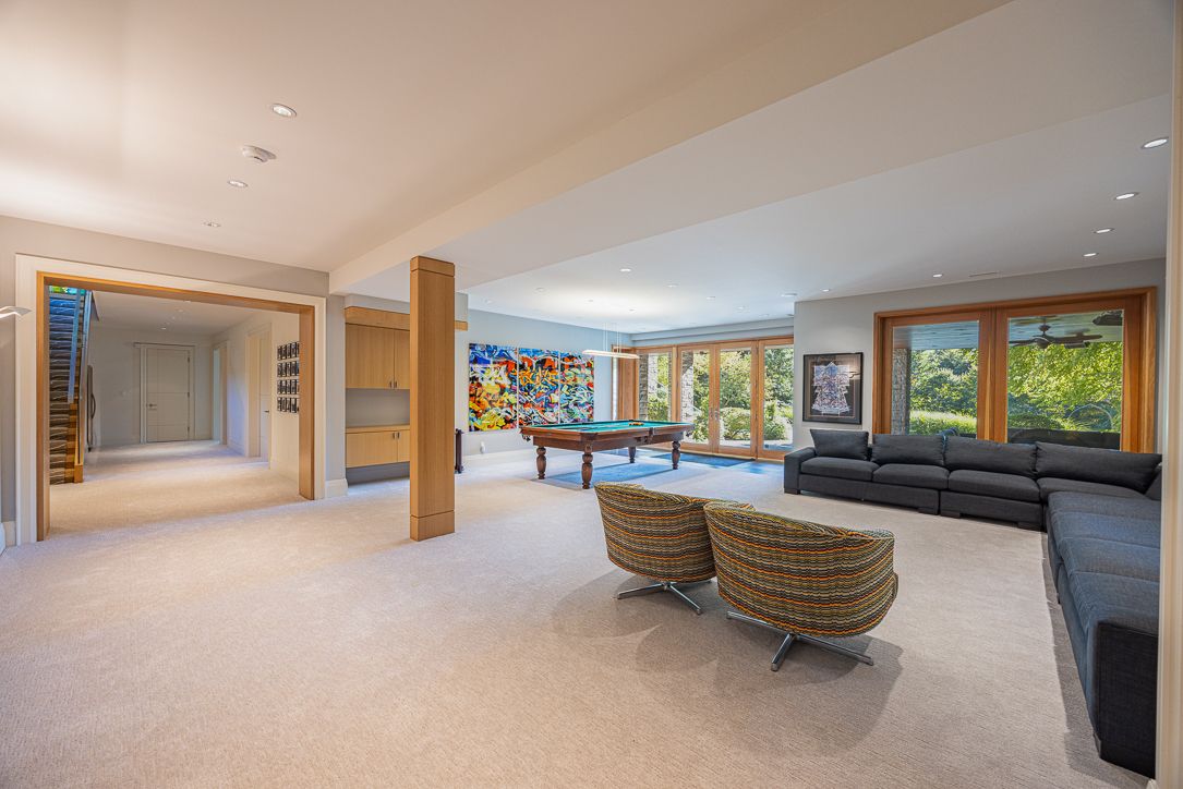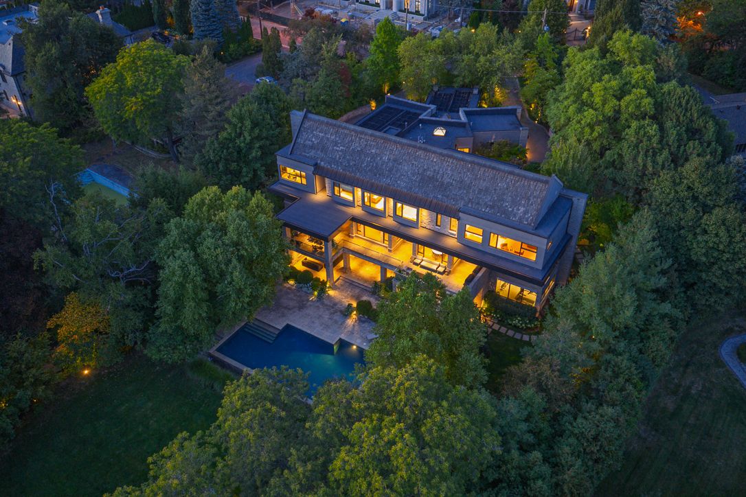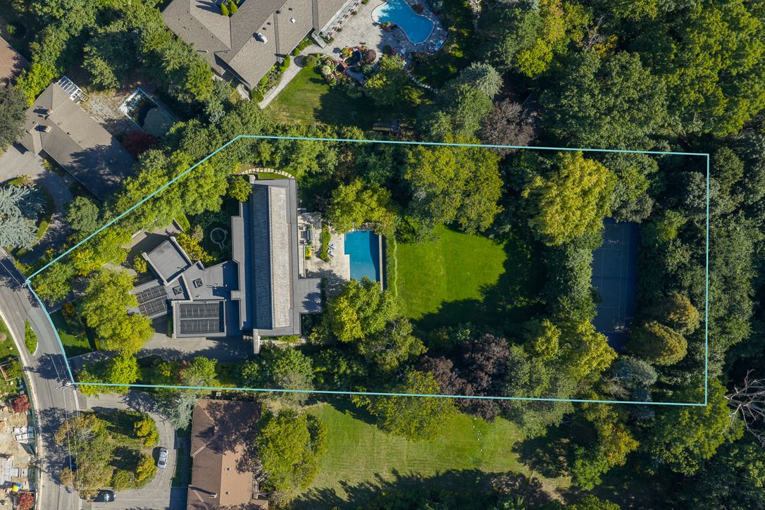 Everscape, a frank lloyd wright inspired architectural masterpiece at 7 oxbow road where architecture and nature become one. Set on 1. 38 acres of pristine ravine land, everscape is a stunning 12,000-square-foot residence inspired by the timeless vision of frank lloyd wright. Designed to harmonize with its natural surroundings, the home integrates stone, wood, and expansive glass to create a seamless connection between architecture and landscape. A circular motor court introduces the property, while walls of windows and soaring ceilings bathe the interiors with an abundance of natural light. On the main floor, a flowing open-concept layout unites principal rooms with rich millwork, a dramatic exposed stone wall, and a striking aquarium touches that add warmth and unique character. The home offers six bedrooms and eight bathrooms, each filled with natural light and treetop views of the 488-foot deep ravine lot. The primary suite is a private retreat with a marble-clad spa ensuite, oversized walk-in closet, and tranquil vistas overlooking the pool and ravine. Entertainment abounds with a state-of-the-art movie theatre seating 11 with a built-in bar, a recreation room, yoga studio, gym, and steam shower. Multiple walkouts connect the interior to the resort-style backyard. The grounds of everscape evoke the serenity of a private park. Designed for both relaxation and grand entertaining, the property features: a saltwater infinity pool and hot tub suspended over ravine views a tennis / sport court, framed by graceful willow trees an outdoor entertainment pavilion with two barbecues, gas fireplace, television, and lounge space perfect for alfresco dining beneath the moon and starshere, every moment embraces nature, privacy, and luxury in perfect balance.