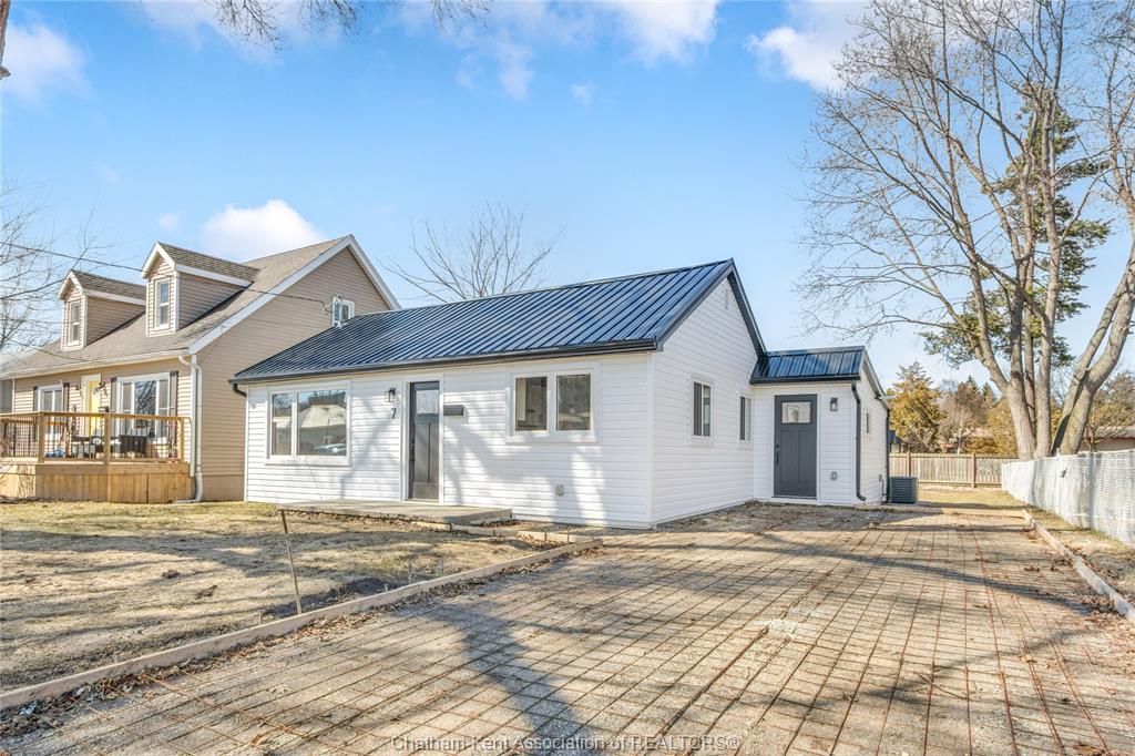 Welcome to 7 oxley drive in the desirable north end of chatham! Perfectly situated close to shopping, restaurants, gyms, schools, and everyday amenities, this fully renovated 2-bedroom bungalow offers stylish, move-in-ready living with high-end custom finishes throughout. From the moment you arrive, you’ll appreciate the extensive exterior updates including a new steel roof, new vinyl siding, new windows, and new exterior doors. Inside, the home has been thoughtfully redesigned with modern elegance and functionality in mind. The stunning custom kitchen features quartz countertops, a beautiful breakfast island, and quality cabinetry, perfect for morning coffee or entertaining guests. The spacious family room offers plenty of room to host and relax. You’ll find two generously sized bedrooms, a gorgeous 4-piece bathroom finished with custom porcelain tile, plus a convenient 2-piece bath. A wide hallway leads to the dedicated laundry room and a double sliding patio door that opens onto a massive brand-new deck, ideal for summer gatherings. The driveway is prepped and ready for your finishing touches. This turnkey bungalow is an incredible opportunity in a sought-after location. Don't delay, call today!