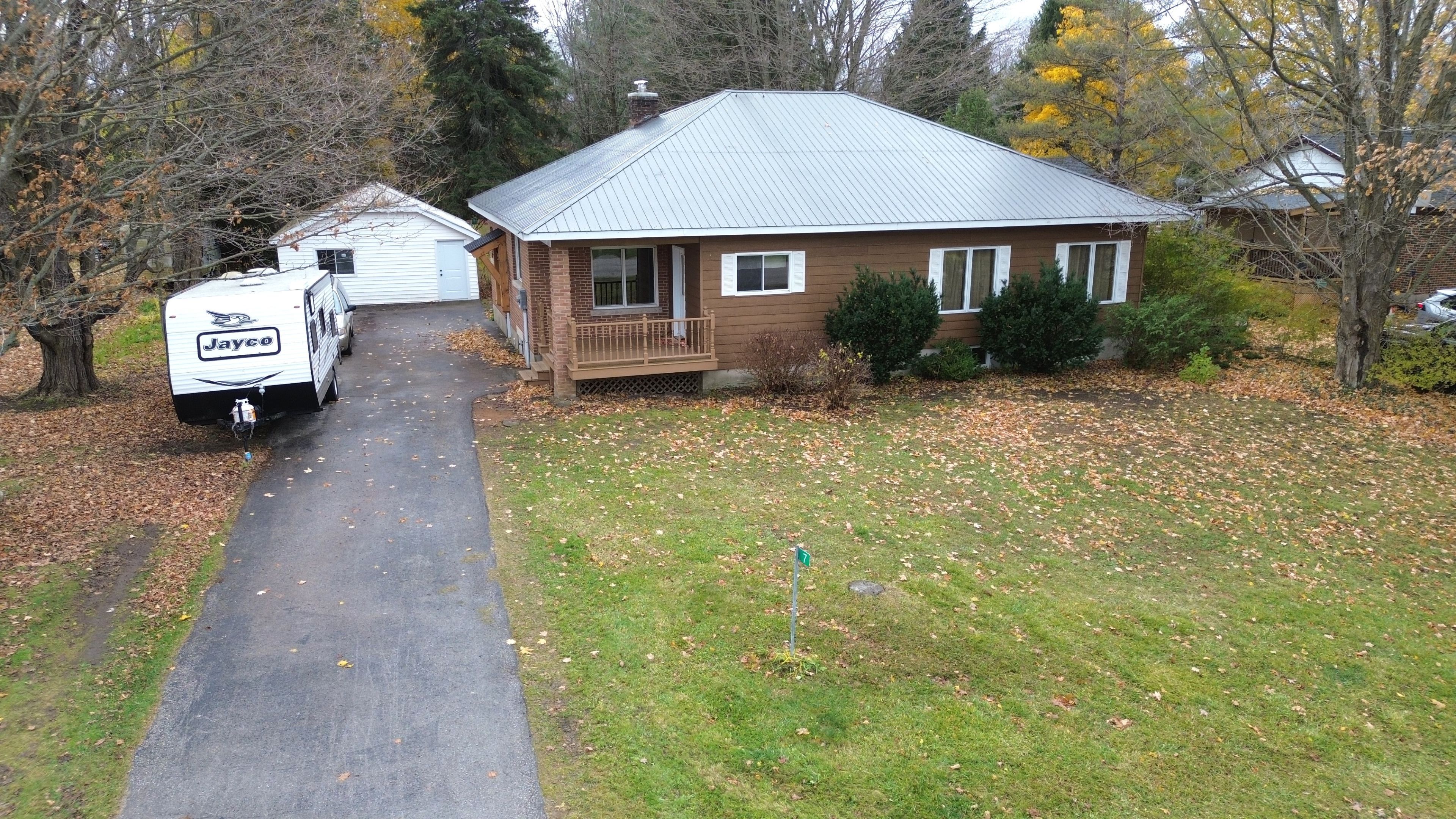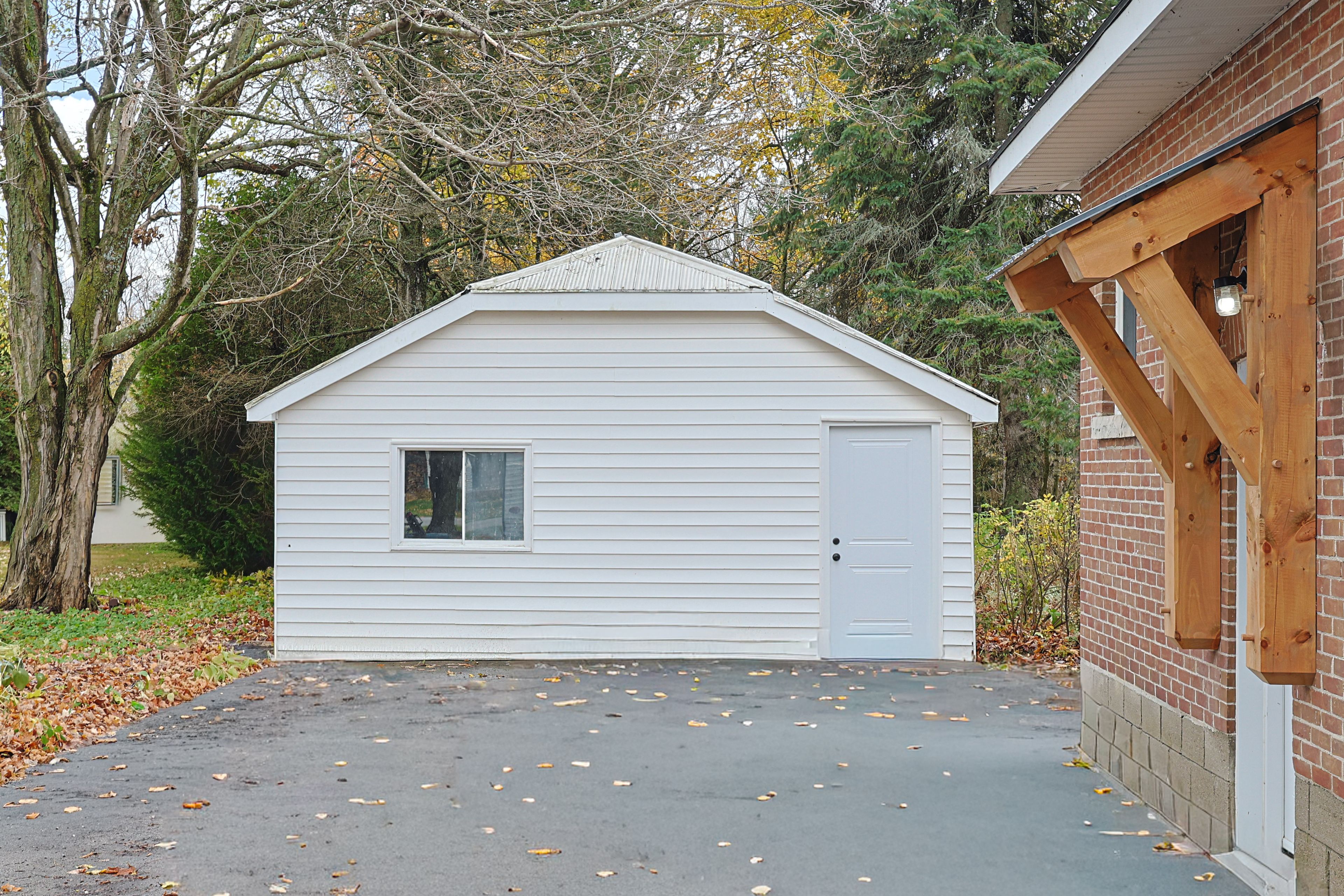 Charming 1600 sq ft brick home with timber frame accent and tons of windows filling every room with natural light, nestled on a spacious treed lot just south of hepworth featuring a cozy outdoor firepit perfect for evening gatherings and a detached garage currently set up as a versatile workshop. Inside, discover a generous open-concept living room flowing seamlessly into a modern kitchen ideal for entertaining, three comfortable bedrooms, two well-appointed bathrooms, and a finished rec room downstairs offering extra space for relaxation or hobbies-all in a serene, private setting that blends rustic charm with everyday convenience. Don't miss this chance to own your own slice of paradise.
