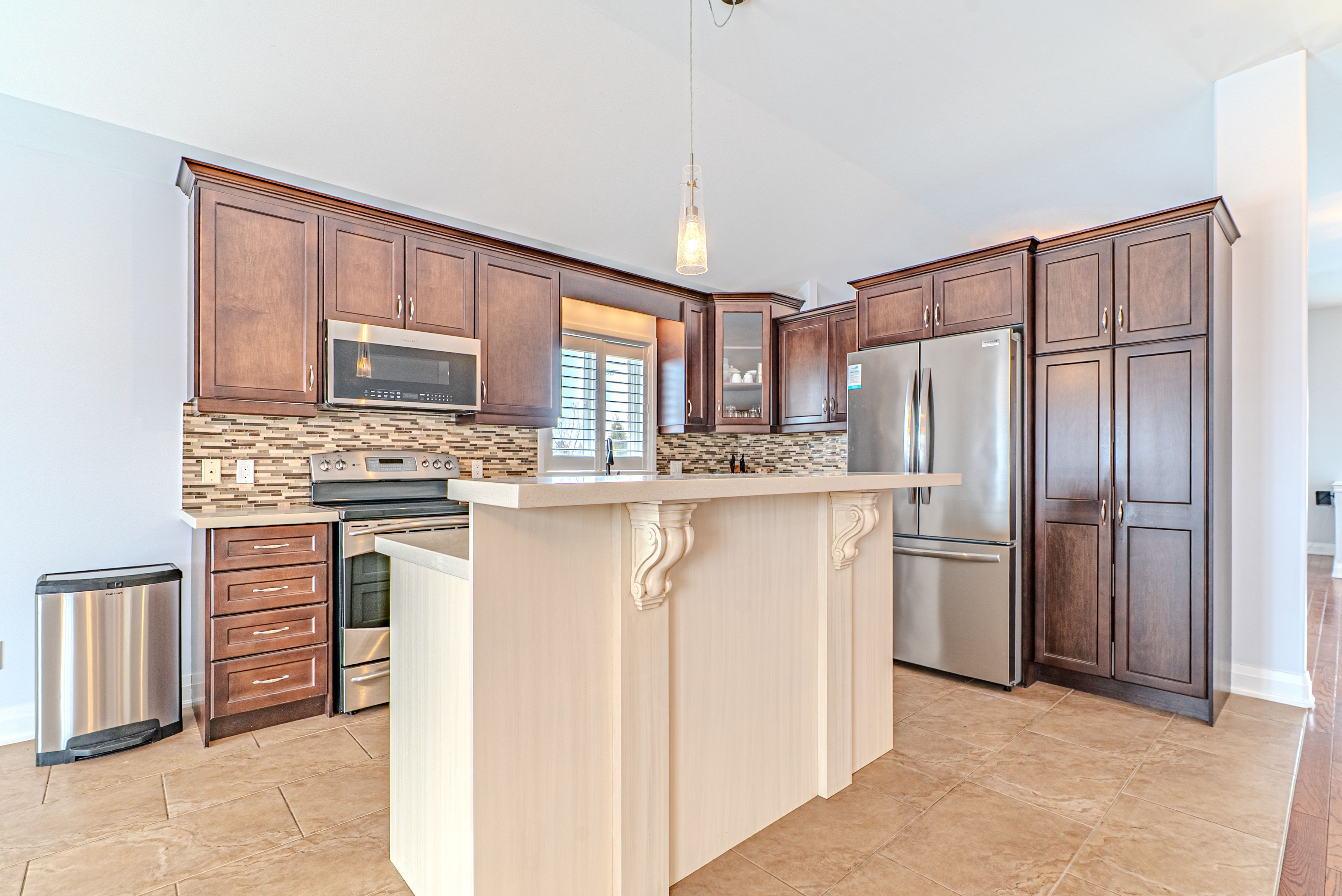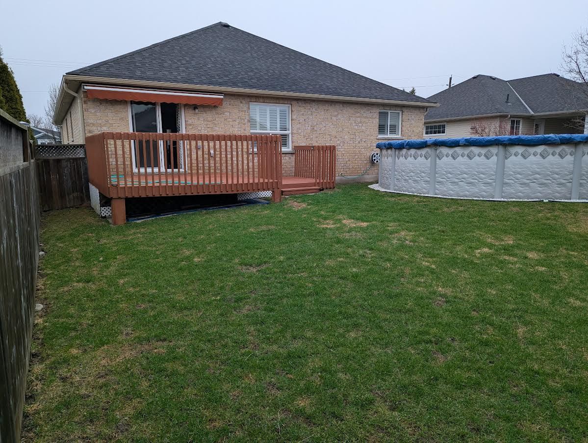 Spacious all brick lindsay bungalow approximately 1640 sqft. Original builder's upgraded model home. Well located oversized lot near the logie street park and paved riverfront trail. Covered front porch, fully fenced yard with above ground pool and custom shed. Open concept modern designed home with towering vaulted ceilings, hardwood flooring, both quartz tops and custom made california shutters throughout. Main floor laundry (includes pedestal washer/dryer) and double garage entry. Primary bedroom with walk in closet, ensuite with soaker tub and separate big tiled shower. Vastly enhanced kitchen with island and all appliances. Huge unfinished basement includes rough in for bath and/or kitchen. Roof reshingled, new eaves and facia all in 2024.
