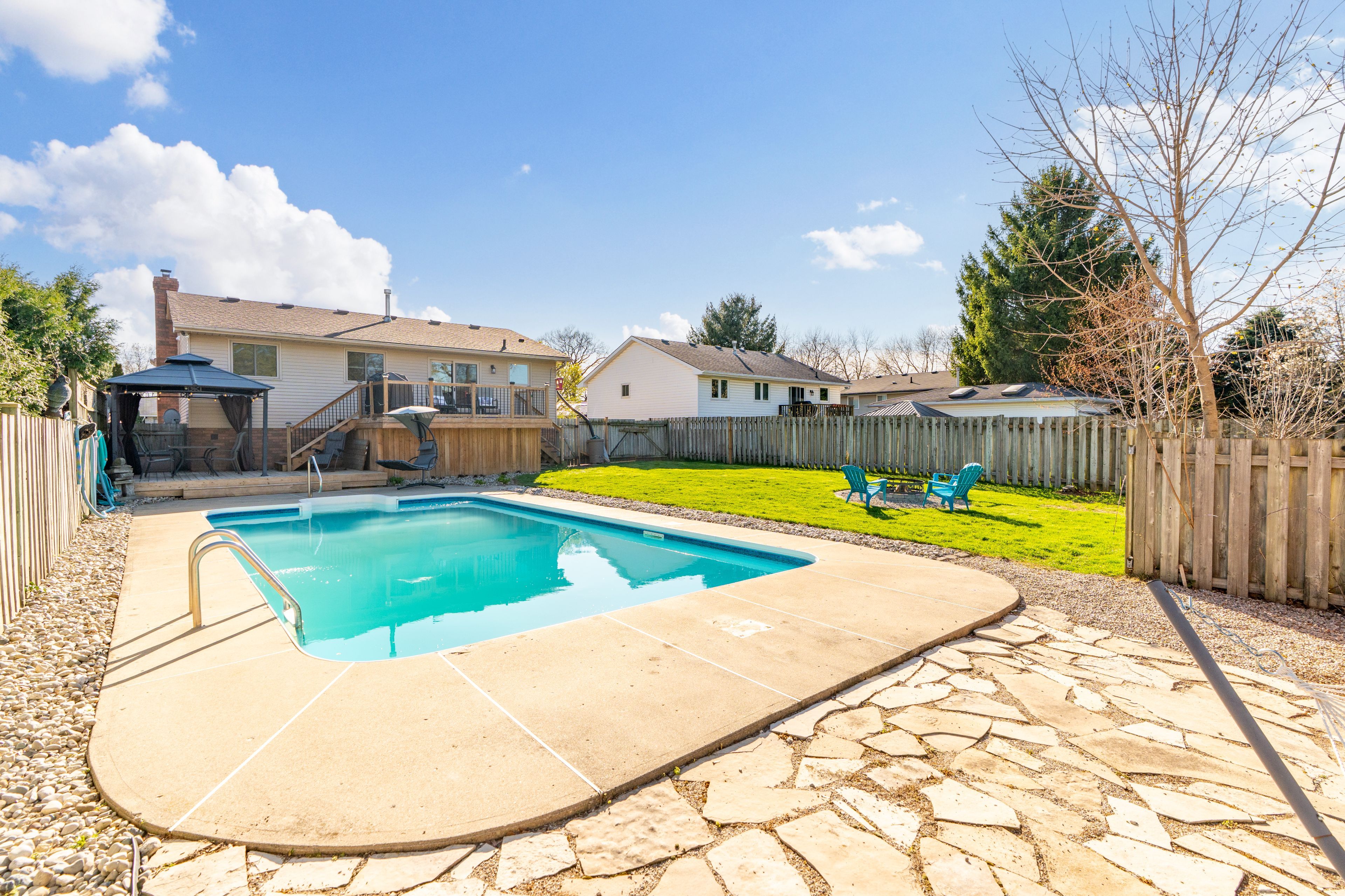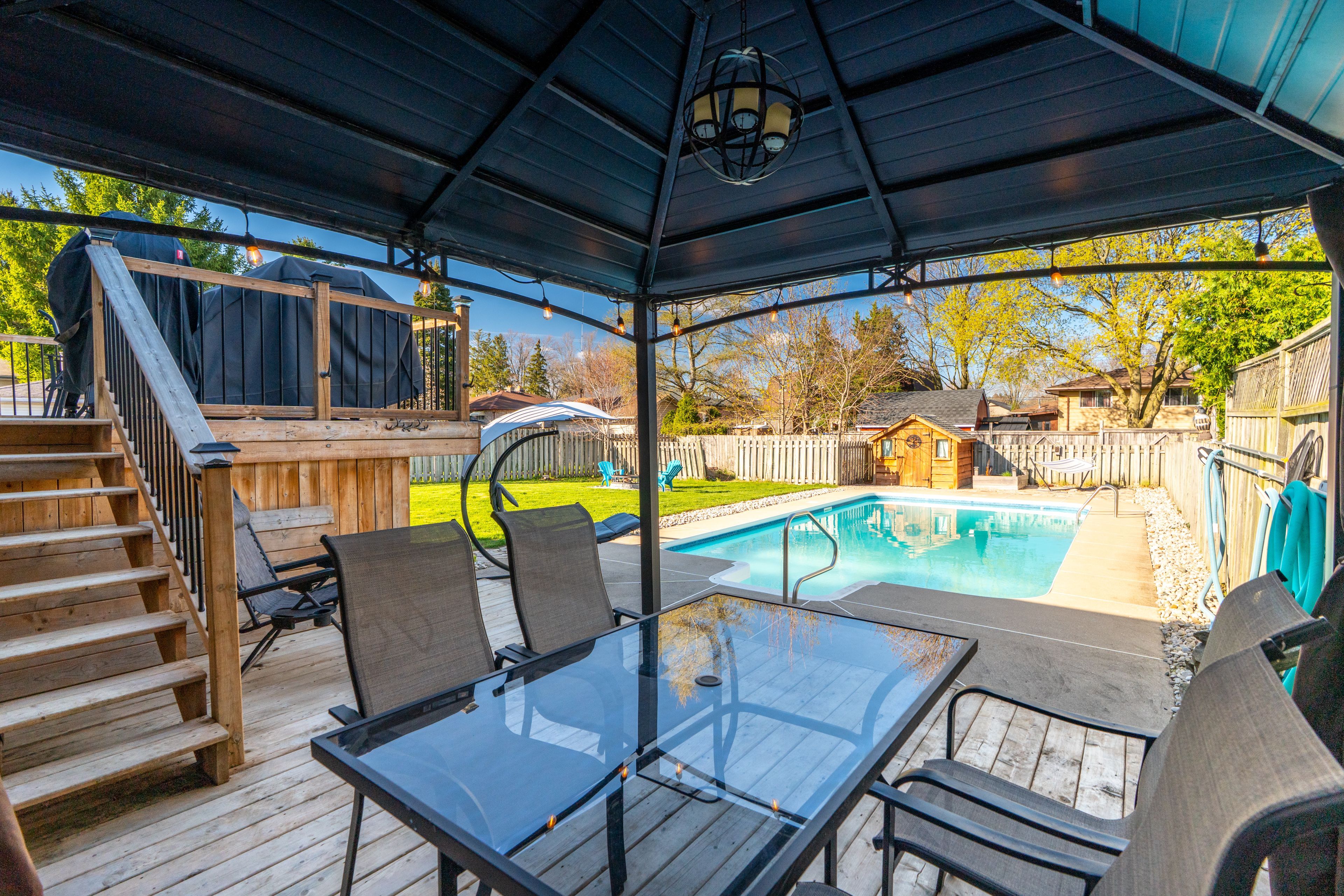 Welcome to 7 pearson avenue in strathroy , a home that truly has something for everyone, inside and out. Offering 3 bedrooms on the main floor and an additional bedroom in the lower level, this home provides a flexible layout for families, guests, or a home office. The bright and inviting living room is filled with natural light, creating a warm space to gather and unwind. The main floor features a beautifully updated bathroom (2024), while the lower level offers a spacious family room and a second 3 piece bathroom updated in 2023. Step outside and you'll quickly see what makes this property so special. The backyard is exceptional, designed for both relaxing and entertaining. Enjoy a two tier deck off the dining area that leads to a covered space, perfect for summer evenings. The 16x32 inground pool, with a 12 foot deep end, is the ultimate summer feature, complemented by a campfire area and plenty of space for a vegetable garden. With lovely curb appeal, ample parking, a roof updated in 2017, and a furnace and owned hot water tank replaced in 2020, this home has been well cared for and thoughtfully updated. A fantastic opportunity to enjoy comfortable living with an incredible outdoor space, all in a great, family friendly neighbourhood in strathroy.