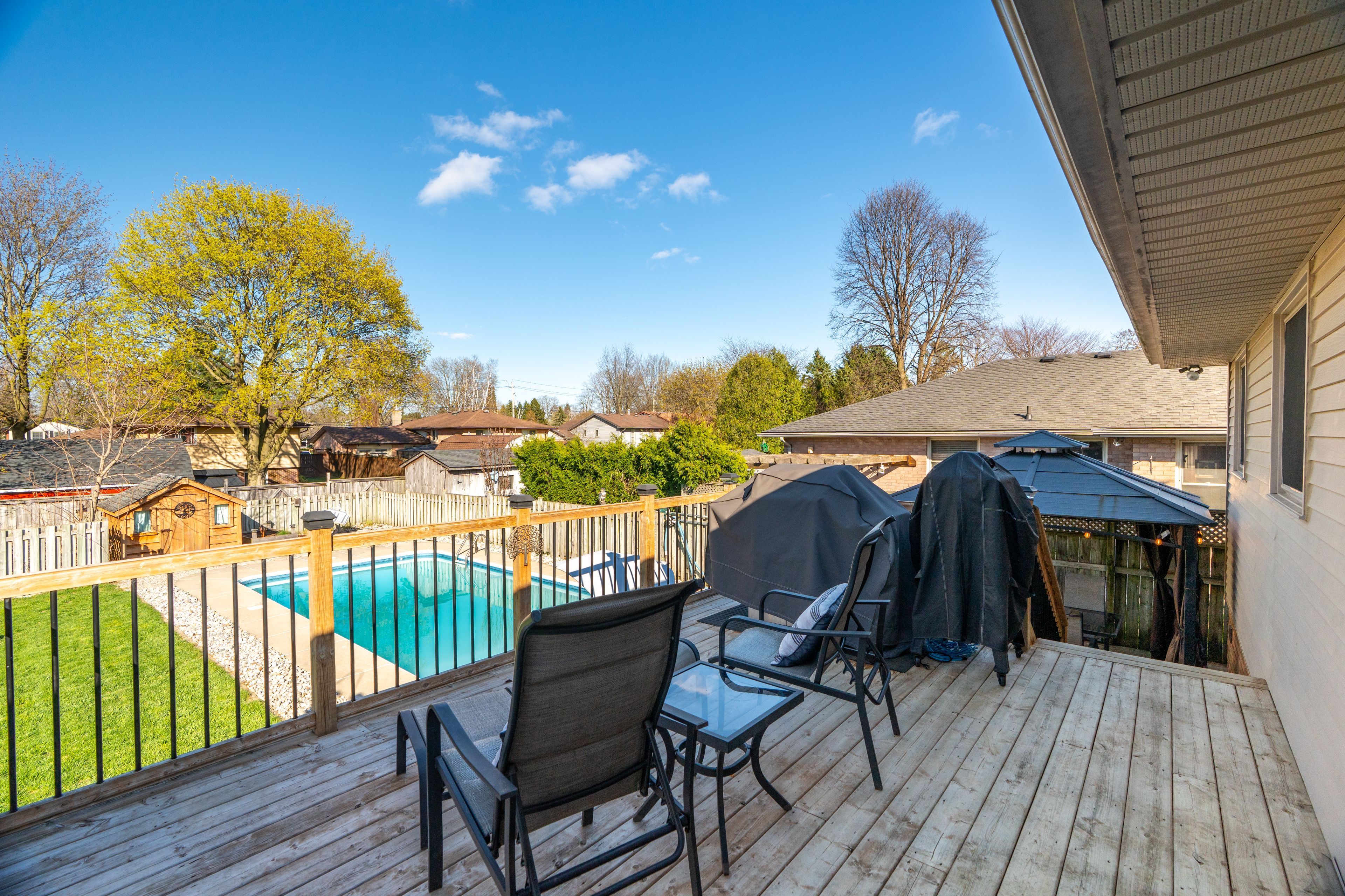 • Exceptional backyard with a two-tier deck and inground pool for fun.