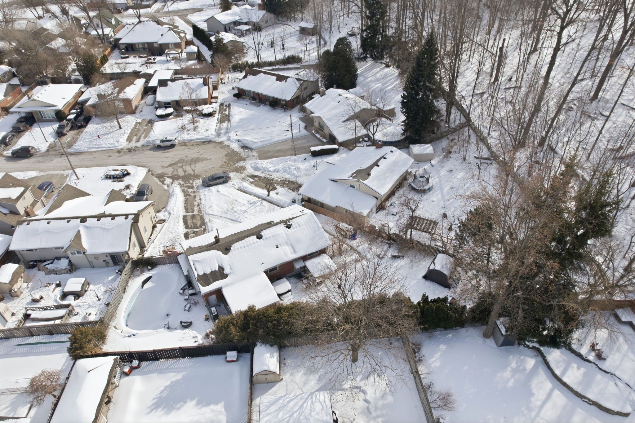 • Beautifully treed pie-shaped lot with a heated in-ground pool.
