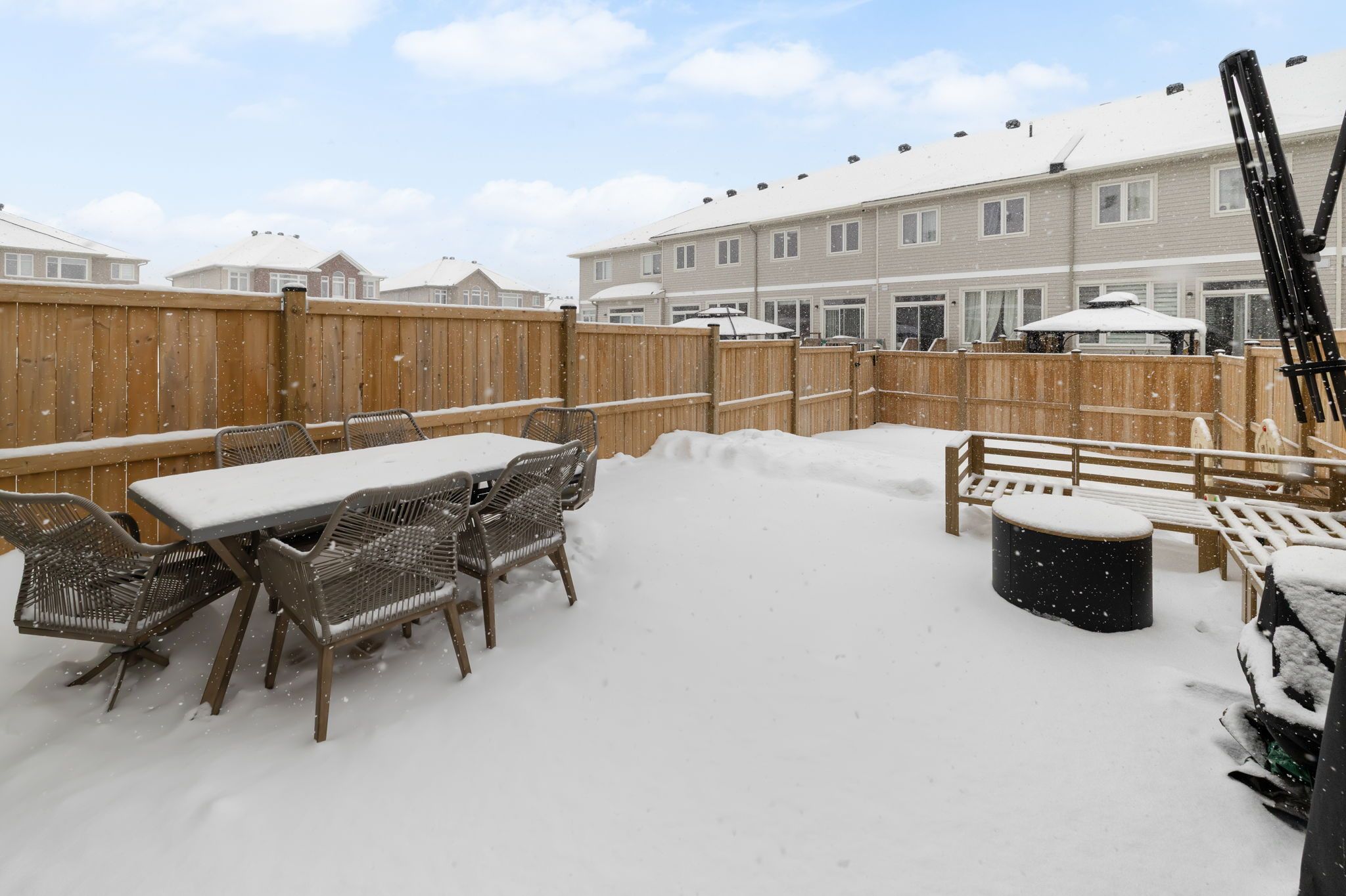 Welcome to 7 pollock drive, a beautifully maintained townhome offering upgraded finishes, smart design, and effortless living in one of carleton place's most convenient neighbourhoods. The main floor features a bright open-concept layout filled with natural light, creating a warm and inviting space for both everyday living and entertaining. The kitchen showcases stone countertops, stylish backsplash, upgraded millwork, and quality finishes throughout. It flows seamlessly into the dining and living areas with excellent sightlines and functionality. Rich hardwood floors elevate the entire space. Upstairs, you will find three generous bedrooms plus a versatile loft, ideal for a home office, reading nook, or kids' play area. The primary bedroom offers a calm and comfortable retreat with walk in closet and tasteful ensuite bathroom, while the additional bedrooms provide flexibility for family or guests. The fully finished basement adds exceptional living space and includes an additional bedroom, making it ideal for guests, extended family, a private home office, or a teen retreat. Step outside to a fully fenced backyard, completed in 2024, complete with landscaping and a deck added in 2024. It is a private space to relax, host summer bbqs, or let kids and pets play safely. Heavily upgraded and truly move-in ready, this townhome offers the perfect balance of space, comfort, and low-maintenance living, just minutes from parks, schools, shopping, and everything carleton place has to offer.