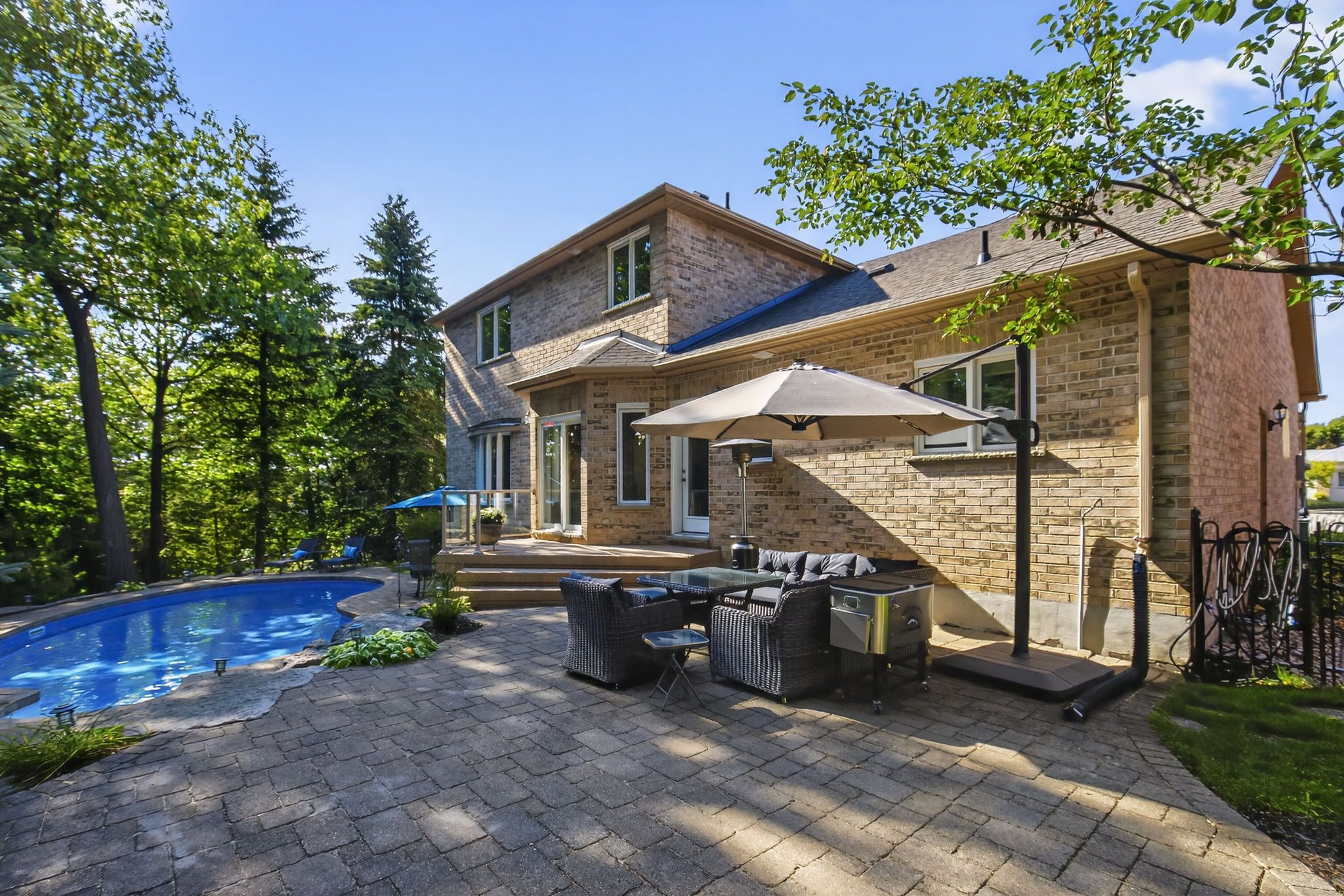 This elegant executive home is gracefully positioned on an exclusive, tranquil circle in the highly sought-after wildwood area, an ideal setting for refined family living. Perfectly situated just moments from great schools, lush parks, vibrant amenities, highway access, and picturesque walking trails, the location effortlessly blends convenience with serenity. Set on a large, tree-lined lot (129. 31ft across the rear), the property exudes privacy and curb appeal. The backyard reveals a true urban oasis, complete with a sparkling inground saltwater pool, mature landscaping, and a setting designed for both relaxation and elegant entertaining. Lovingly maintained by the original owners, this residence showcases pride of ownership throughout. Finished top to bottom and flooded with natural light on all levels, the main floor also boasts 9'' ceilings and a large office which could easily be used as a private main floor bedroom. Lower level is beautifully finished with a spacious family/rec room w/cozy gas fireplace, a 4th bedroom and 3pce bath for added convenience while the silent tji engineered floor system ensures comfort and quality. Notable highlights include an oversized 20 x 26 garage (interior measurements), rich hardwood flooring, and upgraded triple-pane windows. The home is further enhanced with modern updates: a high-efficiency furnace (2018), water softener (2025), winter pool cover (2022), pool heater (2024), and recent interior repainting. The property is also prewired for a hot tub, allowing for future indulgence. Every detail reflects thoughtful design and enduring craftsmanship. With its combination of timeless elegance, exceptional amenities, and a premier setting, this is truly the perfect family home in one of barries most desirable enclaves.