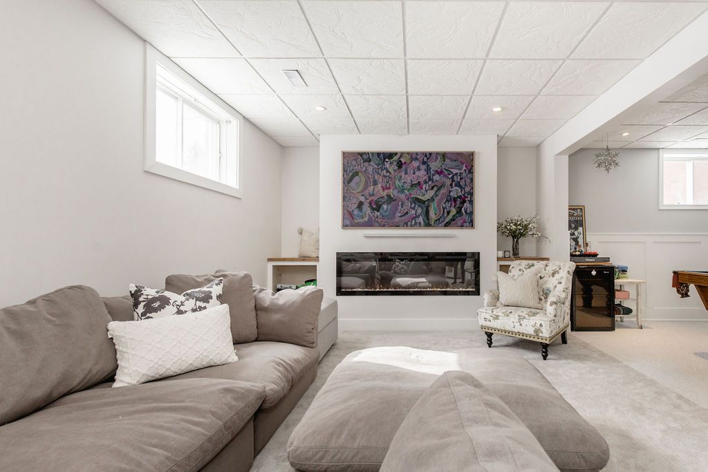 • Bright finished basement with pool table and dedicated workout room.