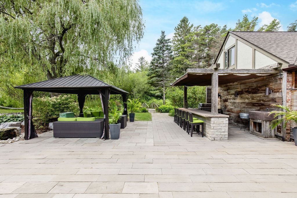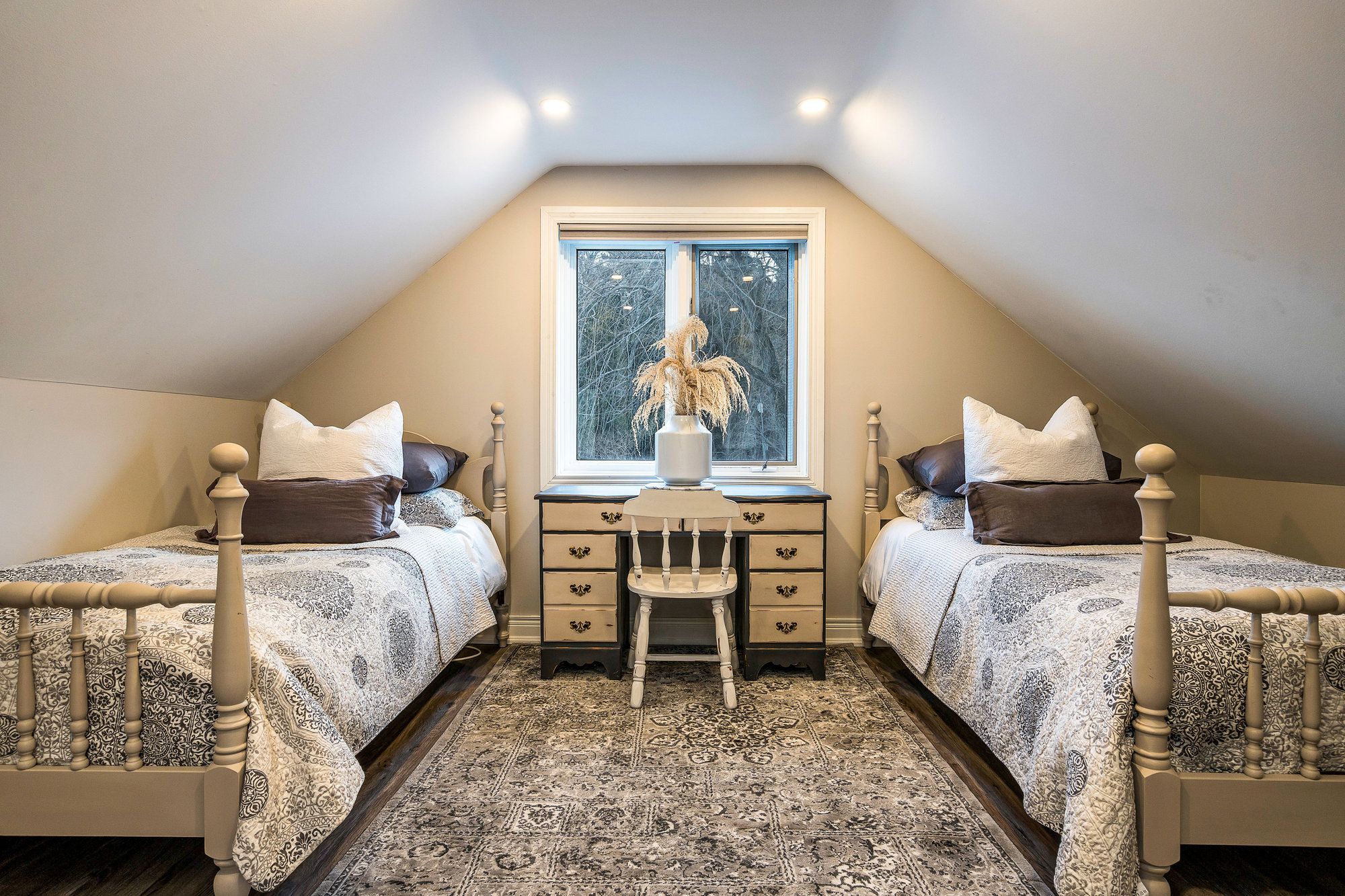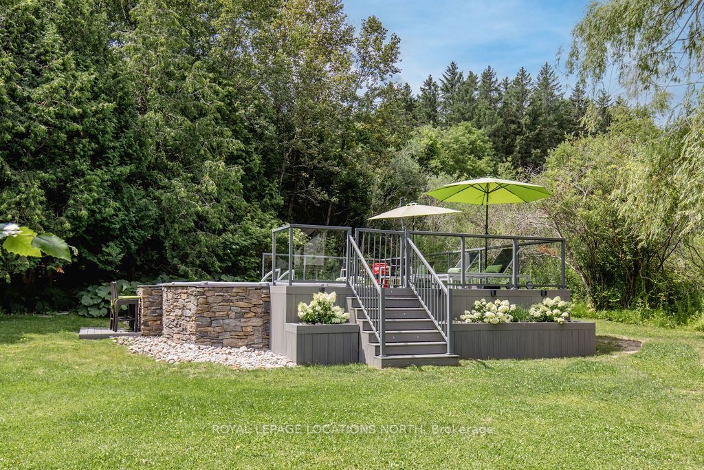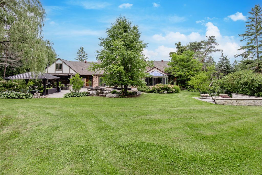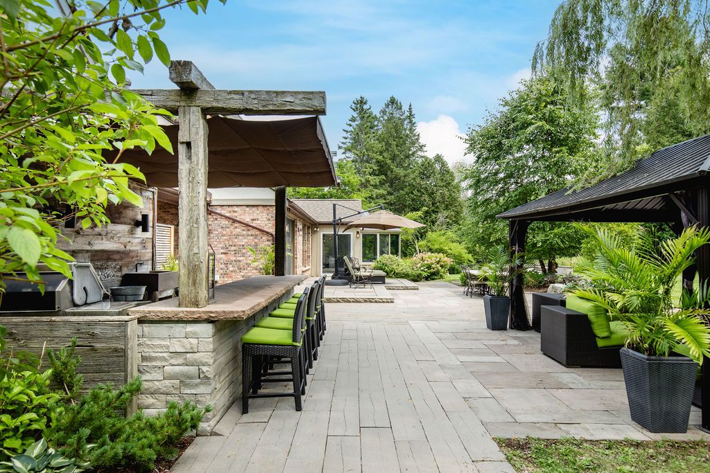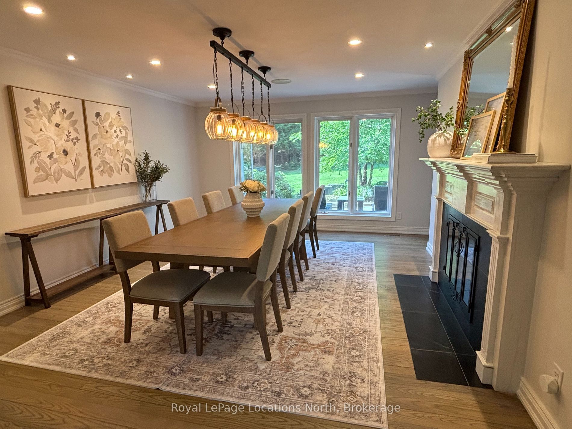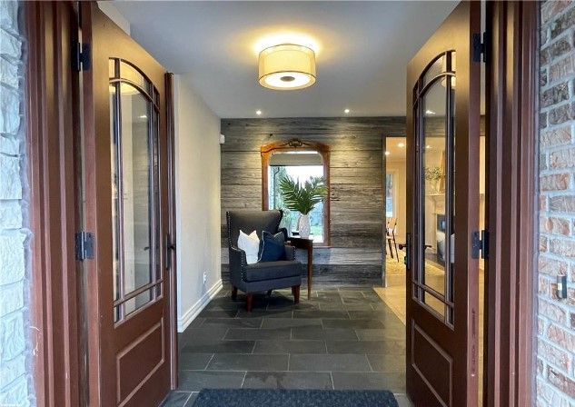 Discover your own private retreat in this 4,297 sqft resort-style home set on 1. 84 acres of beautifully landscaped grounds. With a 3-car garage, 12 perennial gardens, irrigation, custom lighting, inviting gathering areas + a private forest with direct trail access, this property is designed for luxury living. The expansive stone patio is an entertainers dream, featuring a gazebo, water feature, outdoor bbq kitchen, stone slab bar with barn beam accents, shadefx sunbrella retractable canopy & a stunning barn board wall. Relax by the propane fire bowl, in the heated salt-water pool with composite decking, or under the outdoor cedar shower. Inside, refinished hardwood floors, crown molding & exposed barn beams create a warm, timeless feel. A built-in sonos sound system with 10 zones & 88 pot lights set the perfect mood. The chefs kitchen boasts a 4. 5' x 10. 1' cambria stone island, creemore beer taps, bar fridge & stainless steel appliances. The formal dining & family rooms each offer wood-burning fireplaces & patio walkouts, ideal for gatherings. The main floor features 3 unique bedrooms, including a spa-style bath with a walk-in glass shower, floating tub, double vanities & a custom feature wall. The master suite includes a walk-in closet, private patio, ensuite with walk-in shower & double sinks, plus direct access to a 4-season solarium for peaceful relaxation. The main floor laundry/mudroom offers patio access, a powder room & a deluxe 6-person sauna. A custom staircase leads to a loft with 2 bright bedrooms, large windows & ductless hvac. The finished lower level adds a spacious rec room, 3-piece bath, storage & room for a gym or bedroom. Every element has been thoughtfully curated, making this home a true luxury escape built for both relaxation & entertaining.