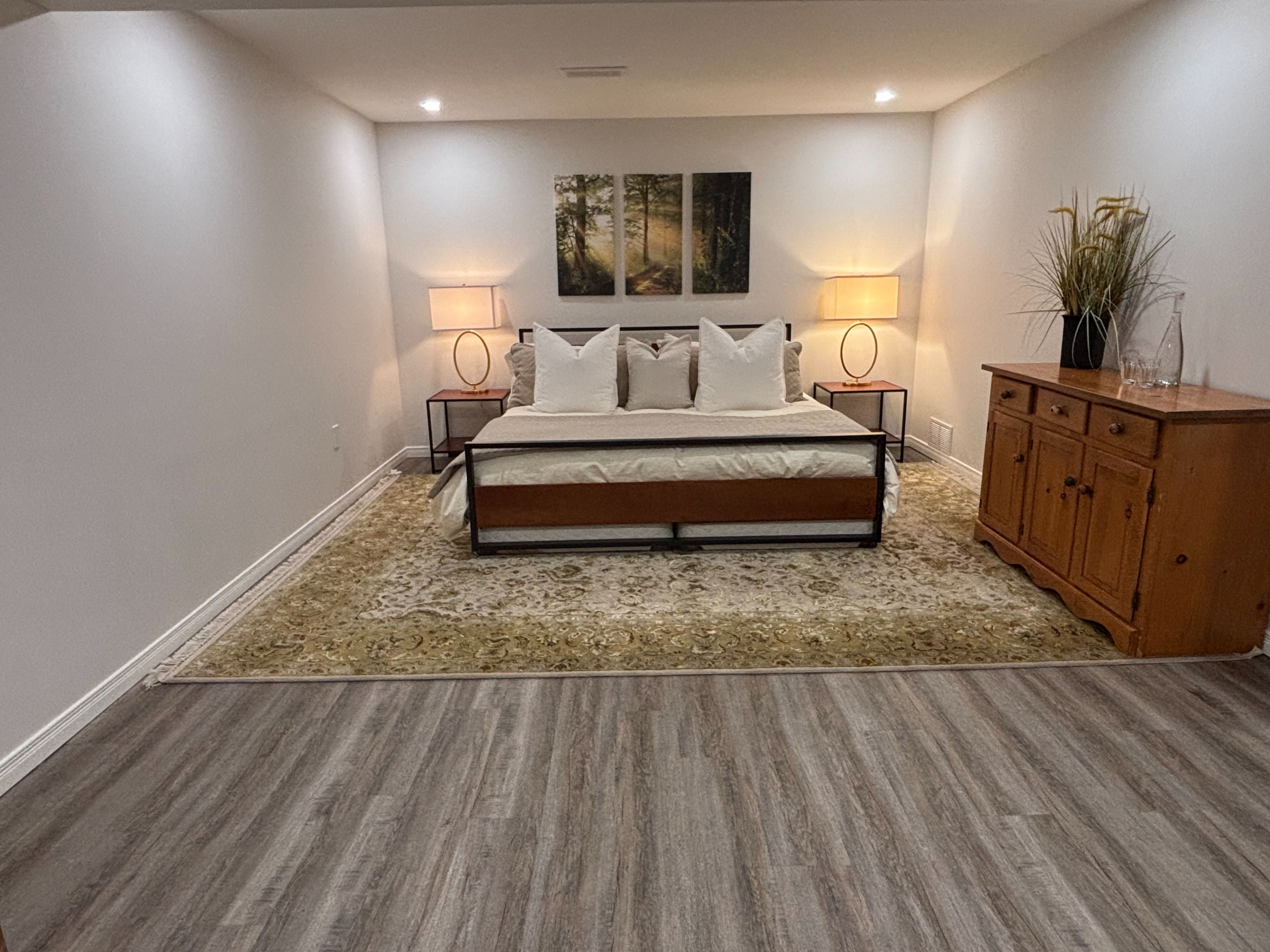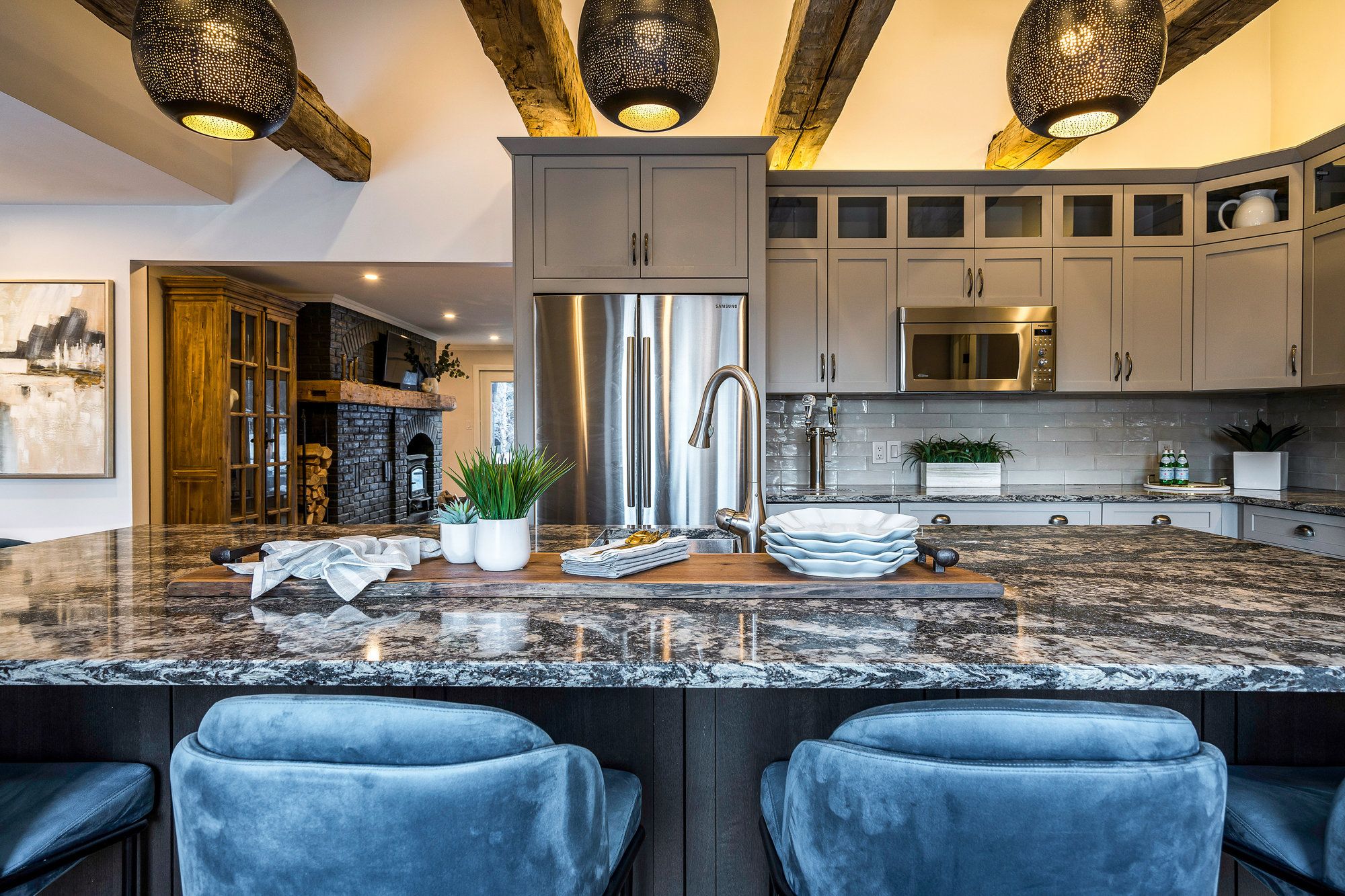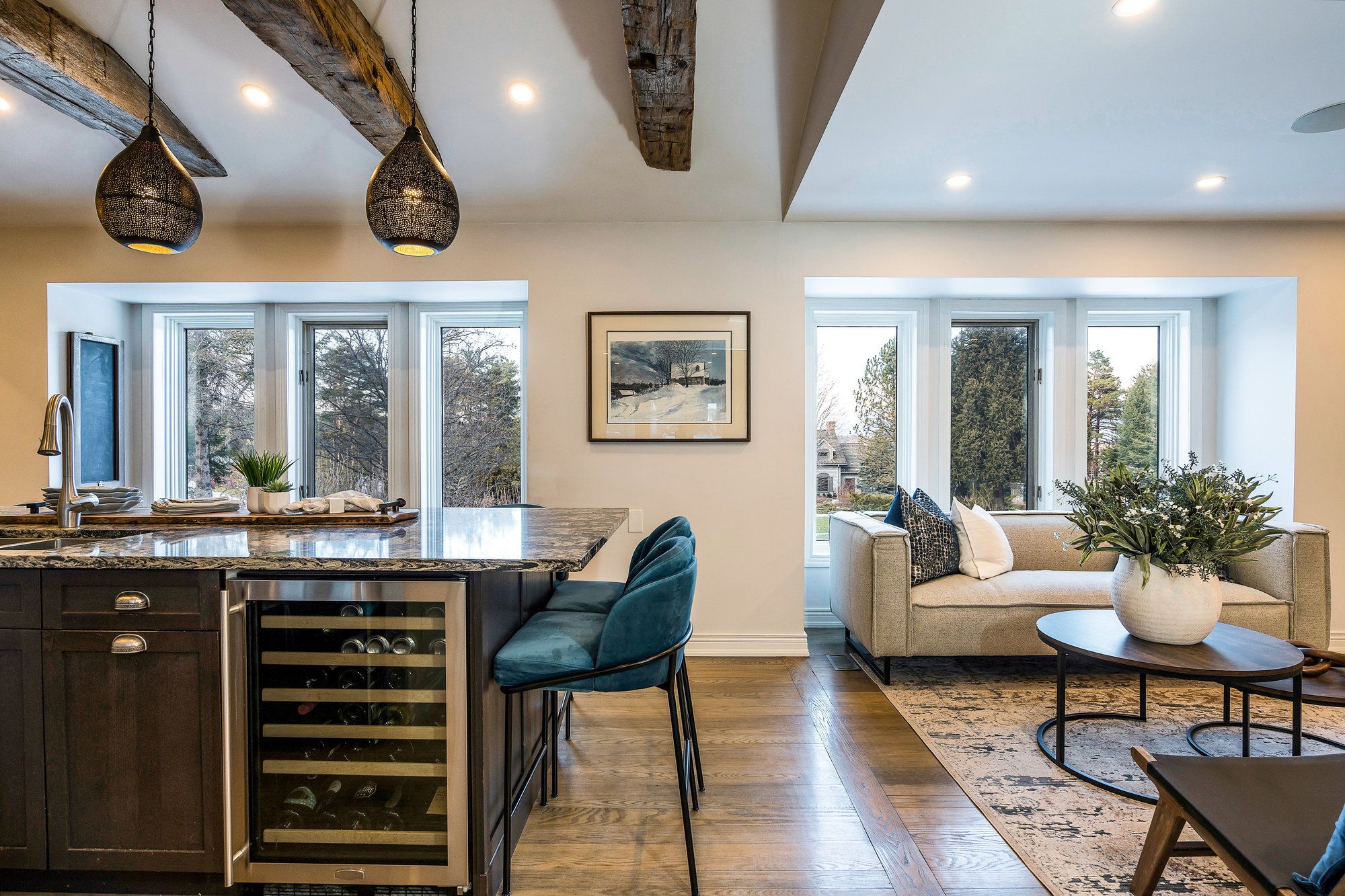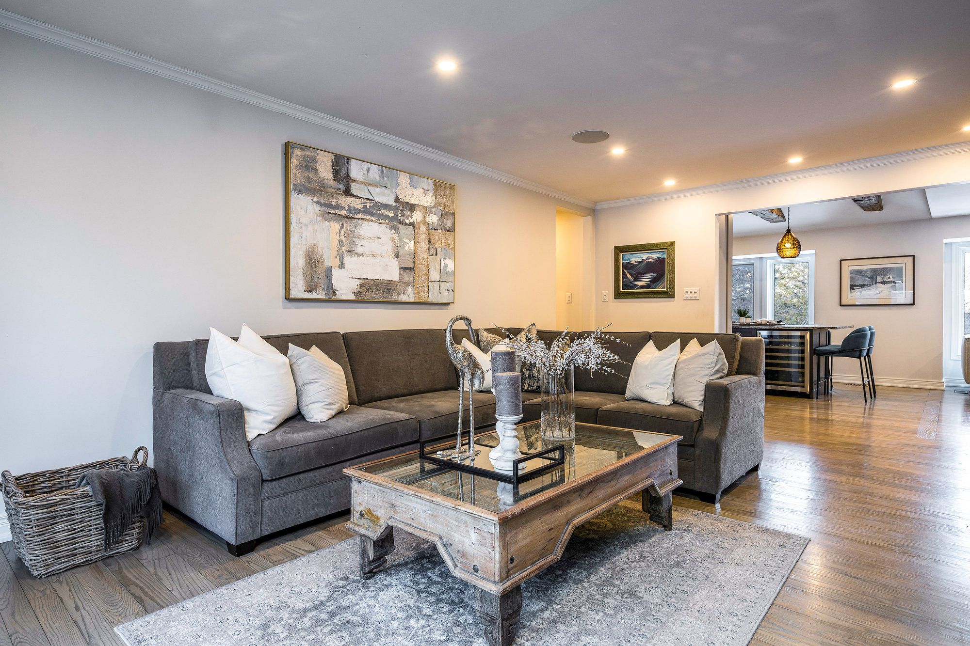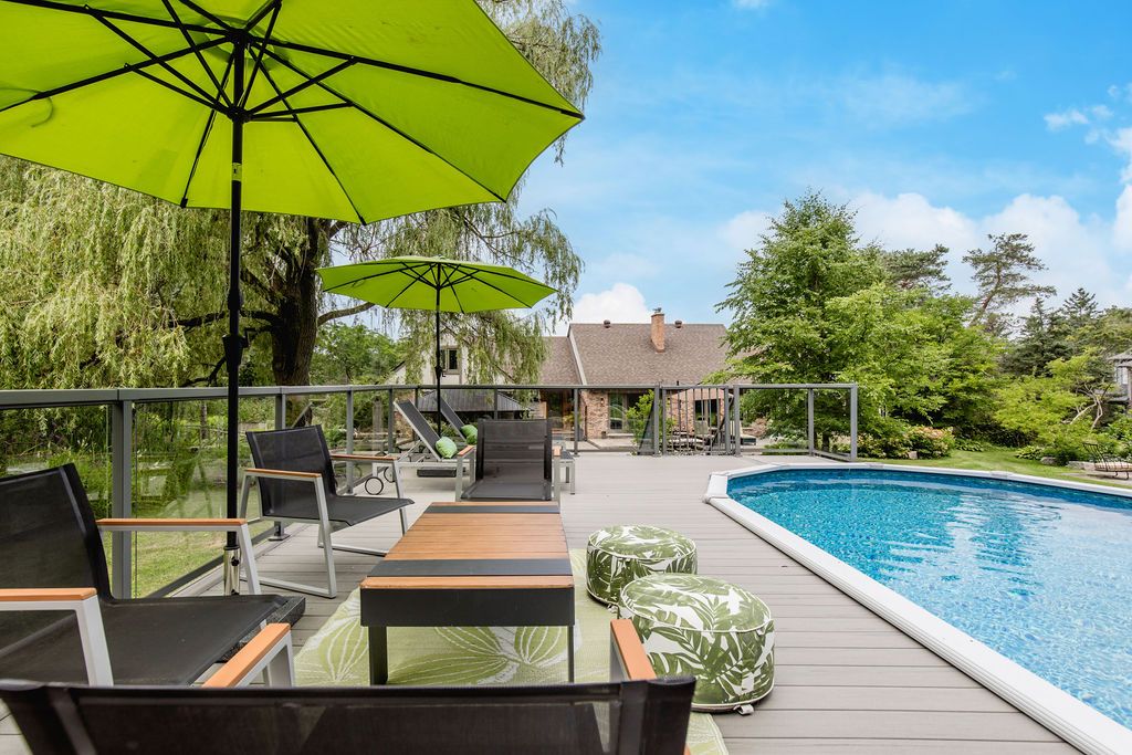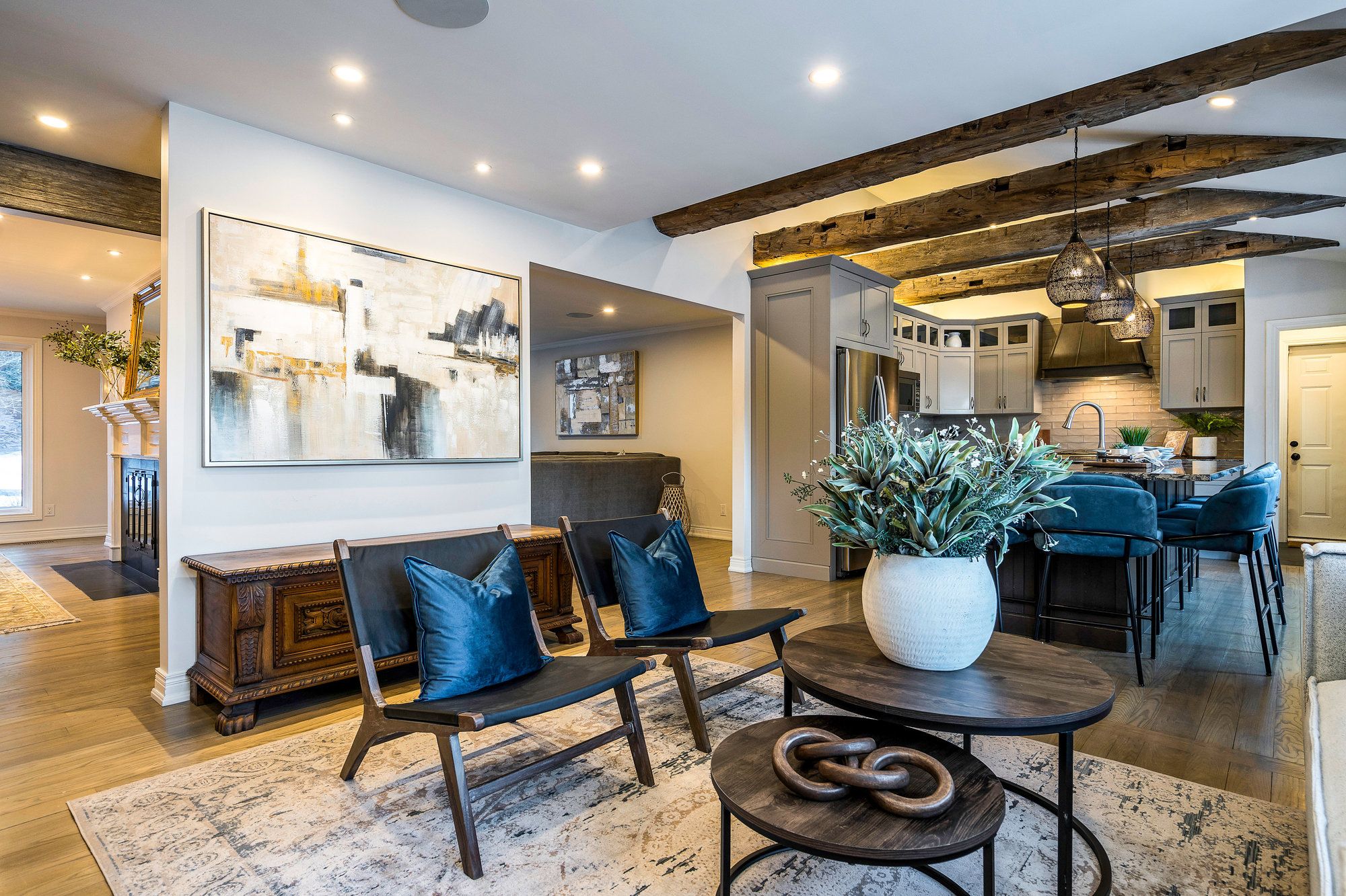 Discover your own private retreat in this 4,297 sqft resort-style home set on 1. 84 acres of beautifully landscaped grounds. With a 3-car garage, 12 perennial gardens, irrigation, custom lighting, inviting gathering areas + a private forest with direct trail access, this property is designed for luxury living. The expansive stone patio is an entertainers dream, featuring a gazebo, water feature, outdoor bbq kitchen, stone slab bar with barn beam accents, shadefx sunbrella retractable canopy & a stunning barn board wall. Relax by the propane fire bowl, in the heated salt-water pool with composite decking, or under the outdoor cedar shower. Inside, refinished hardwood floors, crown molding & exposed barn beams create a warm, timeless feel. A built-in sonos sound system with 10 zones & 88 pot lights set the perfect mood. The chefs kitchen boasts a 4. 5' x 10. 1' cambria stone island, creemore beer taps, bar fridge & stainless steel appliances. The formal dining & family rooms each offer wood-burning fireplaces & patio walkouts, ideal for gatherings. The main floor features 3 unique bedrooms, including a spa-style bath with a walk-in glass shower, floating tub, double vanities & a custom feature wall. The master suite includes a walk-in closet, private patio, ensuite with walk-in shower & double sinks, plus direct access to a 4-season solarium for peaceful relaxation. The main floor laundry/mudroom offers patio access, a powder room & a deluxe 6-person sauna. A custom staircase leads to a loft with 2 bright bedrooms, large windows & ductless hvac. The finished lower level adds a spacious rec room, 3-piece bath, storage & room for a gym or bedroom. Every element has been thoughtfully curated, making this home a true luxury escape built for both relaxation & entertaining.
