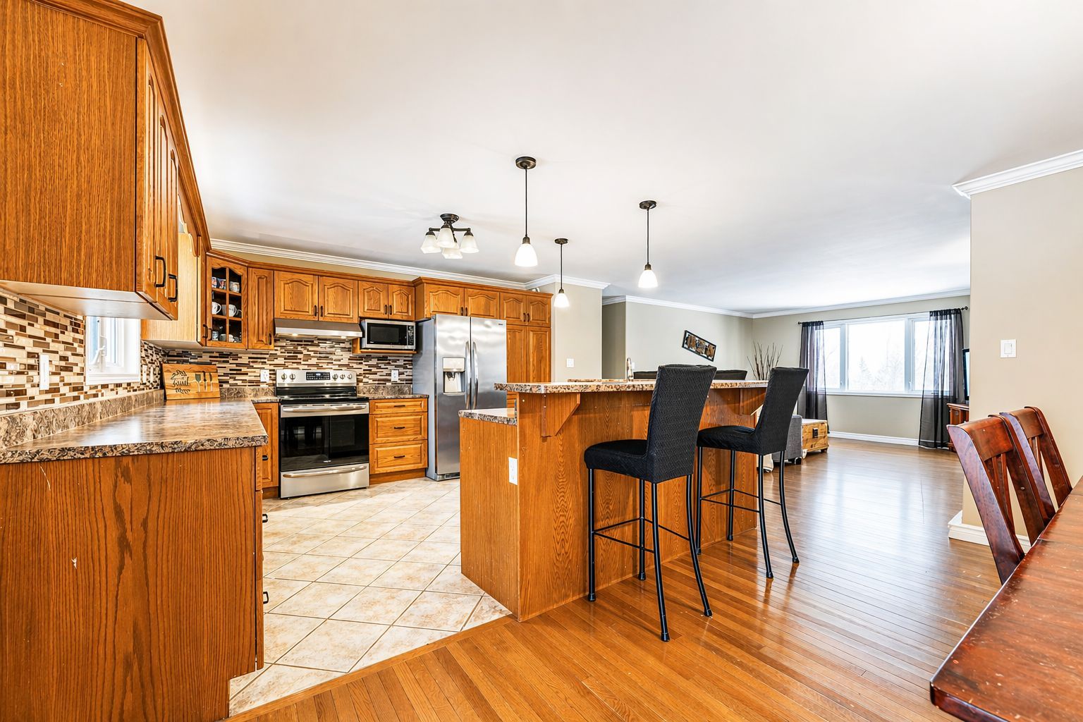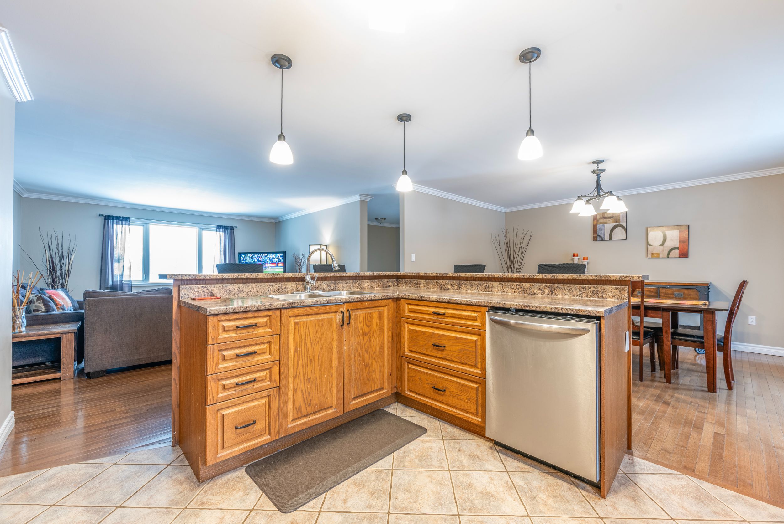 • Spacious open layout with a large kitchen and inviting dining area.