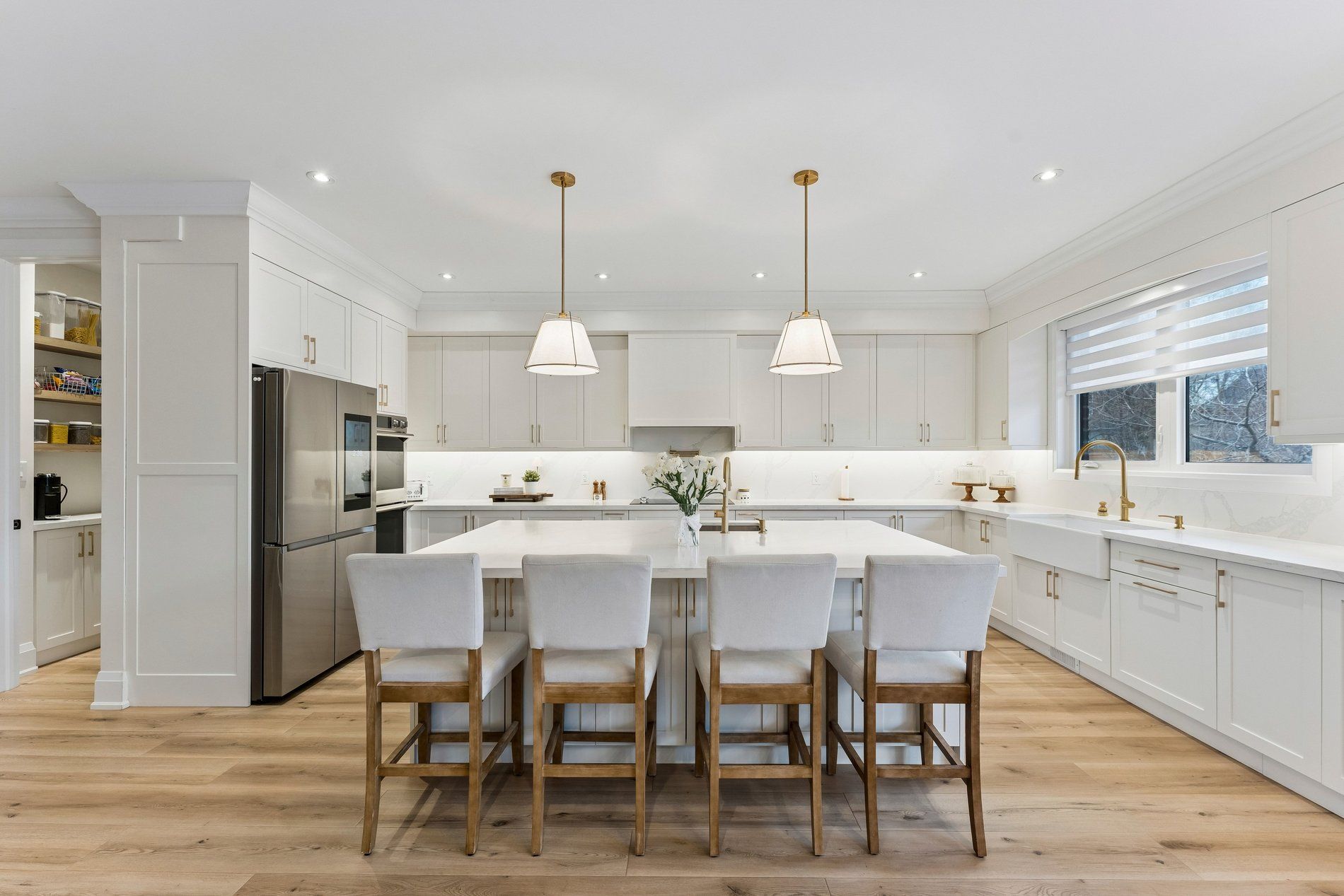• Chef's kitchen equipped with smart appliances and a built-in coffee system.
