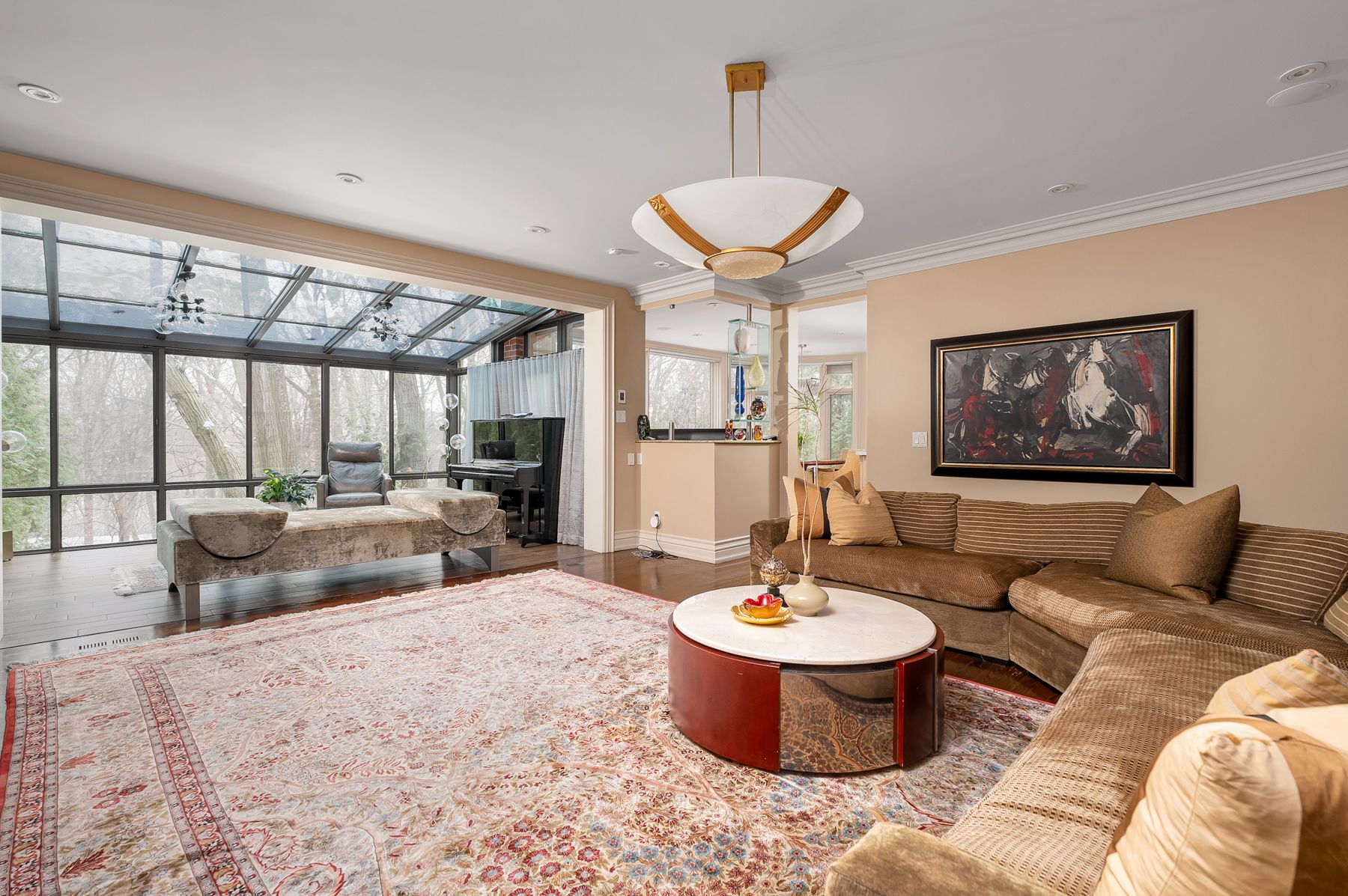 This expansive, four +2, bedroom home, sits on a rare and immense 61' x 252. 5' ravine lot, minutes from the city's finest amenities. This forest hill home features interiors curated by eric mclelland of fleurs d'lis design. Defined by soaring 10-foot ceilings, the home showcases unique, high-end finishes, including venetian glass panels, mother of pearl accents & silk upholstered walls to name a few. The expansive layout includes a versatile finished attic space and a spectacular finished basement with a nanny live-in unit, multiple walkouts to the ravine and expansive patio area with water feature, a large glassed in sunroom with in-floor heating, as well as an indoor gym, sauna & hot tub. Plus, a significant three level back extension maximizes this home's living space & is complemented by a 2021-installed elevator that services all levels but the attic/third level for ultimate convenience. 7 ridgewood road is an architectural statement in a highly sought-after toronto location.