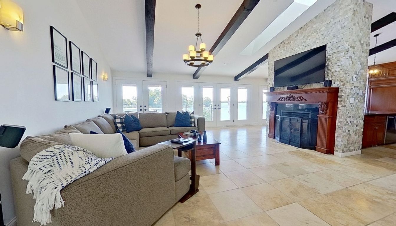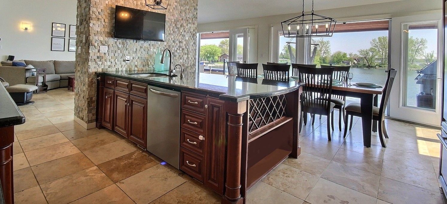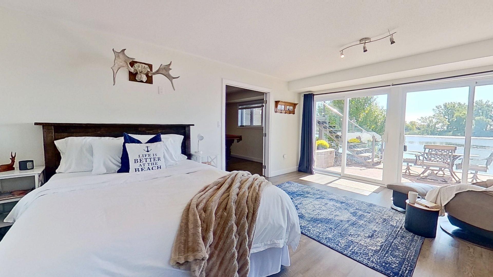 Welcome to your lakeside escape with this stunning southern exposure waterfront home that sits at the end of a quiet cul-de-sac in the town of brighton, on a protective cove of presquille bay with an incredible 175 ft of waterfront. This property is a rare opportunity of both sheltered waters for docking and kayaking, complete with a seadoo/kayak lift, as well as the open-water adventures awaiting nearby on lake ontario. With the benefit of brightons charming downtown a mere 5 minutes away and full municipal services, this waterfront location is rare. Wall to wall french doors along the entire length of the home provides natural light and sweeping breathtaking views of presquille bay. The home features vaulted beamed ceilings, a main floor open-concept layout, a 50 ft covered deck complete with hot tub, a gourmet kitchen that boasts granite counters, a 9-ft island, gas cooktop, heated floors and sub-zero fridge. Centered between the dining space and great room and kitchen is a magnificent floor -to-ceiling stone fireplace. The luxe primary suite offers a fireplace, walk-in closet with laundry, and walkout to the hot tub. A study or 2nd bedroom is located off the front foyer. The bright finished walkout basement offers excellent potential for an in-law suite or separate apartment, with its large windows also overlooking the bay. The lower level has a 4 pc bath, rec room, two bedrooms, and a hobby room/gym with plumbing and patio doors to a second outdoor bricked patio area. The property offers plenty of storage options with an attic above the garage and an expansive enclosed shed under the main deck. The driveway accommodates up to 6 vehicles plus an rv/boat pad. No worries about power outages as there is a hard wired natural gas generator.