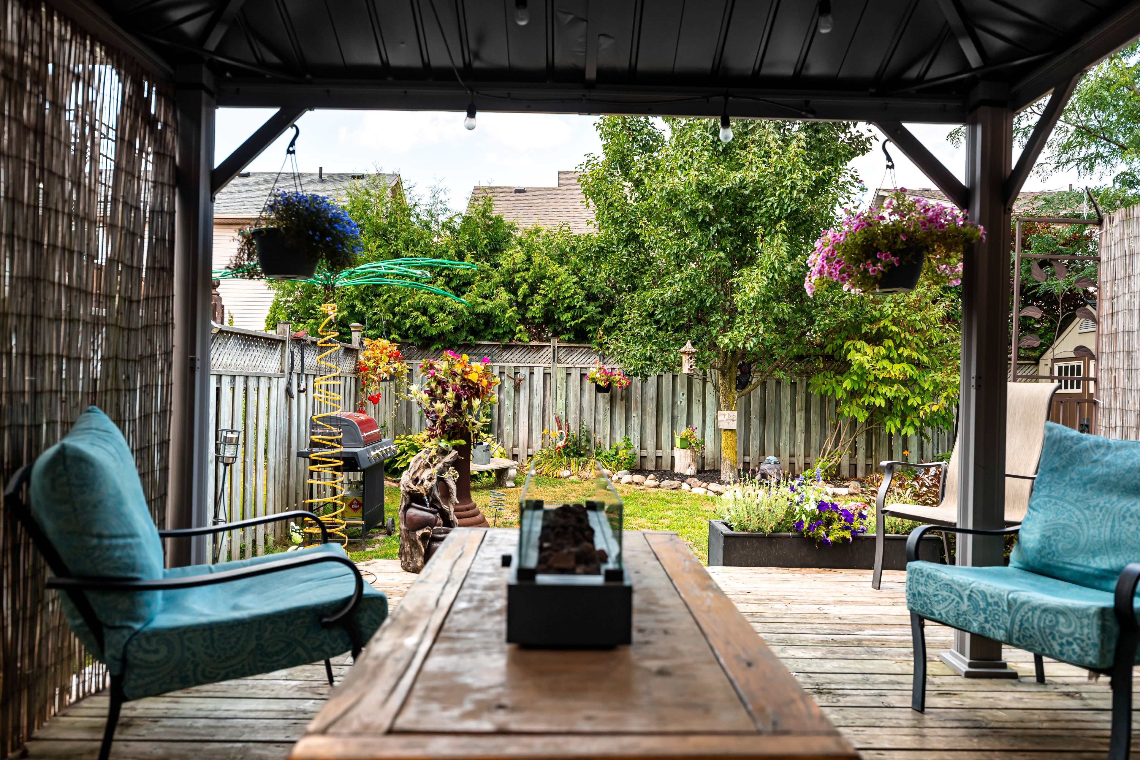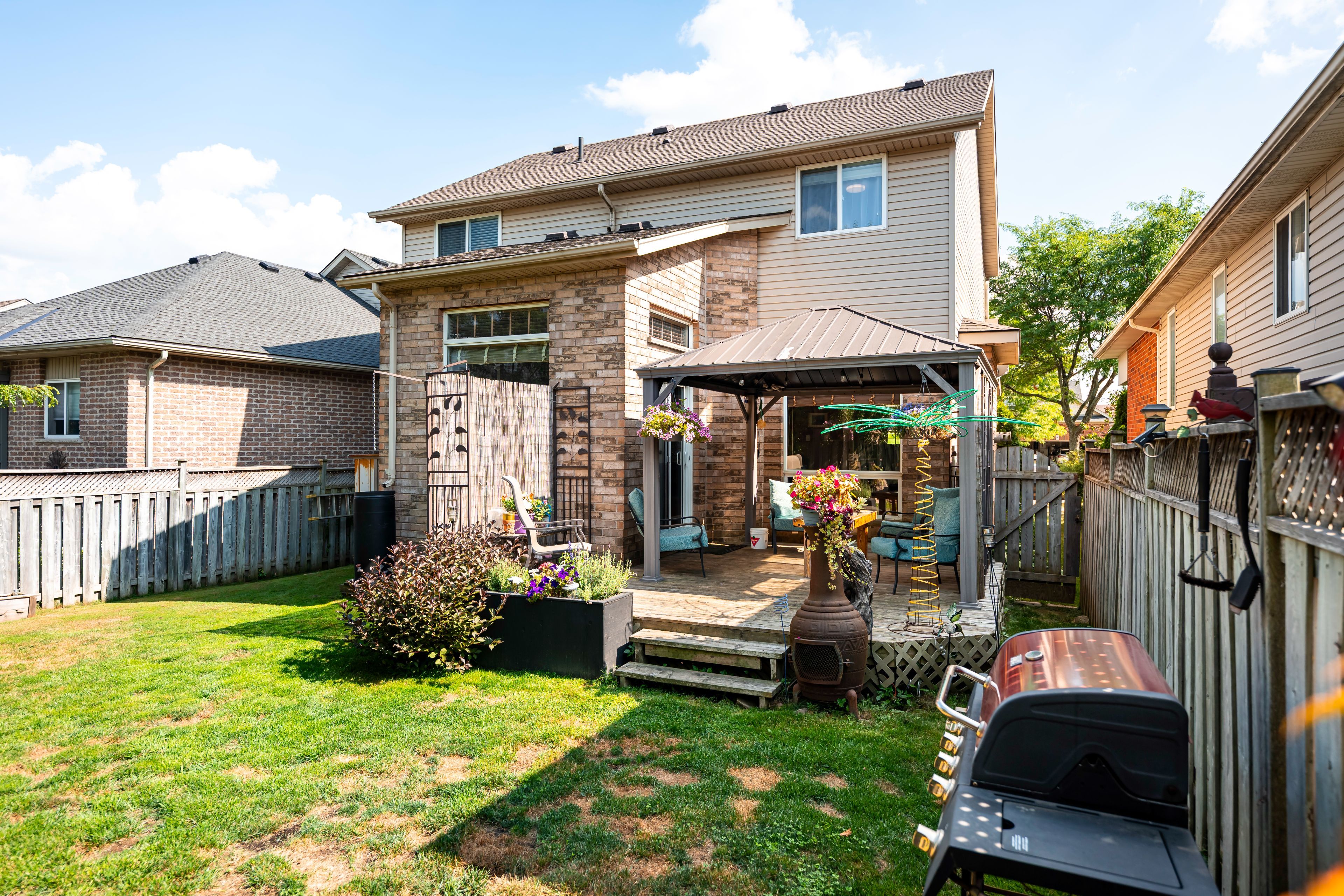 • Private backyard with a hardtop gazebo, perfect for summer gatherings.