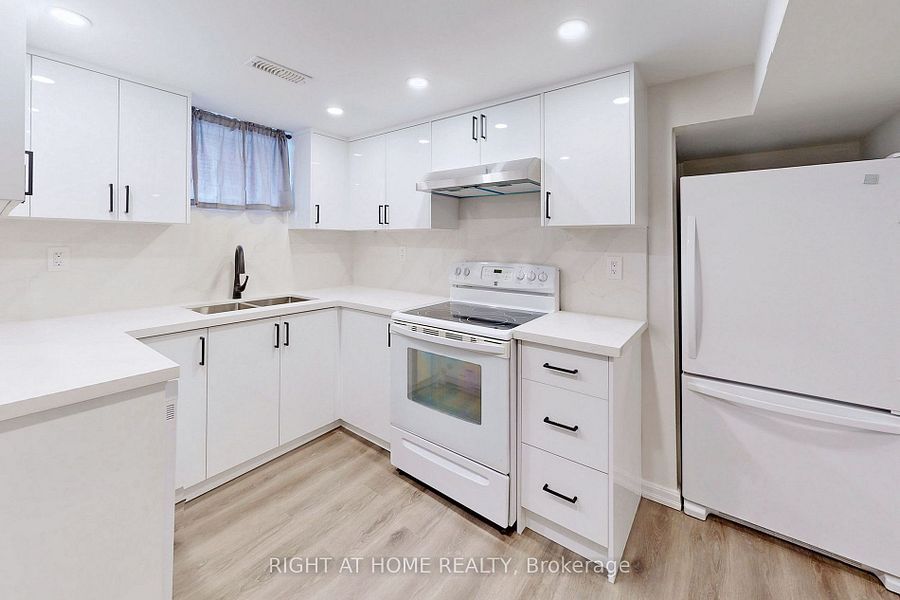 Welcome to this beautiful two bedroom and two washroom bsmt level unit, located in a quiet family friendly wexford-maryvale community! Open concept kitchen connected with living and dining room; hardwood floor and pot lights throughout; spacious rooms and all with windows; rarely find two washrooms and both with shower. Ensuite washroom for master bedroom; shared access to the backyard & driveway. Close to schools, groceries, restaurants, public transit, highway 401, d. V. P. & much more!