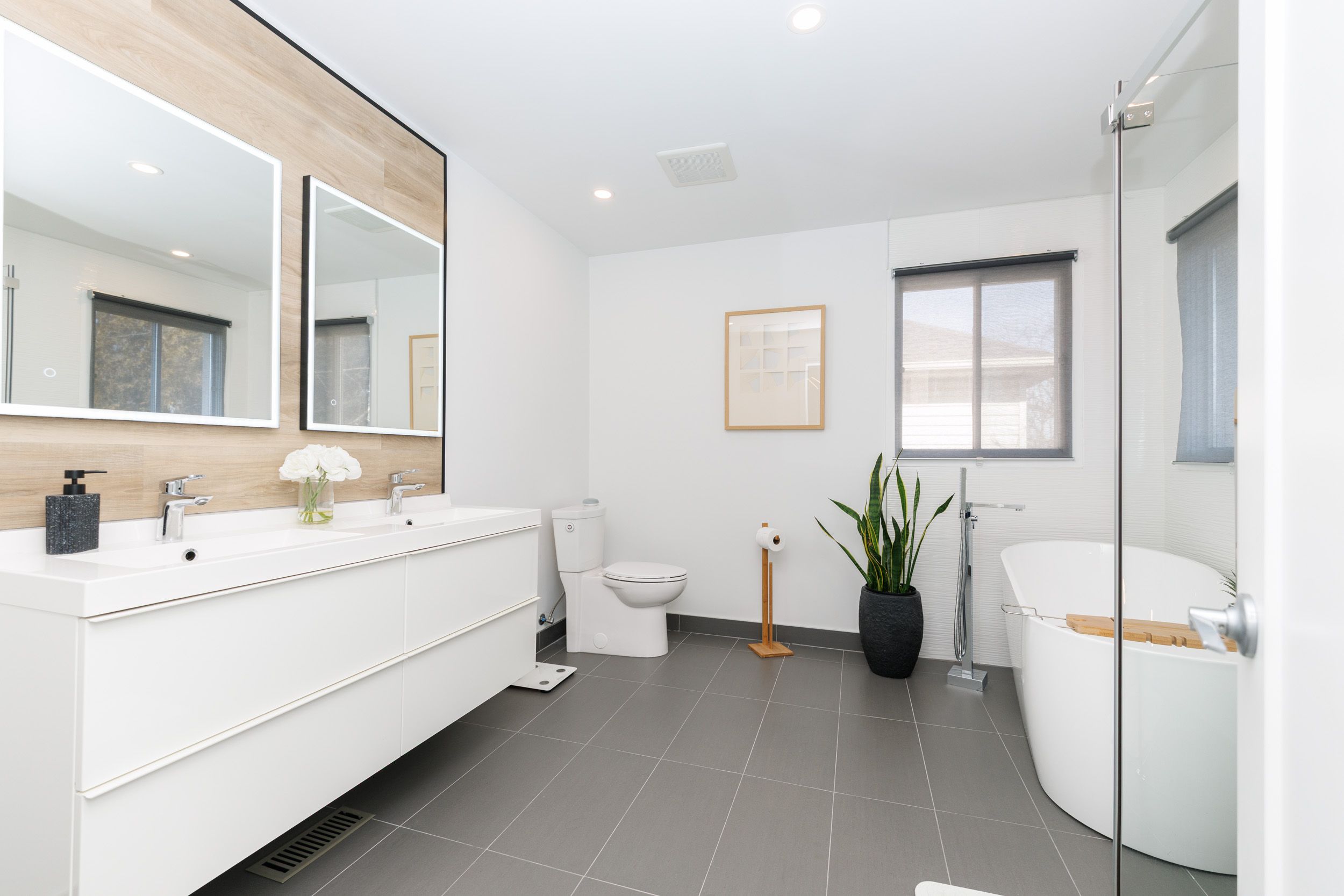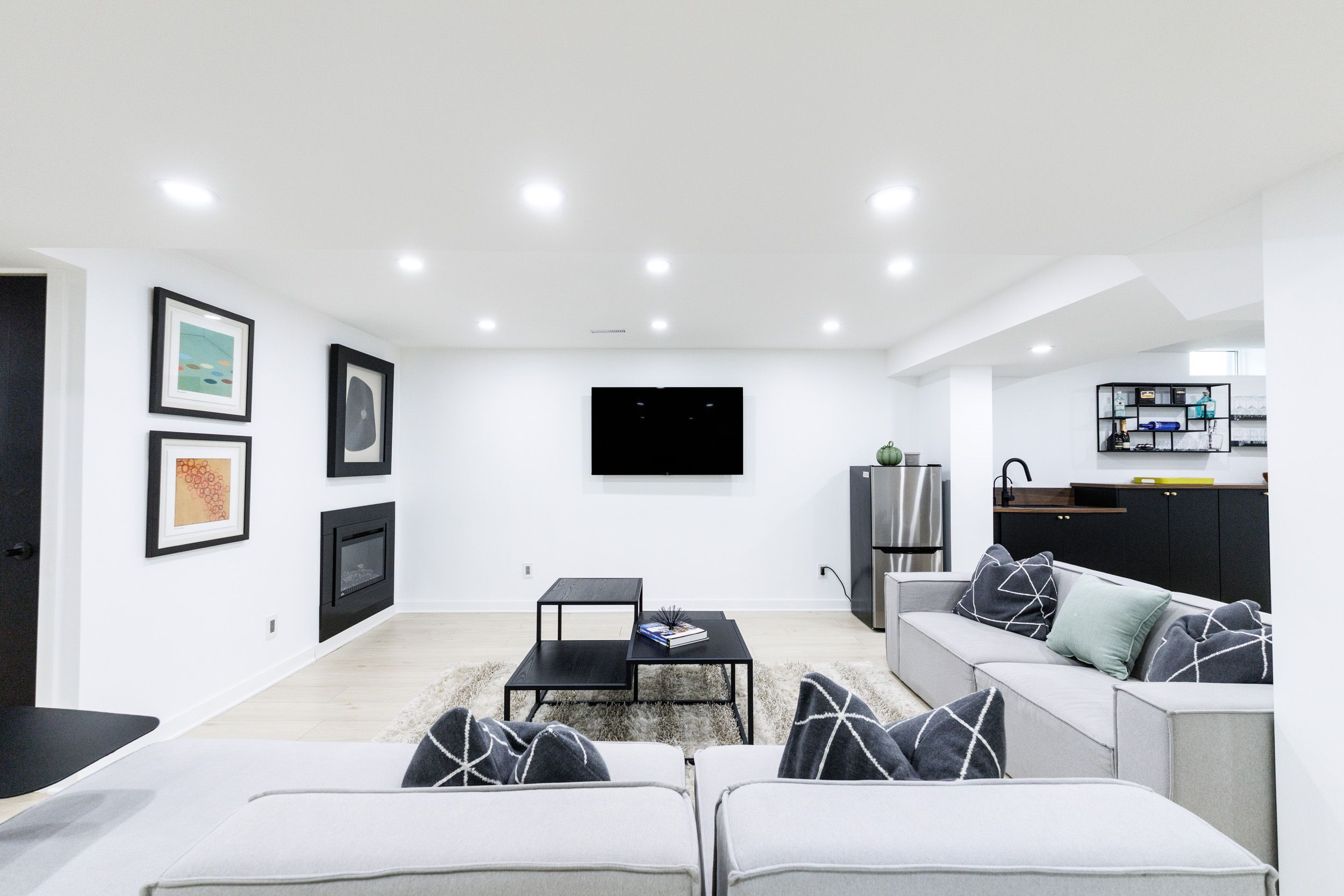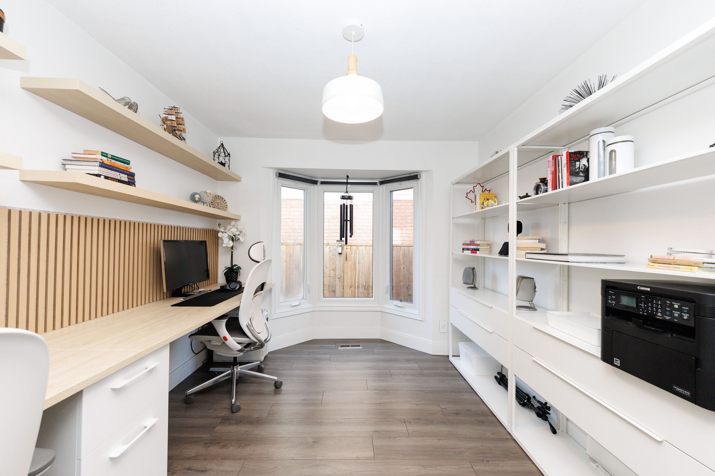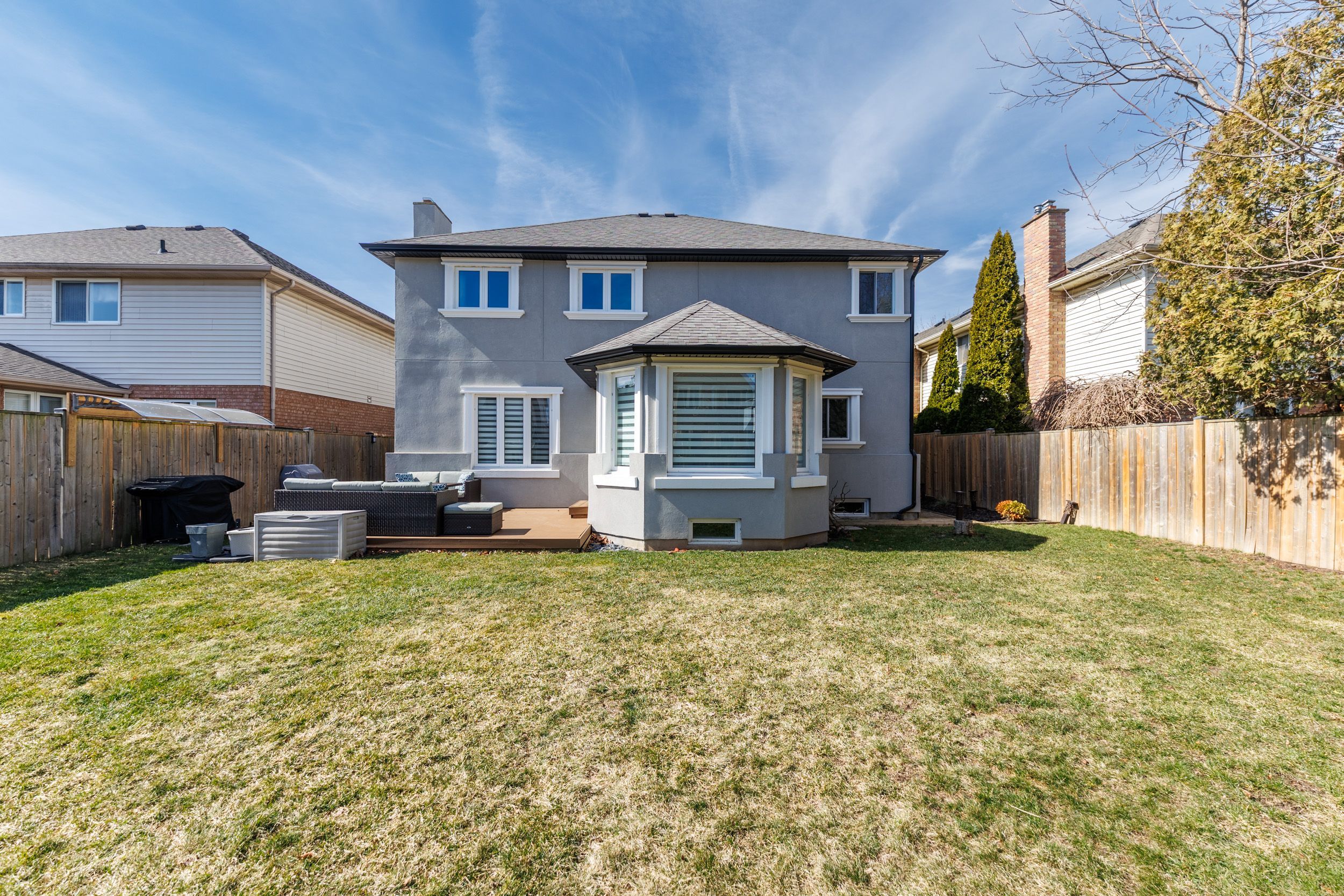 Experience refined living in this exquisitely redesigned home in the prestigious grapeview neighbourhood, completely renovated from top to bottom with sophisticated modern finishes and exceptional attention to detail. Offering 3,379 sq ft above ground plus approximately 1,500 sq ft of beautifully finished basement space, this home provides exceptional room for comfortable living and entertaining. From the moment you enter, the dramatic 16. 9-ft vaulted ceiling, designer accent walls, and elegant living and dining areas with custom built-in shelving create an immediate impression. The contemporary kitchen features sleek finishes, a stylish island, and a built-in drinking water filtration system, flowing into the inviting family room with a striking linear fireplace. The bright dining area overlooks the backyard with patio doors leading to the bbq and outdoor seating area. The main floor includes a private office and a mudroom with custom built-in shelving connected to the garage. Upstairs offers four spacious bedrooms, including a luxurious primary suite with his-and-hers closets and a spa-inspired 5-piece ensuite. The finished basement provides exceptional additional living space with a recreation area, gym, games area, and a private home theatre with built-in speakers, with basement lighting controlled by cellphone. Additional highlights include pot lights throughout, stucco exterior, interlock driveway and walkway, outdoor pot lights, newer roof, new eavestroughs, fascia, downspouts, and new garage doors. Ideally located close to excellent schools, ridley college, the hospital, shopping, and highway access. A truly exceptional home that must be experienced in person.