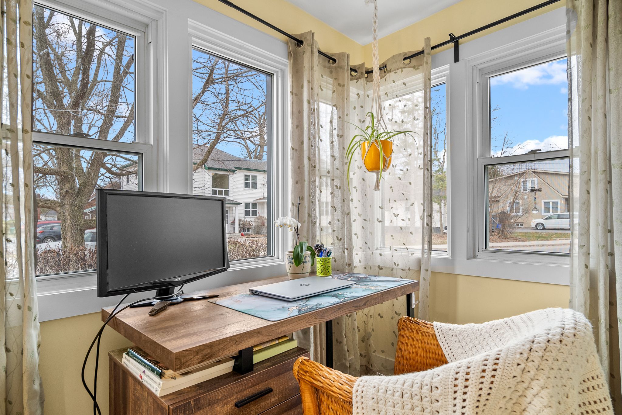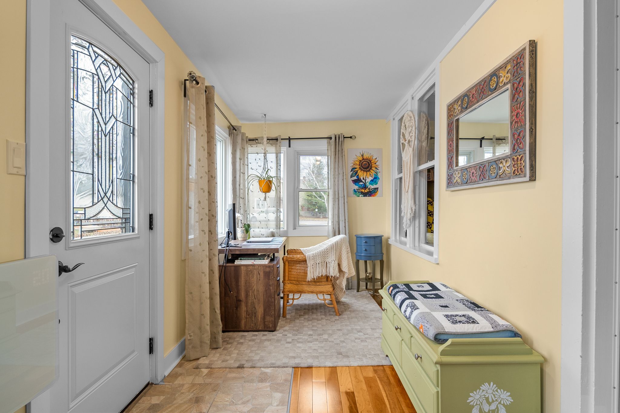 • Bright sunroom perfect for relaxing or home office use.