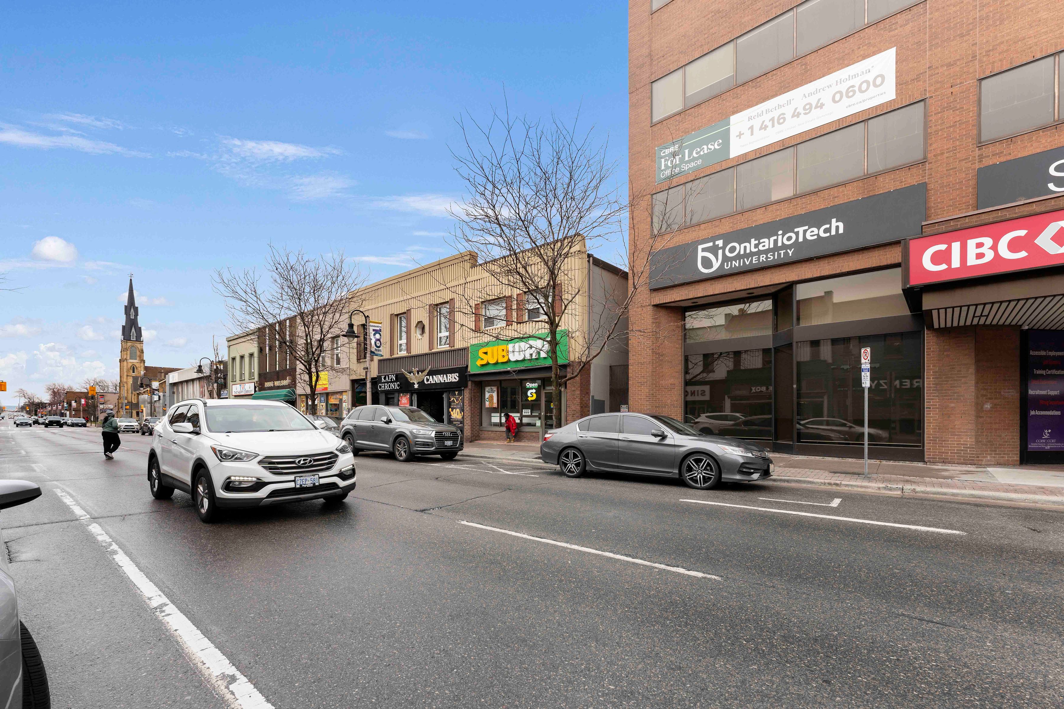 Be your own boss, commercial zoning permits many uses, currently set up as a fully functional dine-in restaurant with 30 seats capacity. Excellent exposure, great downtown location on busy high traffic simcoe st. Close to businesses, offices, tribute center, college campus and new developments. Bring your skills and creativity to enhance your business in newly decorated place in downtown oshawa. All new leasehold improvements done in 2022/2024: new 8' exhaust hood & fan, fire suppression system, fryer, walk-in-cooler, chest freezer, prep tables, three compartment sink with grease trap, basement fire-proofed. 2 new washrooms-one accessible. New furnace & hwt and much more.