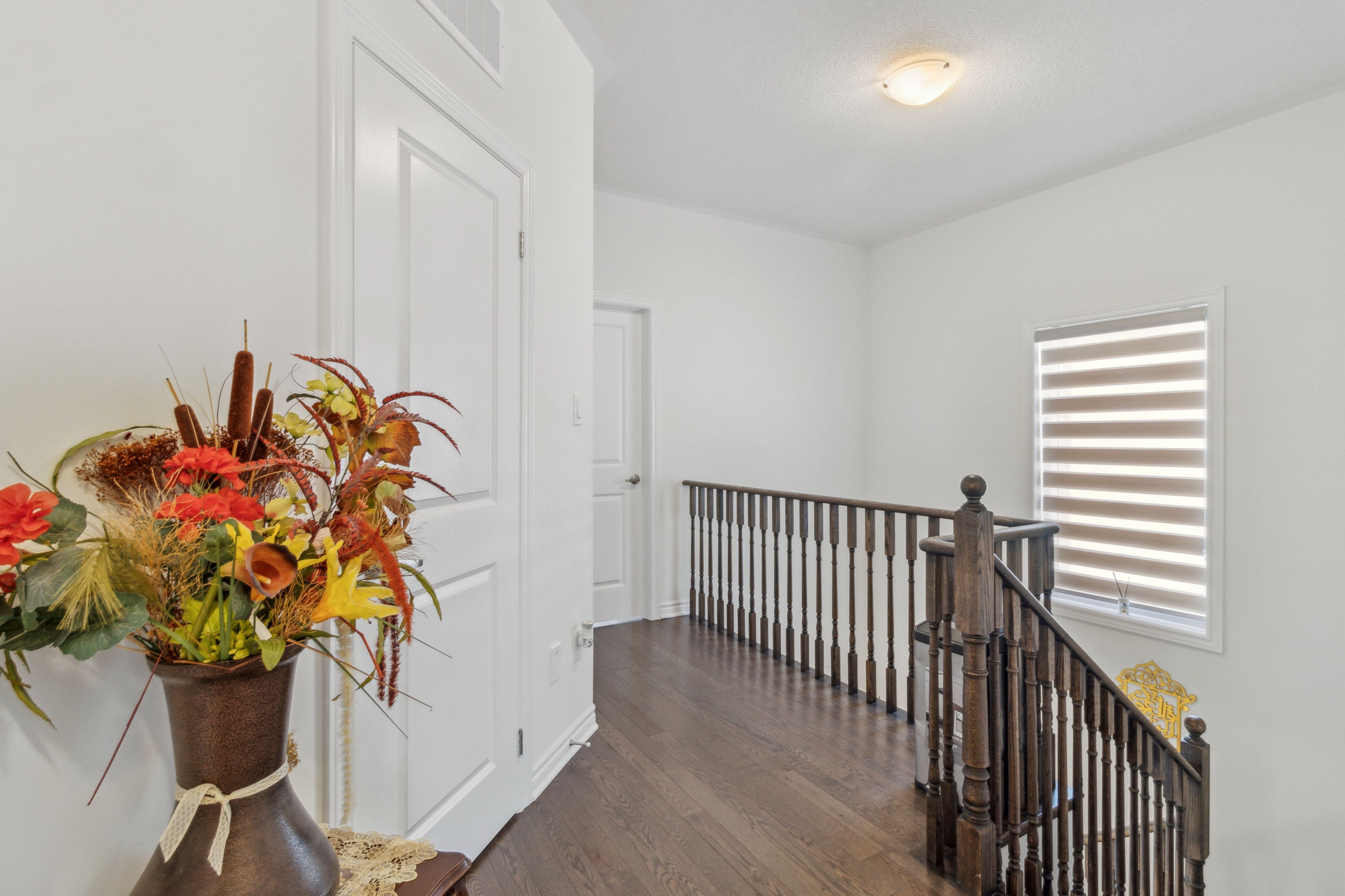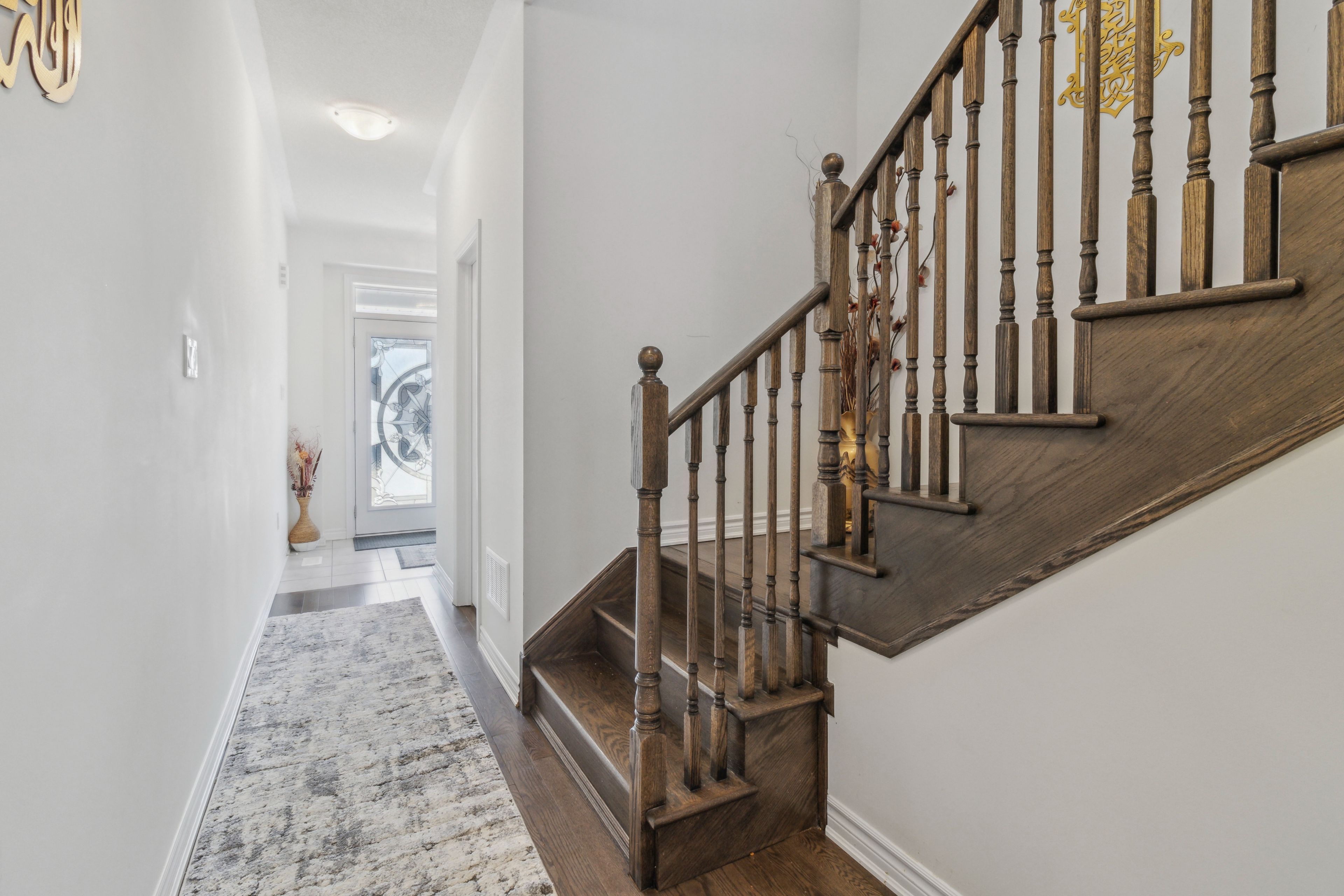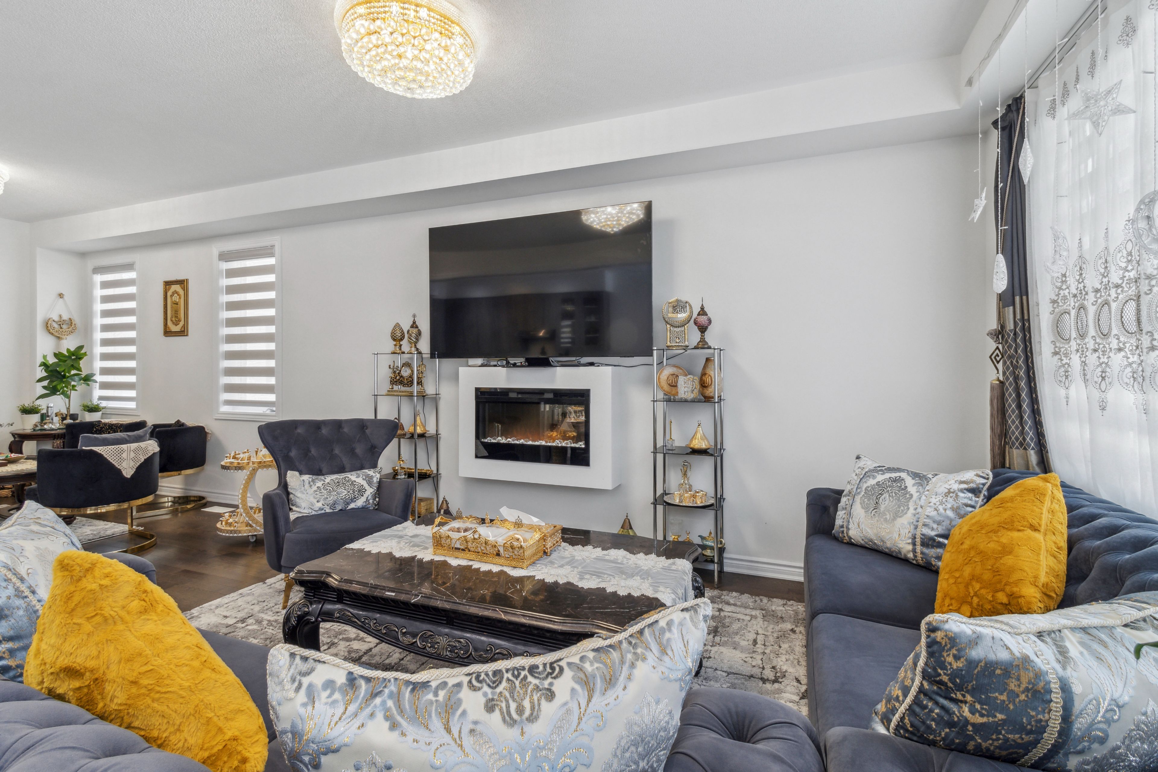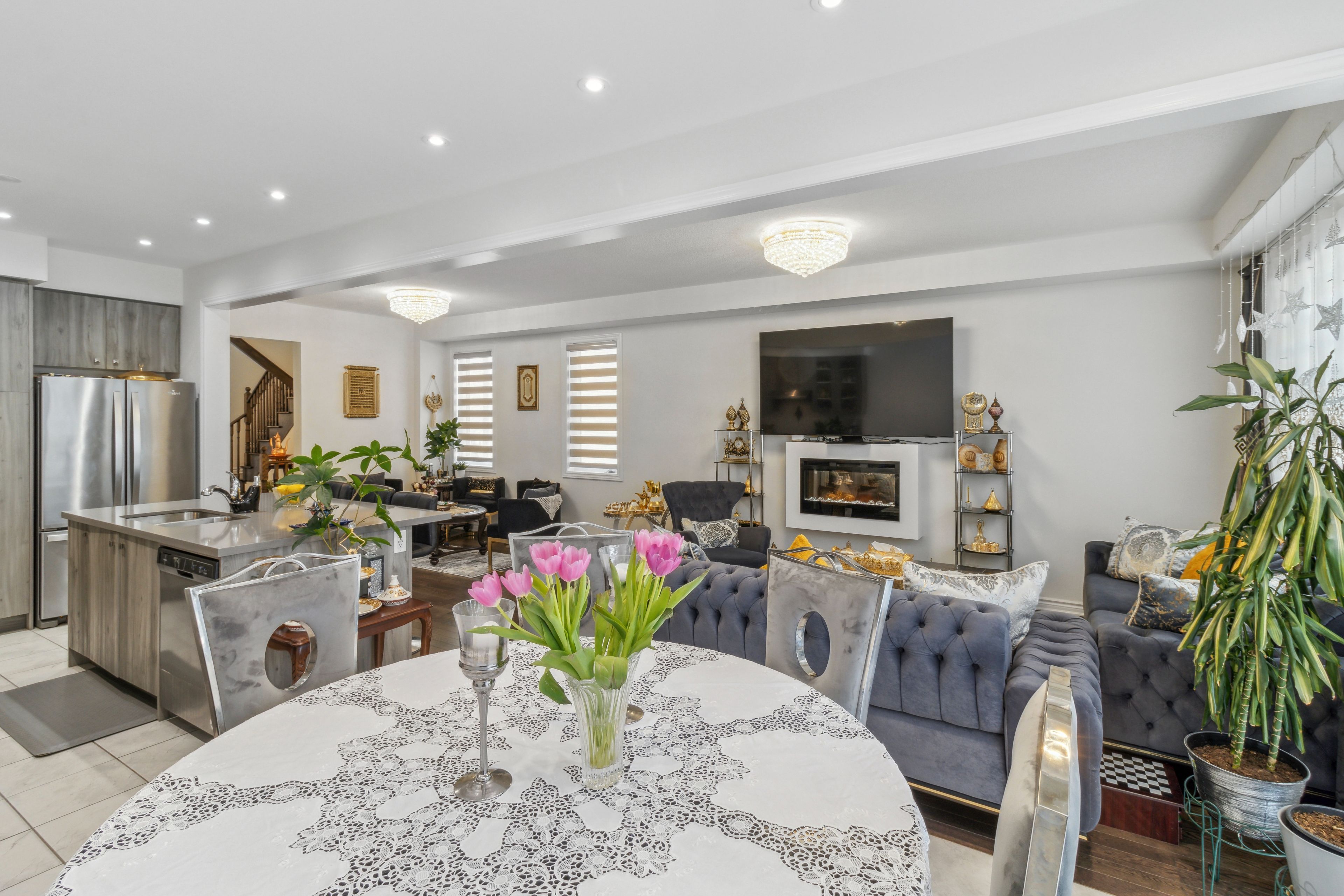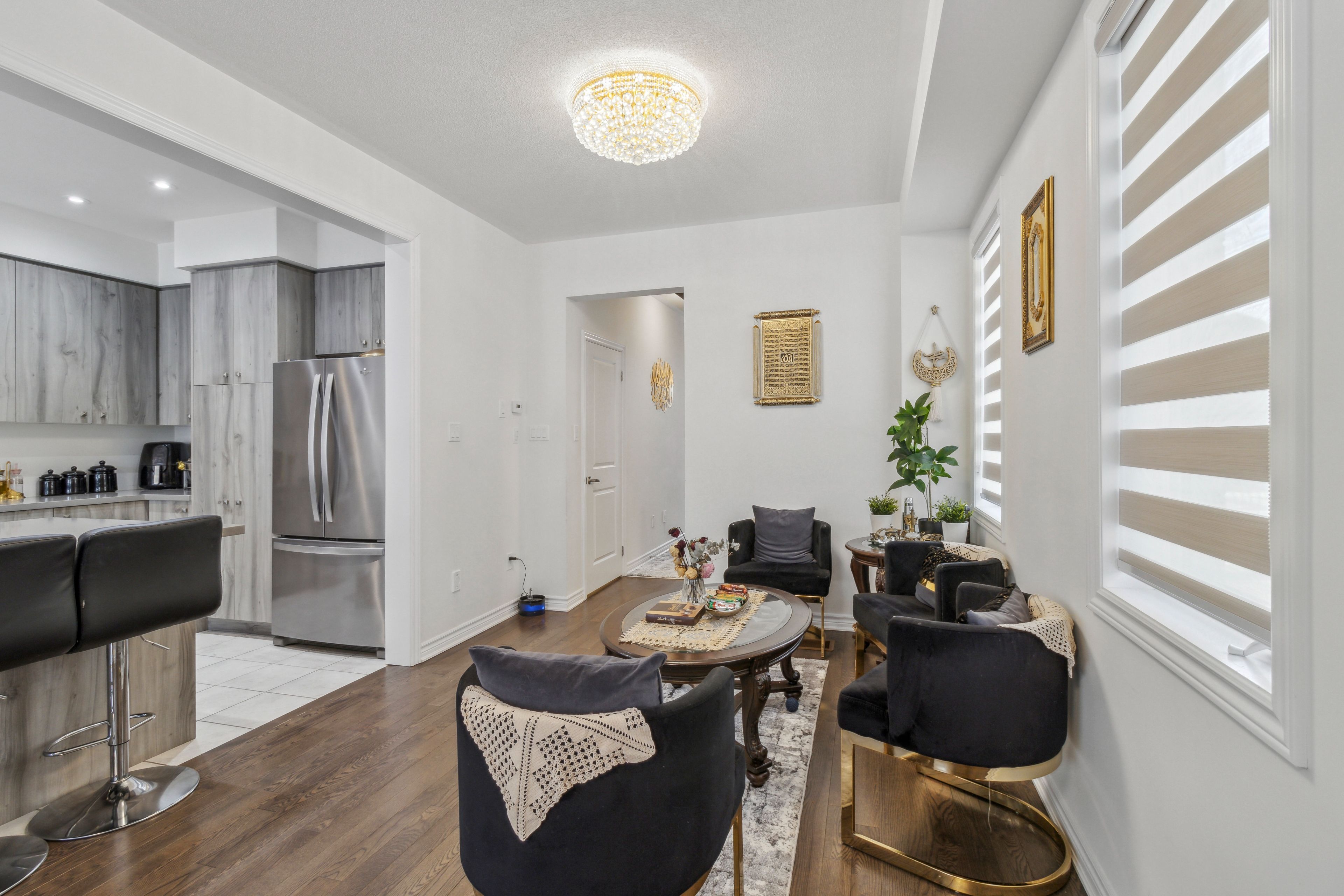 Welcome to 7 spinland st, a stunning 4-bedroom, 3-bathroom semi-detached home in the sought-after caledon trails community. With over 2,000 sq. Ft. Of upgraded living space, this home seamlessly blends modern elegance with everyday comfort. A breathtaking glass entry door sets the tone for the stylish interior, where an open-concept layout is enhanced by 9-foot ceilings on both floors and large windows, creating a bright and airy atmosphere. The main floor features hardwood flooring throughout, while the chef's kitchen impresses with quartz countertops, custom cabinetry, smart stainless steel appliances, and a deep double sink-perfect for both daily living and entertaining. The great room offers a cozy fireplace, adding warmth and charm. Upstairs, the primary suite serves as a private retreat with a walk-in closet and a spa-like ensuite featuring a soaking tub, glass shower, and double vanity, while three additional bedrooms provide generous space for family or guests. Thoughtful upgrades include s a garage pre-wired for an electric car charger. Located in a growing neighborhood near a planned elementary school and park, this home is just minutes from highway 410, shopping, and everyday essentials. Don't miss this incredible opportunity to own a beautifully upgraded home in caledon trails!