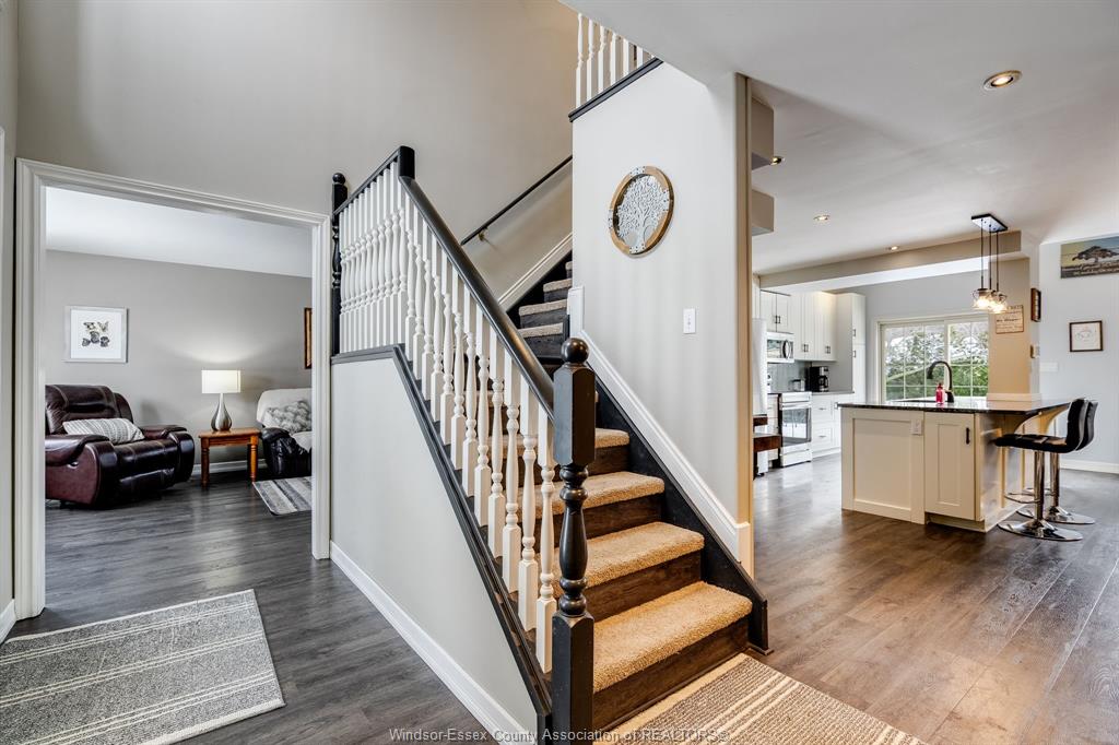 Welcome to this beautiful 2-storey home tucked away on a quiet, private cul-de-sac in a highly desirable central county location in cottam! Perfect for families, this home features 3 bedrooms upstairs, 2. 5 bathrooms, and a remodeled main floor kitchen opening up to the dining area, creating a bright and functional space ideal for everyday living and entertaining. The primary bedroom offers a private ensuite with heated flooring for added comfort. The basement includes an additional bedroom and a versatile rec room, perfect for a playroom, home gym, office, or extra living space. Step outside to enjoy a large backyard surrounded by mature trees offering excellent privacy, plus plenty of space for kids to play and a 10x10 storage shed. Enjoy the large concrete patio behind the garage, creating a convenient walking path from the front driveway to the steps of the pool deck, perfect for entertaining. Spend summers relaxing by the above-ground pool or hosting on the sundeck. Just down the street from ridgeview park and the splash pad!