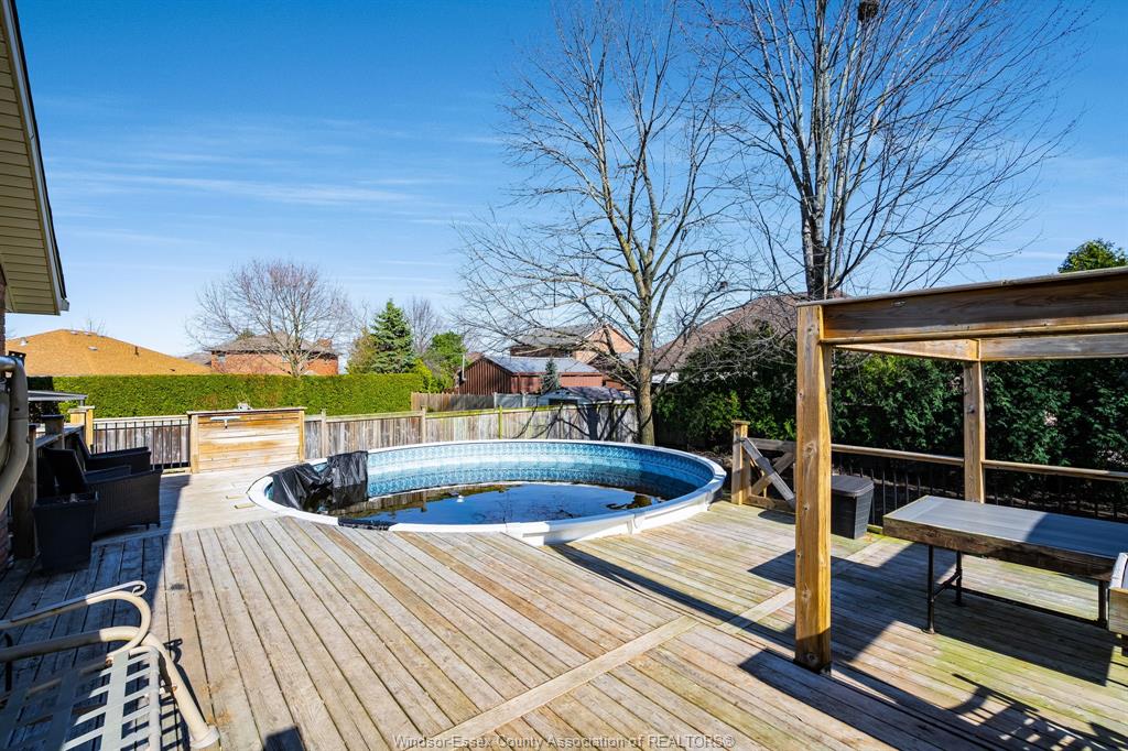 Welcome to this beautiful 2-storey home tucked away on a quiet, private cul-de-sac in a highly desirable central county location in cottam! Perfect for families, this home features 3 bedrooms upstairs, 2. 5 bathrooms, and a remodeled main floor kitchen opening up to the dining area, creating a bright and functional space ideal for everyday living and entertaining. The primary bedroom offers a private ensuite with heated flooring for added comfort. The basement includes an additional bedroom and a versatile rec room, perfect for a playroom, home gym, office, or extra living space. Step outside to enjoy a large backyard surrounded by mature trees offering excellent privacy, plus plenty of space for kids to play and a 10x10 storage shed. Enjoy the large concrete patio behind the garage, creating a convenient walking path from the front driveway to the steps of the pool deck, perfect for entertaining. Spend summers relaxing by the above-ground pool or hosting on the sundeck. Just down the street from ridgeview park and the splash pad!