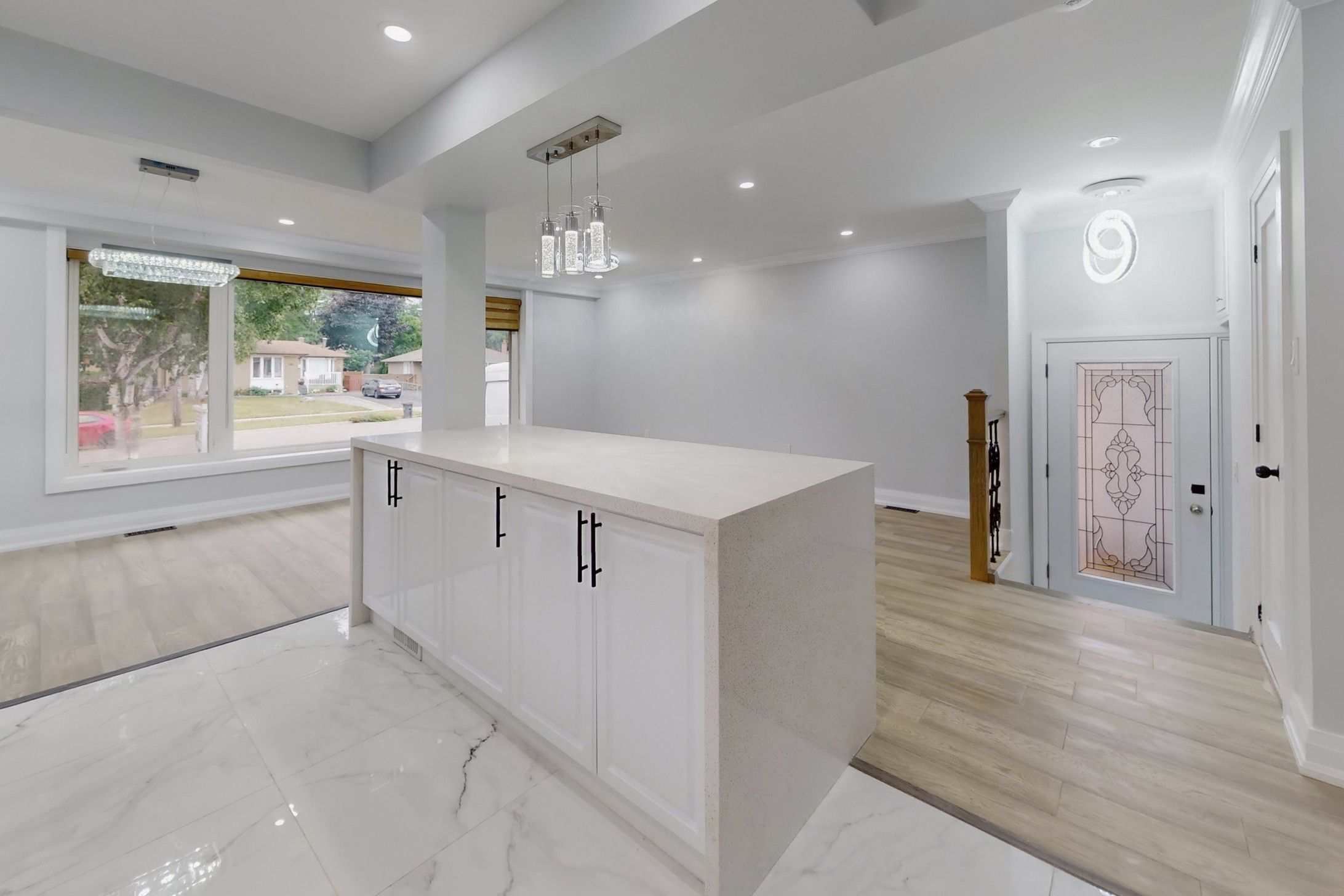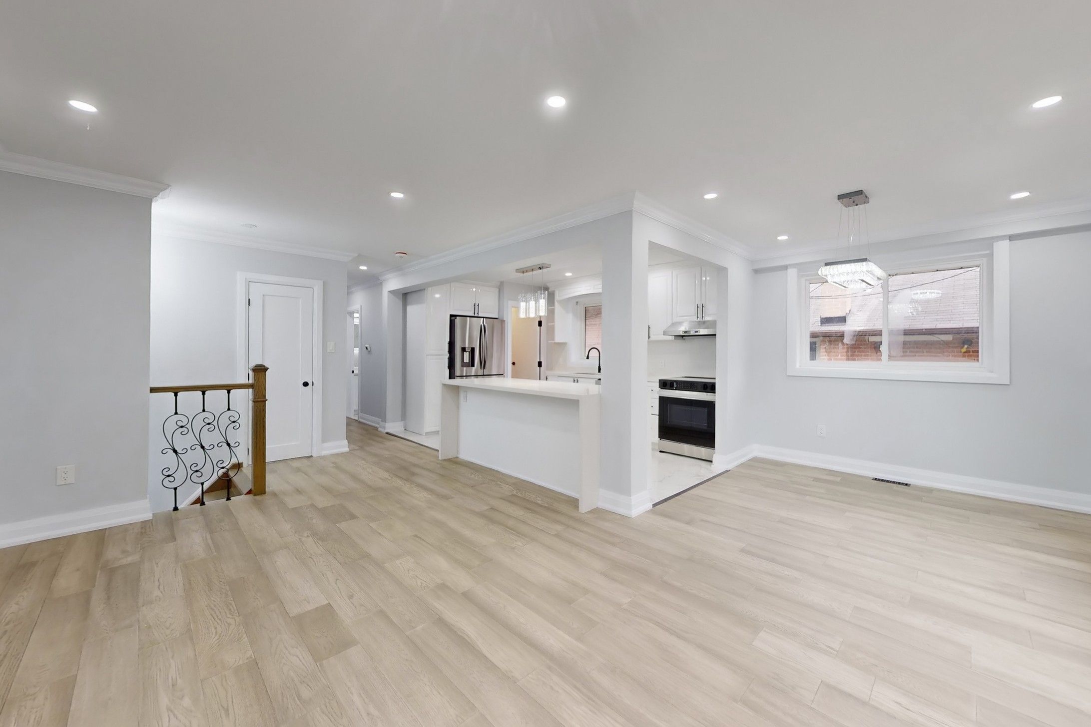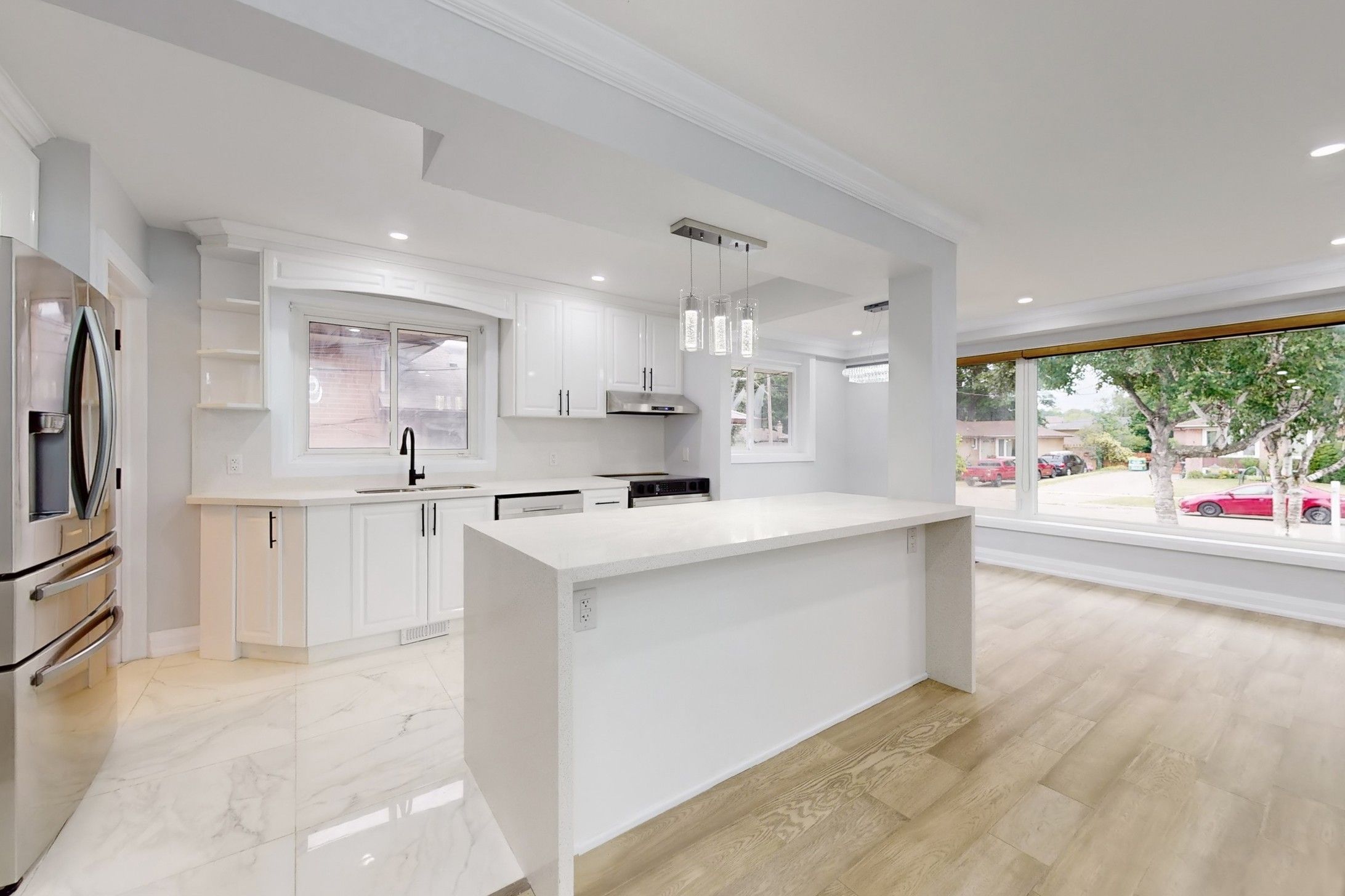 *totally renovated top to bottom*a rare opportunity to own a luxurious turn-key home with significant rental income potential! Presenting this meticulously renovated bungalow remodeled by luxury home builders. Modern elegance and exceptional functionality on a large lot with a long 5-car driveway plus a detached garage. The main floor welcomes you with an exquisite front door, leading into the breathtaking open-concept space. The living room showcases custom fluted wood paneling and built-in shelving with led lighting, seamlessly flowing into the modern kitchen equipped with a large waterfall island and s/s black frigidaire-gallery appliances, as well as the stylish dining area. The main floor features 3 spacious bedrooms, a luxurious 4-piece main bathroom with rain shower, floating vanity, and custom fluted paneling, plus a convenient 2-piece powder room. Solid wood doors throughout, engineered hardwood on main floor, oak casings and baseboards, vinyl flooring in the basement, brand new windows, and ultra modern light fixtures. The basement, with its own side entrance and walkway, boasts 4 additional large bedrooms, possible 2 kitchens with brand new s/s appliances, and 2 washrooms, offering a significant rental income potential of $4,000/mo. The backyard is a great area for hosting gatherings and is very peaceful with well kept hedges and trees, creating excellent privacy. Nestled in a desirable neighborhood, this home is close to schools, parks, shopping centres, and offers easy access to public transit and 401, making it an ideal location for families and commuters. Schedule your viewing today and step into your dream home.