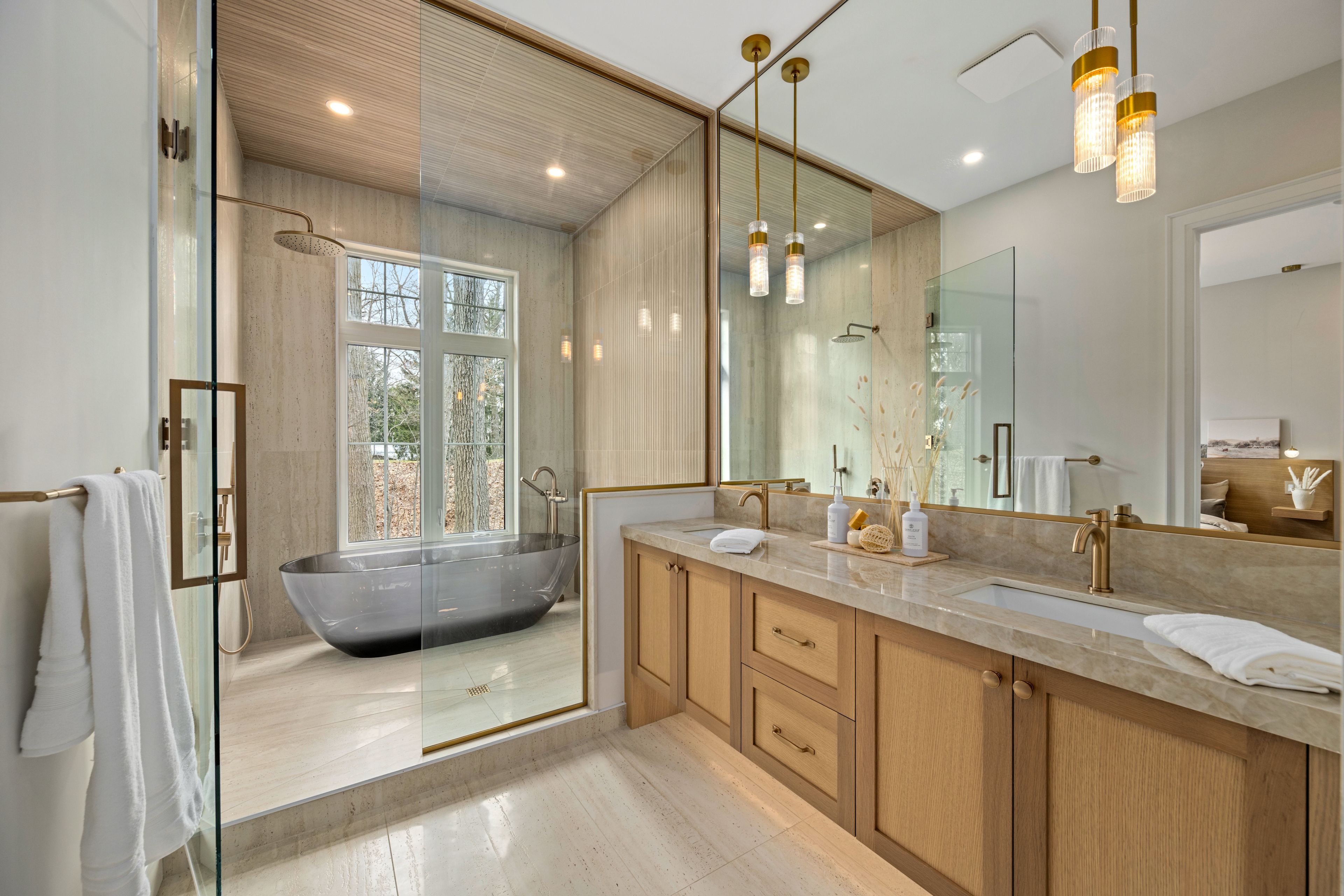 • Three bedrooms, each with en-suite and walk-in closet access.