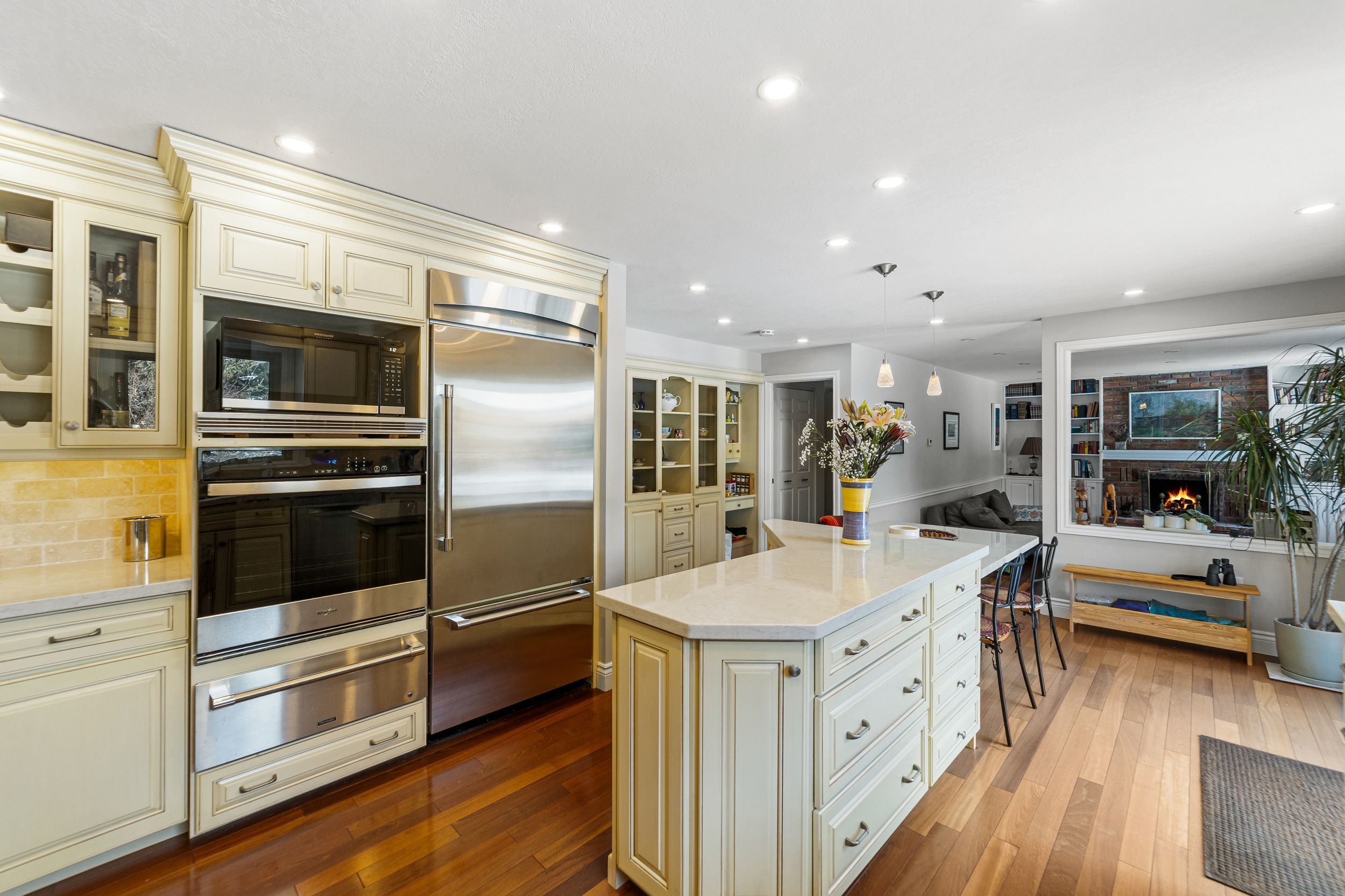 • Custom chef's kitchen with premium appliances and an oversized island.