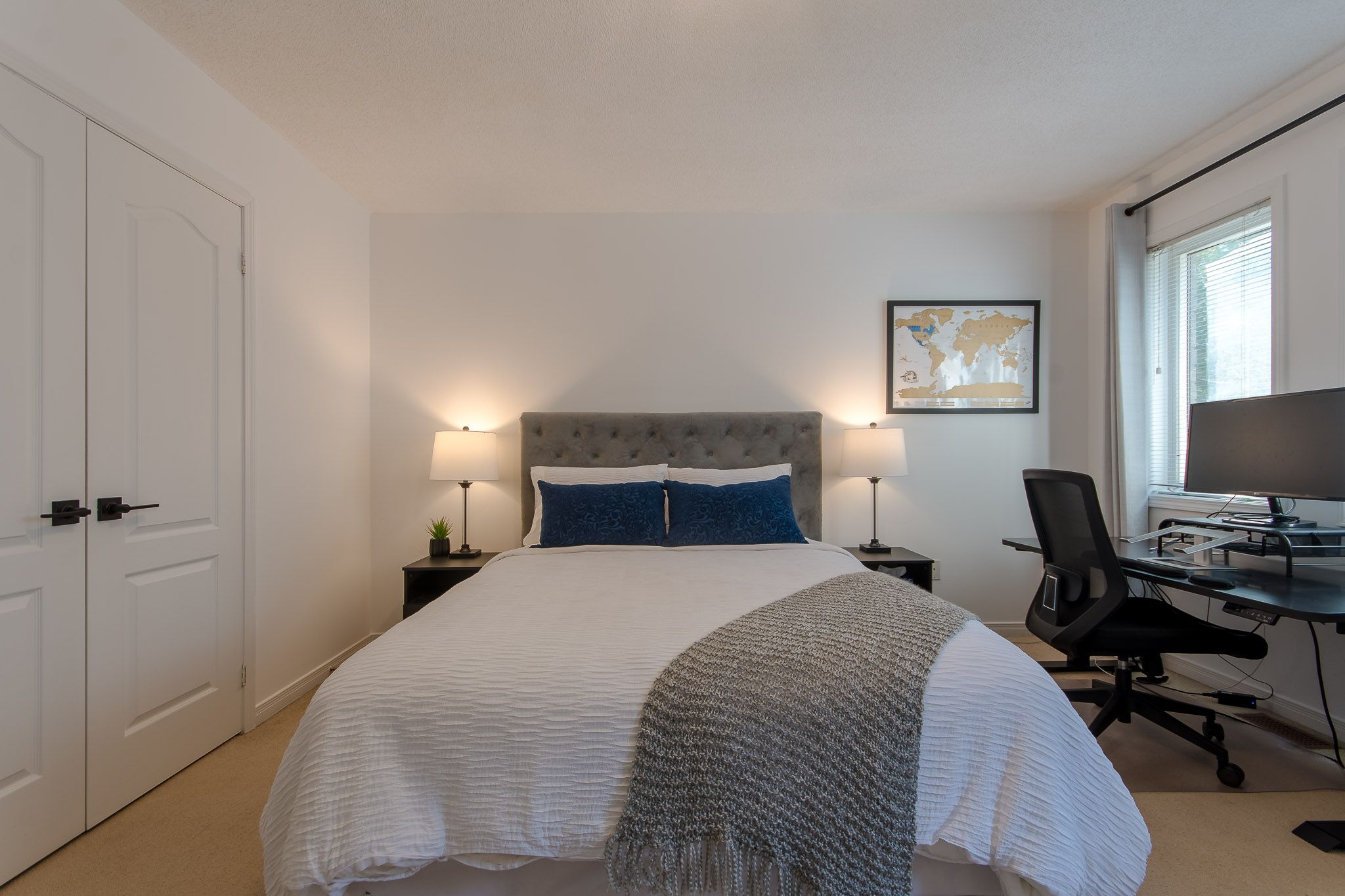 • Three cozy bedrooms with blackout curtains and dedicated workstations.