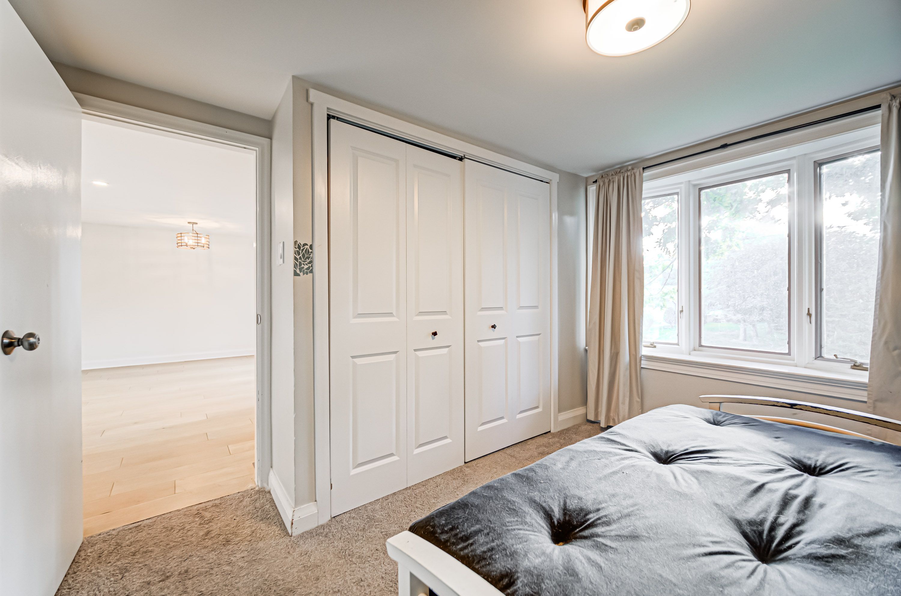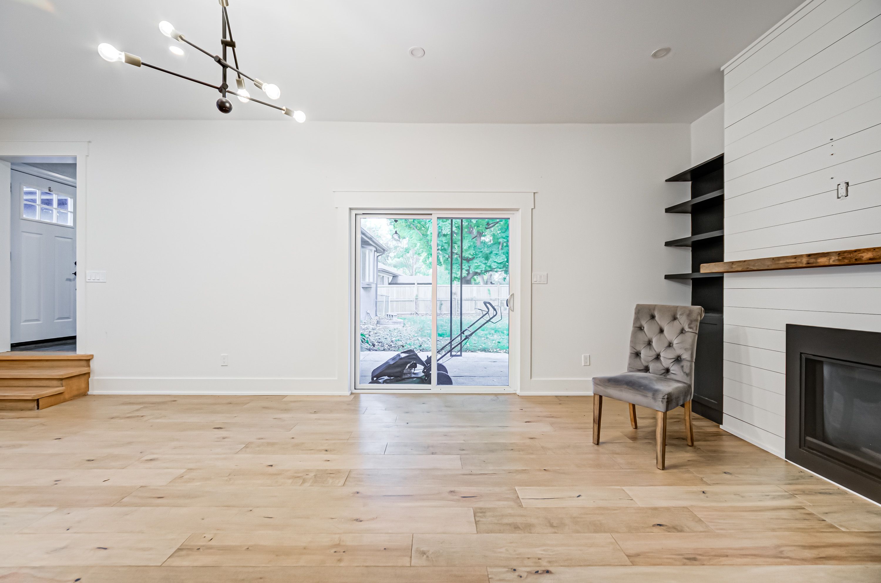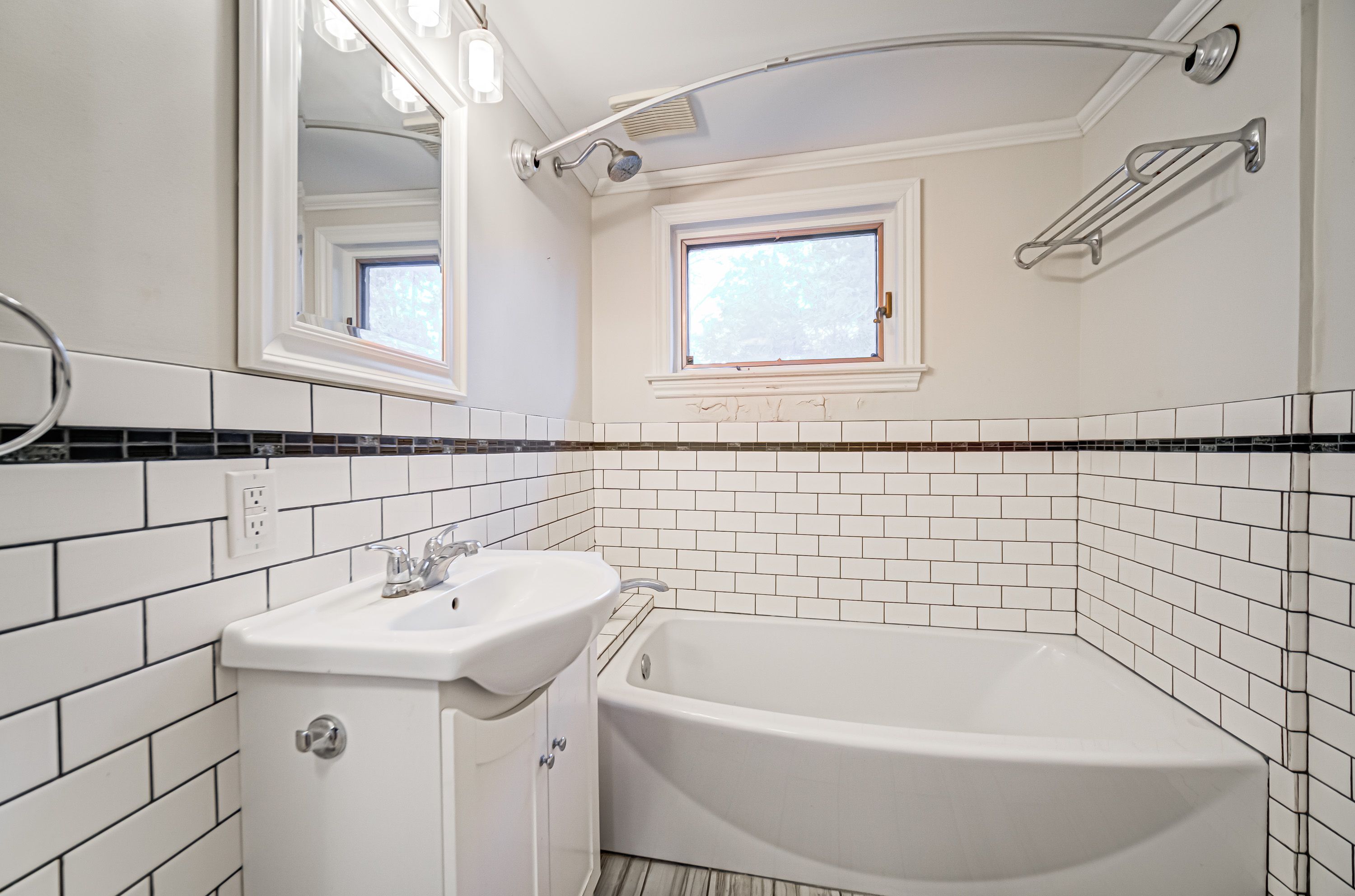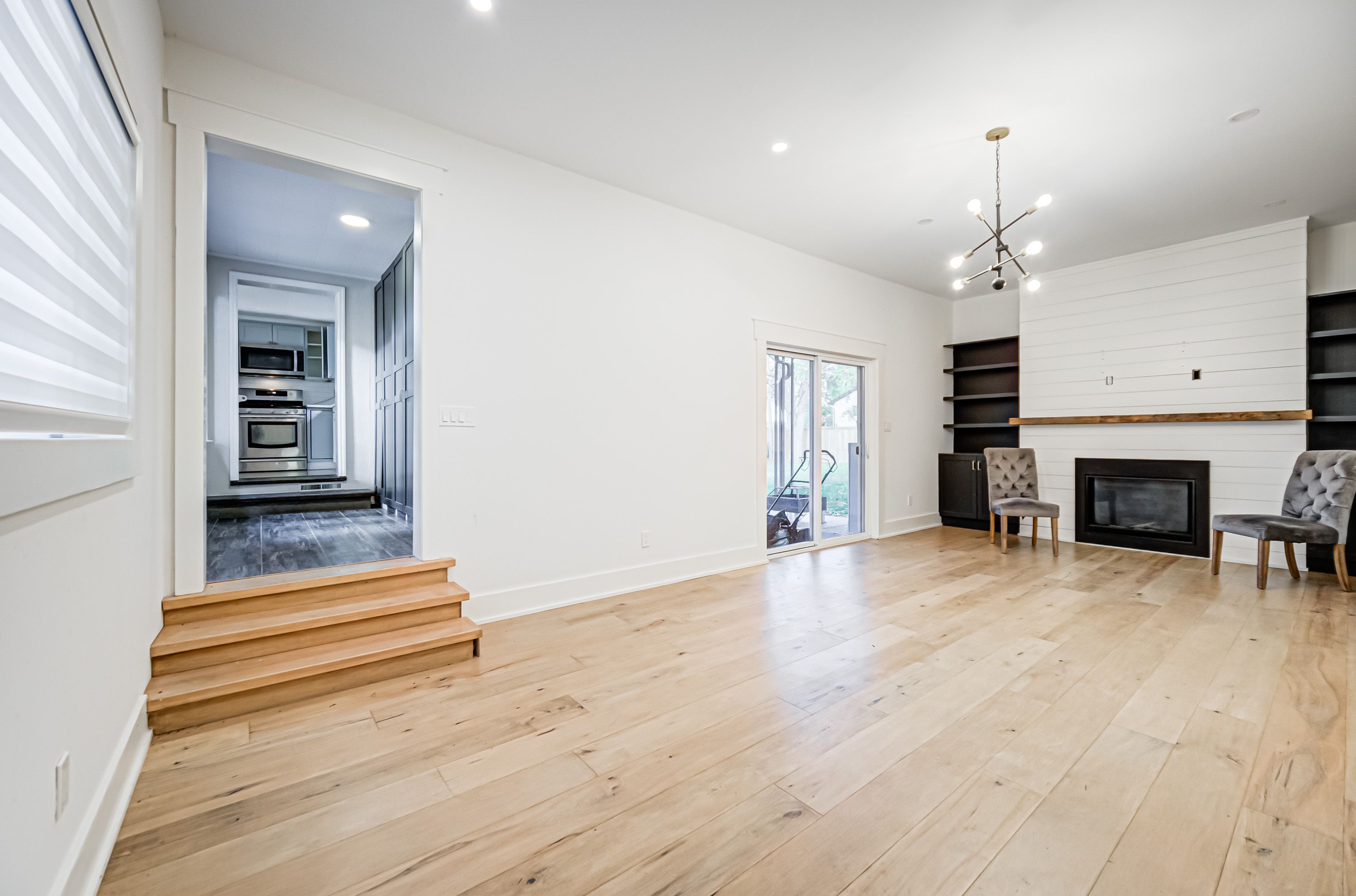 • Bright, updated bungalow with modern interior and maple hardwood floors.