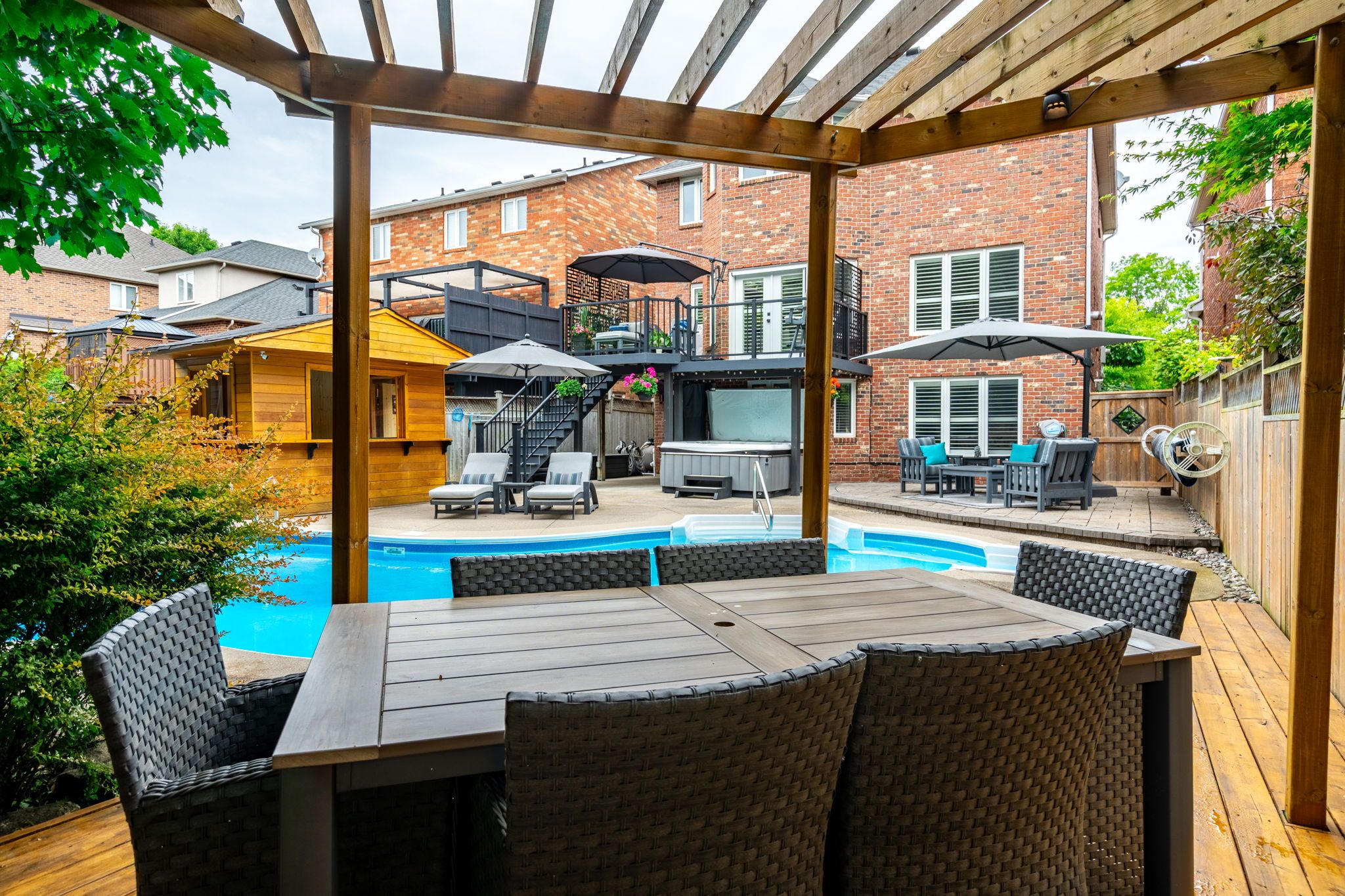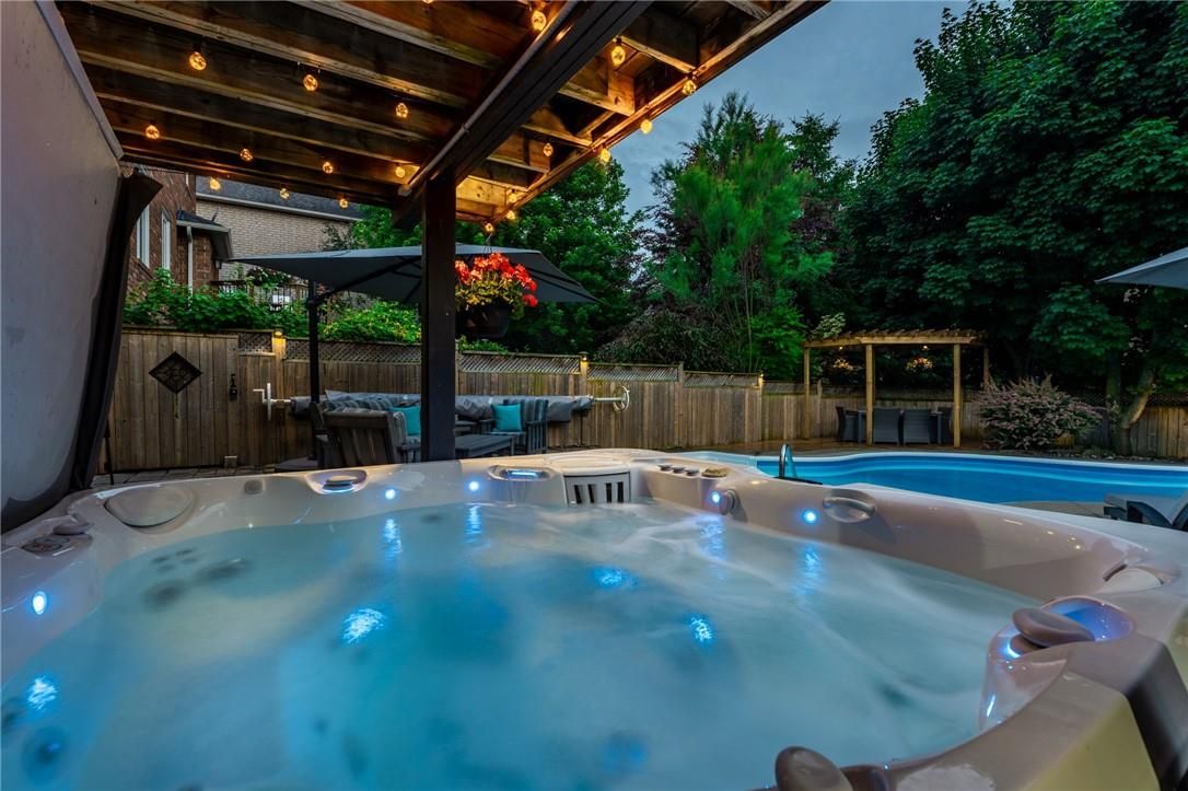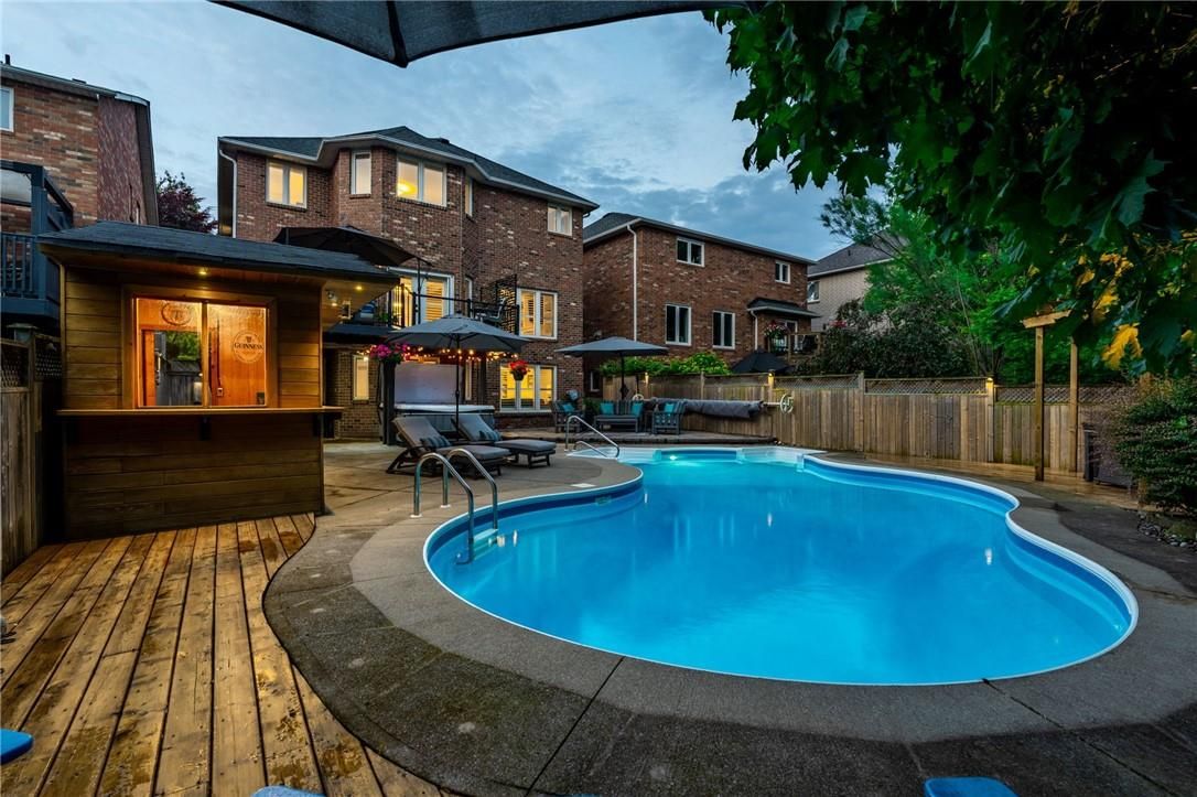 Welcome to 7 volterra court, waterdown - a rare family gem! Located on a quiet, family-friendly court, this beautifully maintained, move-in-ready home offers over 4,000 square feet of finished living space with five-plus-one bedrooms, three-and-a-half bathrooms, a finished walkout basement and a private backyard oasis with heated saltwater pool and hot tub. Curb appeal shines with professional landscaping and inground irrigation. Inside, a grand foyer opens to a spacious main floor featuring a formal dining room, a private living room and a functional mudroom/laundry area. The heart of the home is the open-concept kitchen and family room with custom built-ins and a gas fireplace - ideal for everyday living or hosting. Upstairs offers four generous bedrooms plus a large office or recreation room which can be converted to a fifth bedroom, including a luxurious primary suite with walk-in closet, spa-like five-piece ensuite, electric fireplace and a private sitting area. The updated main bathroom features heated floors and a towel rack. The fully finished lower level includes a large recreation room, an additional bedroom and a three-piece bath. A walkout leads to your private backyard retreat: a multi-tier composite deck, a covered hot tub, a heated pool, multiple lounging and dining areas, a pergola and a cedar pool house with electricity. Notable upgrades include lutron switches and pot lights, california shutters, central vacuum, front yard irrigation, exterior landscape lighting, swiss trax garage flooring, new front and garage access doors plus a rear patio door with retractable screen and a monitored smart home alarm system - plus much more. See attachments for full details. This exceptional home in one of waterdown's most sought-after neighbourhoods checks every box. Rsa.