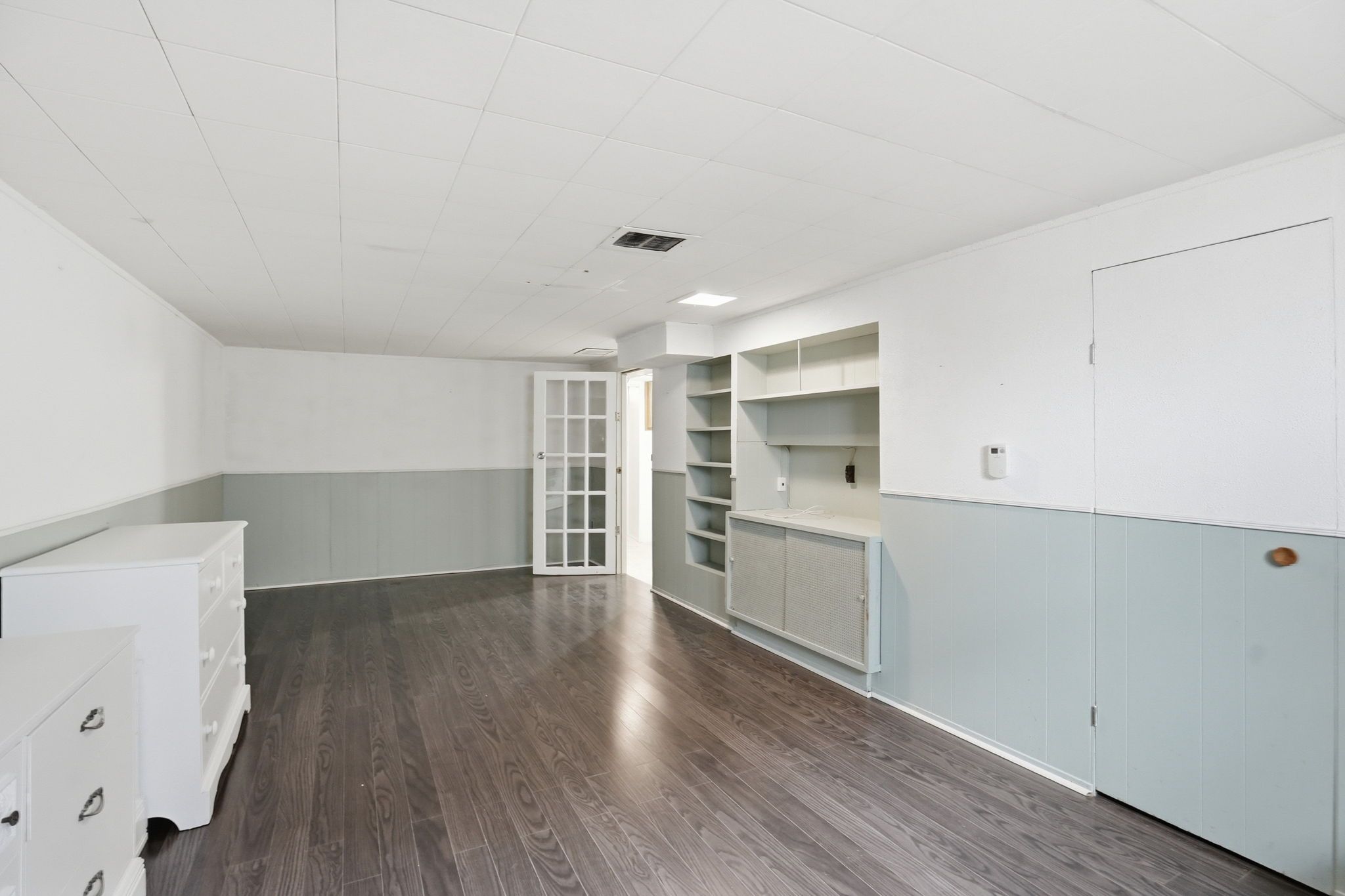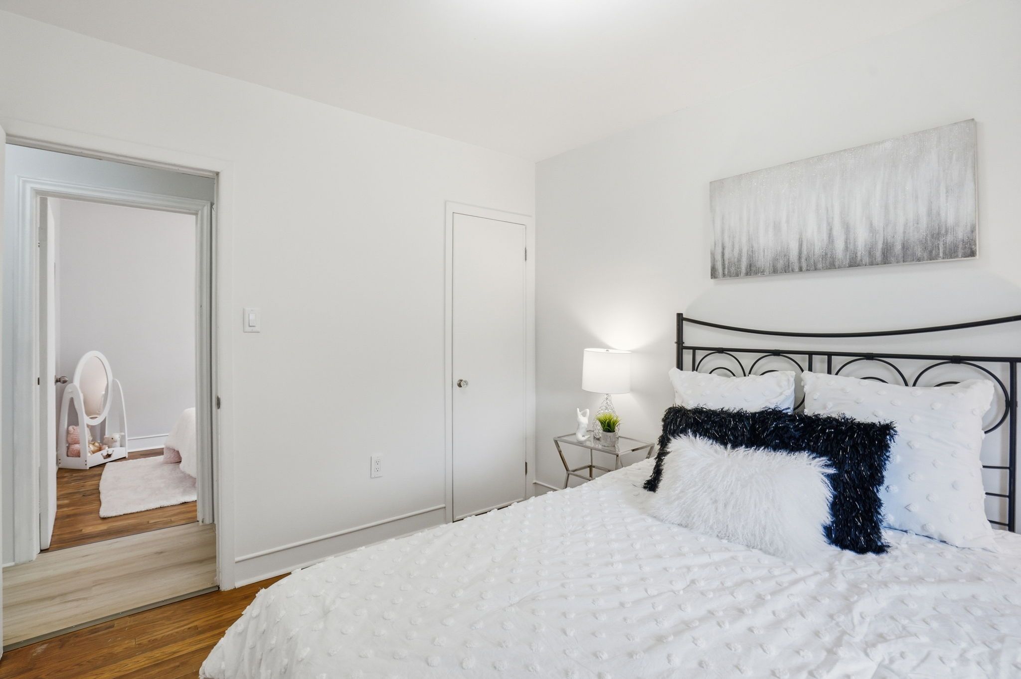 • Bright upper level with two bedrooms and a functional kitchen.