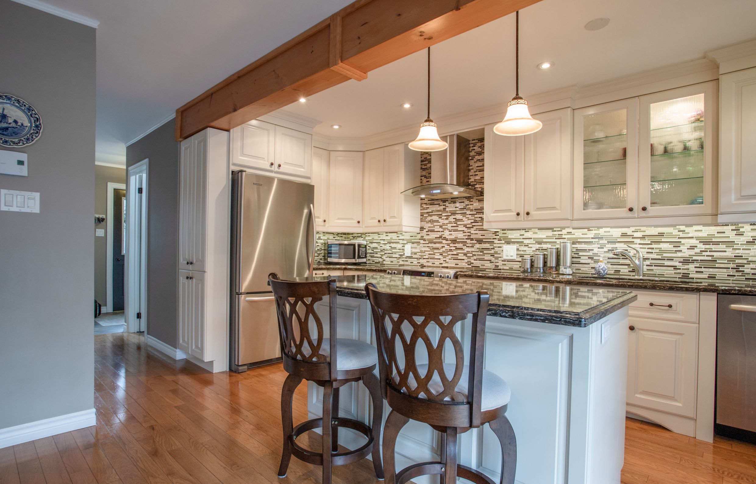 • Generous landscaped lot featuring a private backyard and mature trees.
