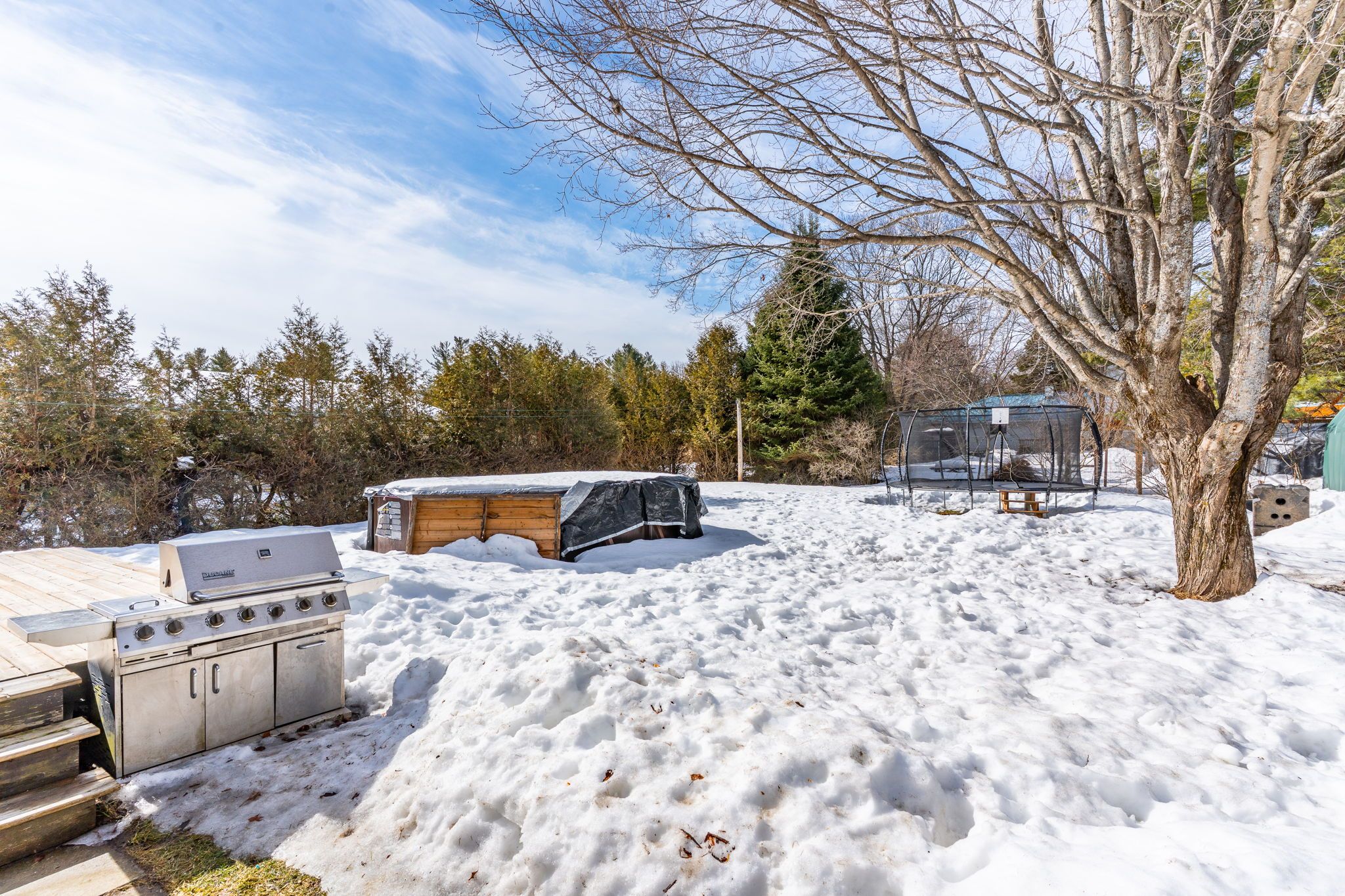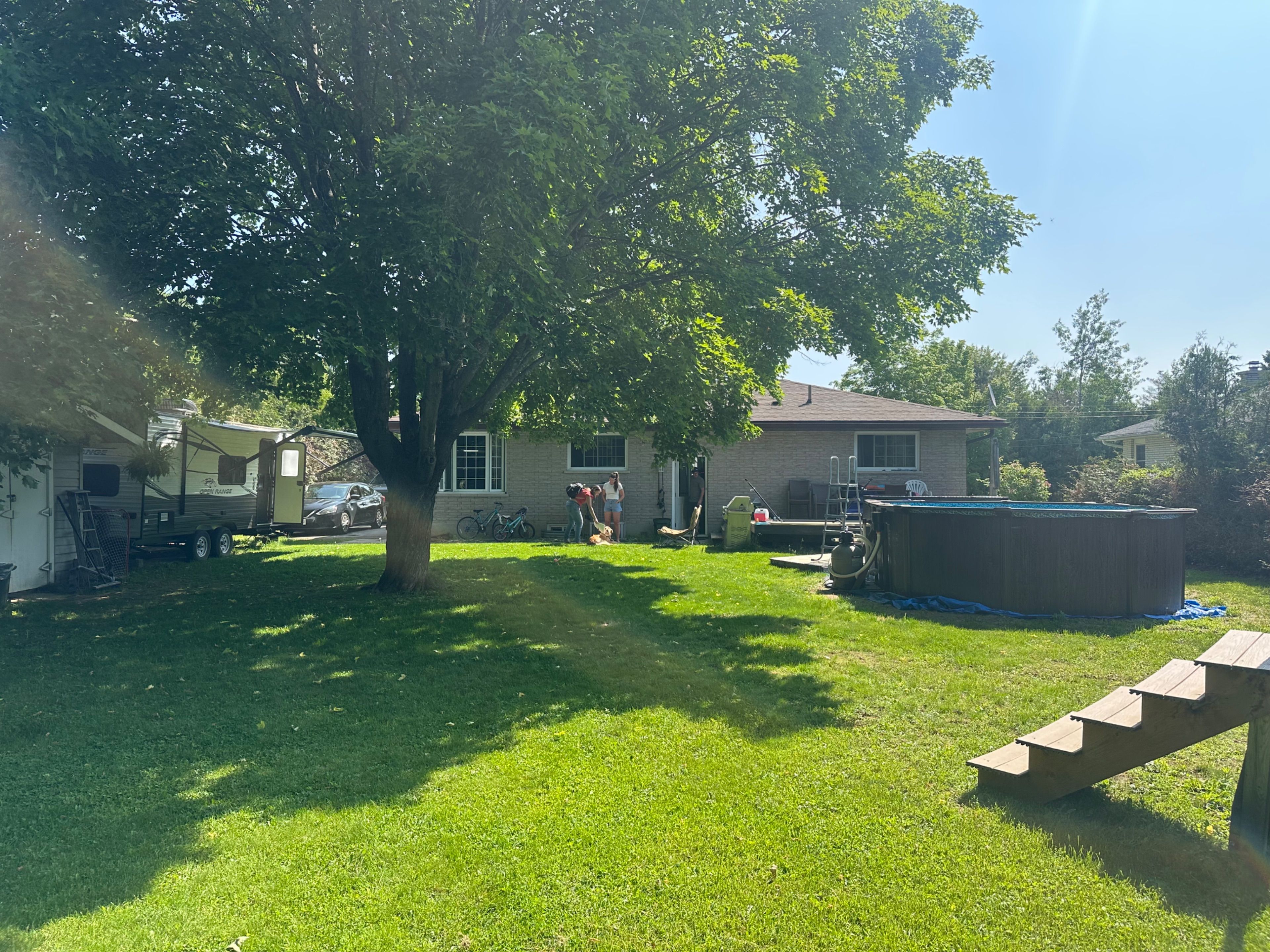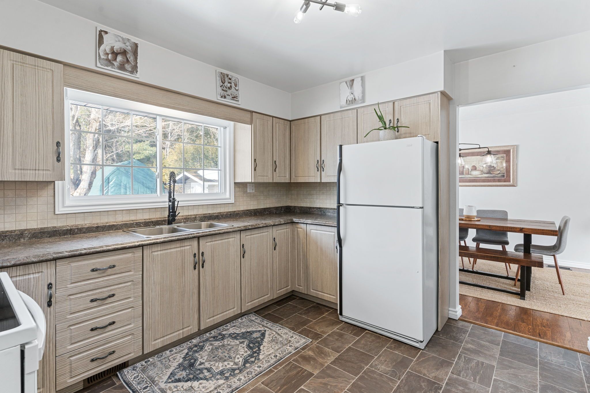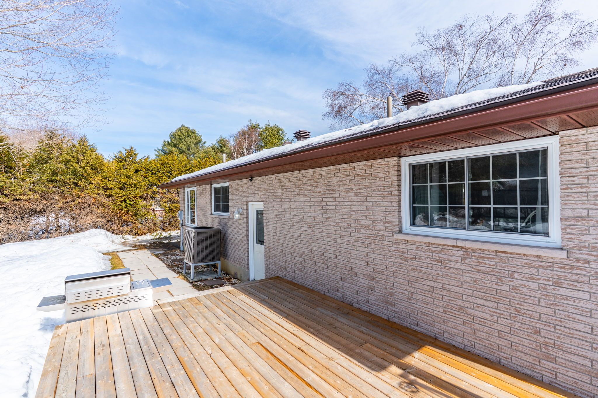 Welcome to a beautifully updated, classic brick bungalow on a quiet, family friendly street in minden hills. Blending modern aesthetics, move in ready convenience, and incredible future potential, this home is an absolute must see. Set back from a paved year round road, the property has exceptional curb appeal. A front deck and mature birch tree frame the large yard, which even had enough room for a small personal skating rink last winter! Spanning just under 1,200 sq ft on the main level, the desirable layout perfectly separates the living and sleeping quarters. Large windows flood the space with natural light, highlighting the seamless flow between the living room, dining area, and kitchen. The spacious living room features a striking stone fireplace, perfect for a propane insert. Tucked quietly at one end are three generous bedrooms and a sparkling, updated full bath. Downstairs features just over 400 sq ft of finished space currently serving as a nice rec room, with space to add a fourth bedroom. You will also find incredible equity building potential with a room already plumbed for a second bath, alongside a large furnace and laundry room offering ample storage. Step into the expansive, west facing backyard to find your private summer oasis. Surrounded by mature hedges, the yard features a large entertaining deck, an above ground pool, and a mature maple tree offering shade with plenty of room for yard games. Enjoy the added peace of mind of town water and municipal sewers. Location is everything! Leave the car in the paved driveway and walk to archie stouffer elementary school. Spend weekends strolling to downtown minden's local restaurants and shops, exploring the scenic riverwalk and boardwalk. Active families will love walking to the minden arena, offering a skating rink, walking track, pickleball, and basketball. Don't miss this incredible opportunity!