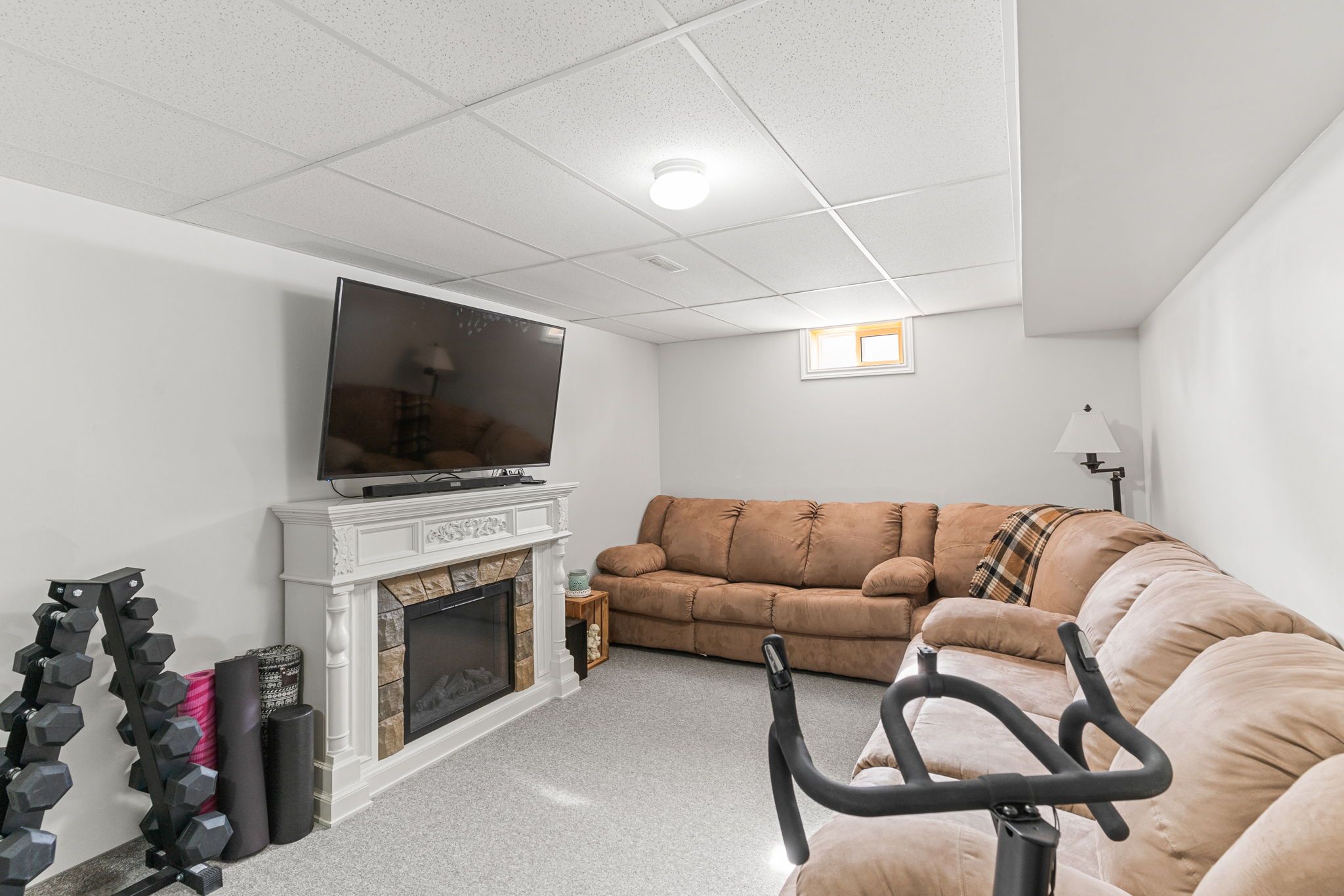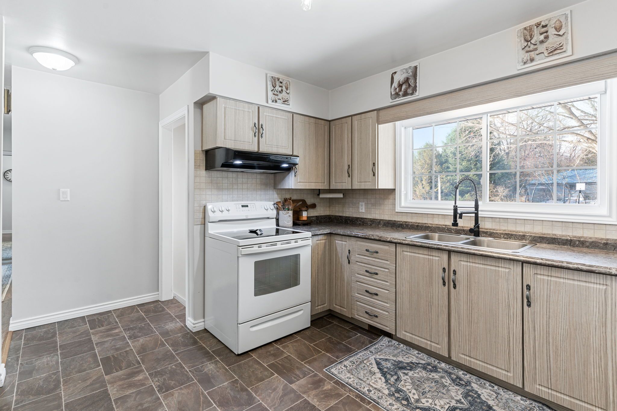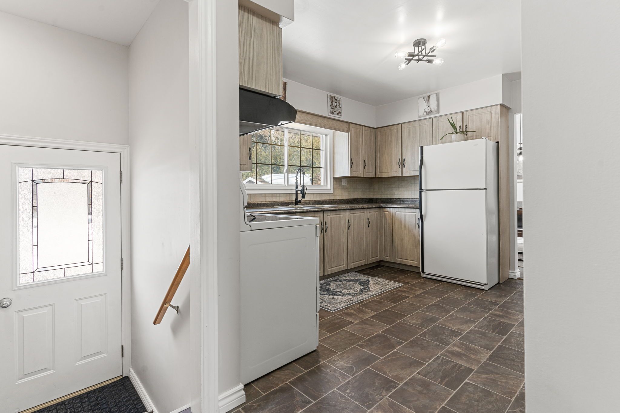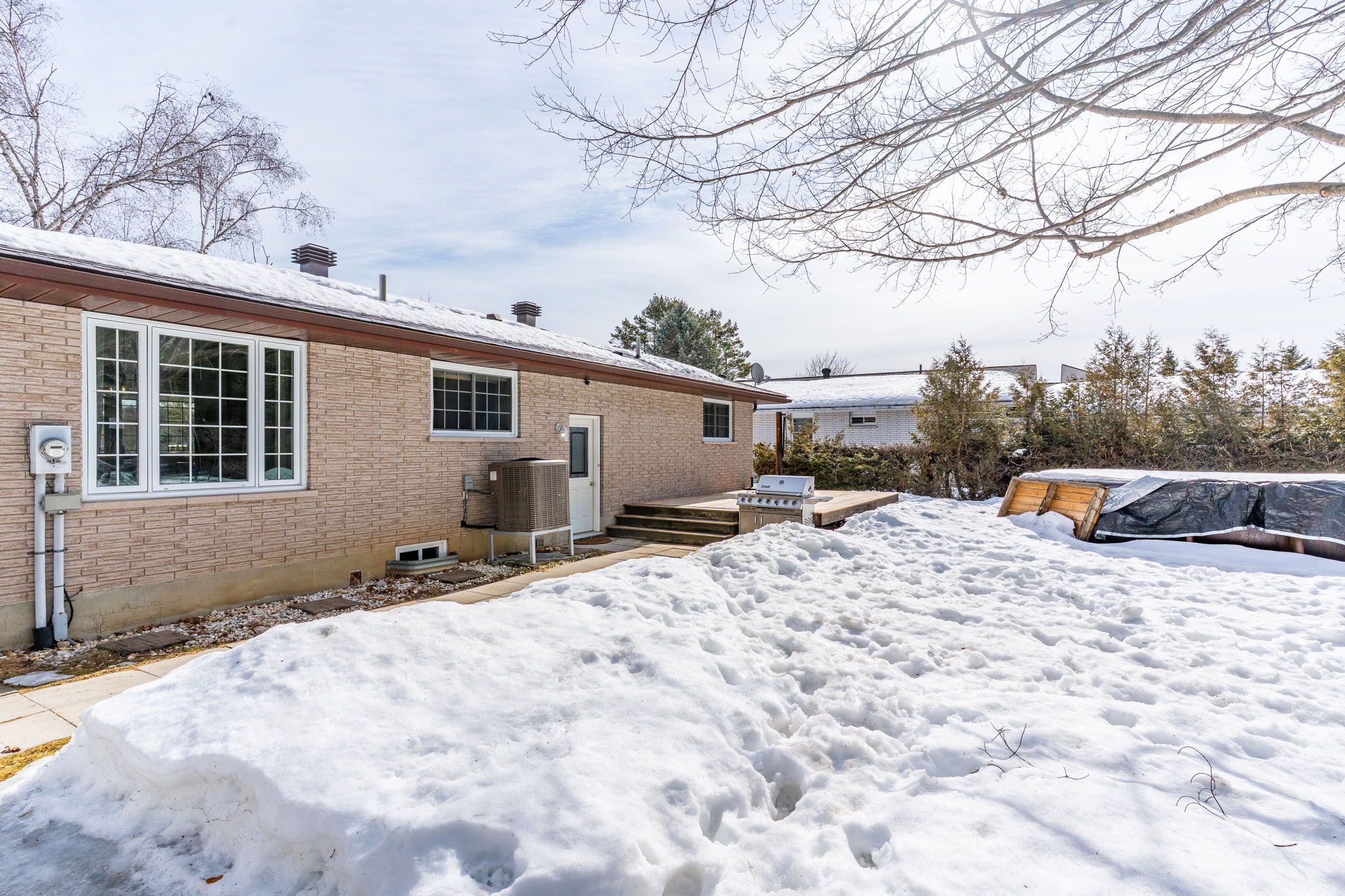 Welcome to a beautifully updated, classic brick bungalow on a quiet, family friendly street in minden hills. Blending modern aesthetics, move in ready convenience, and incredible future potential, this home is an absolute must see. Set back from a paved year round road, the property has exceptional curb appeal. A front deck and mature birch tree frame the large yard, which even had enough room for a small personal skating rink last winter! Spanning just under 1,200 sq ft on the main level, the desirable layout perfectly separates the living and sleeping quarters. Large windows flood the space with natural light, highlighting the seamless flow between the living room, dining area, and kitchen. The spacious living room features a striking stone fireplace, perfect for a propane insert. Tucked quietly at one end are three generous bedrooms and a sparkling, updated full bath. Downstairs features just over 400 sq ft of finished space currently serving as a nice rec room, with space to add a fourth bedroom. You will also find incredible equity building potential with a room already plumbed for a second bath, alongside a large furnace and laundry room offering ample storage. Step into the expansive, west facing backyard to find your private summer oasis. Surrounded by mature hedges, the yard features a large entertaining deck, an above ground pool, and a mature maple tree offering shade with plenty of room for yard games. Enjoy the added peace of mind of town water and municipal sewers. Location is everything! Leave the car in the paved driveway and walk to archie stouffer elementary school. Spend weekends strolling to downtown minden's local restaurants and shops, exploring the scenic riverwalk and boardwalk. Active families will love walking to the minden arena, offering a skating rink, walking track, pickleball, and basketball. Don't miss this incredible opportunity!