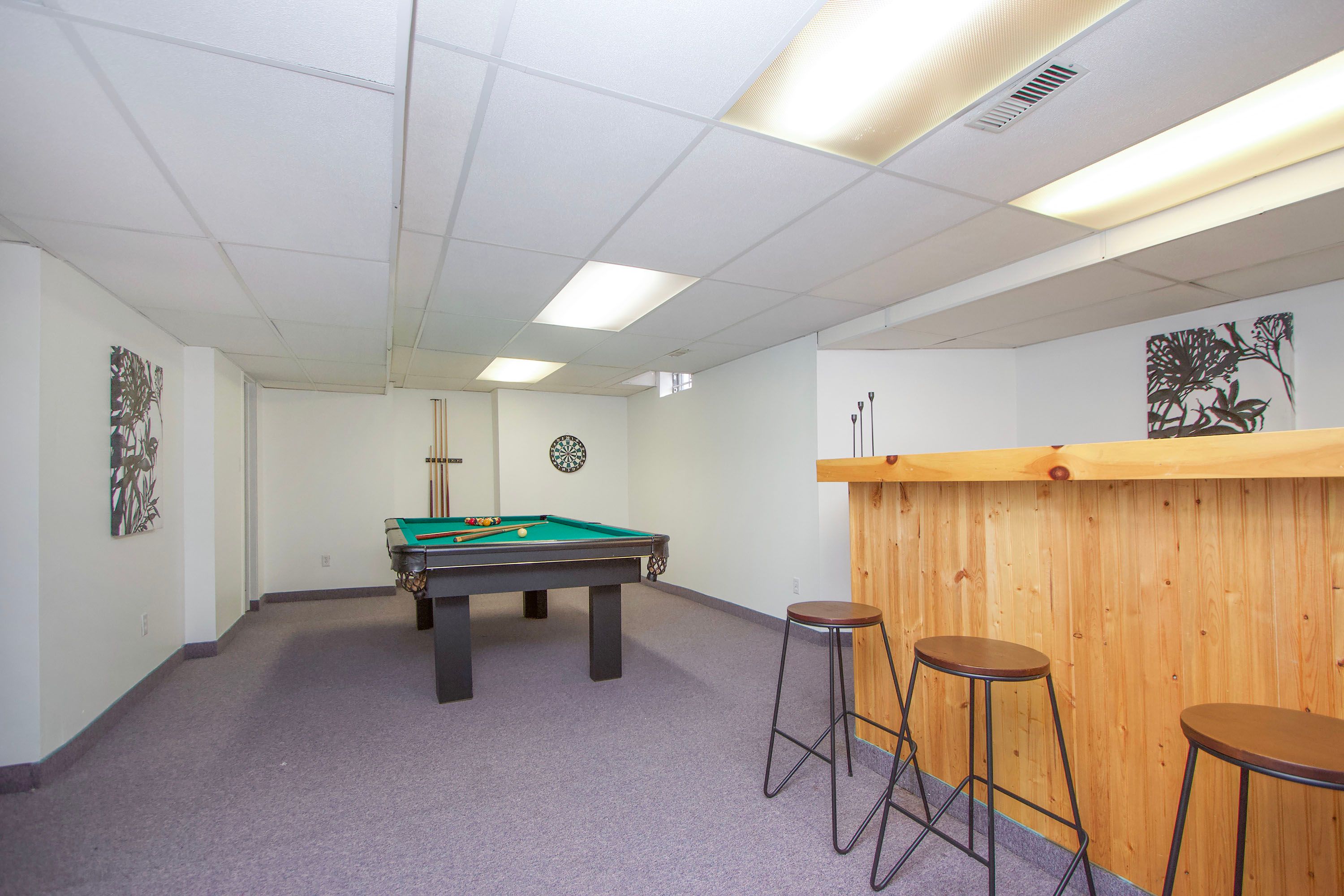 • Finished basement featuring a wet bar, recroom, and playroom.