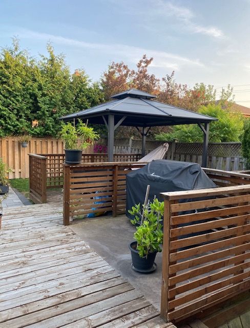 • Large private fenced yard with a gazebo for summer BBQs.
