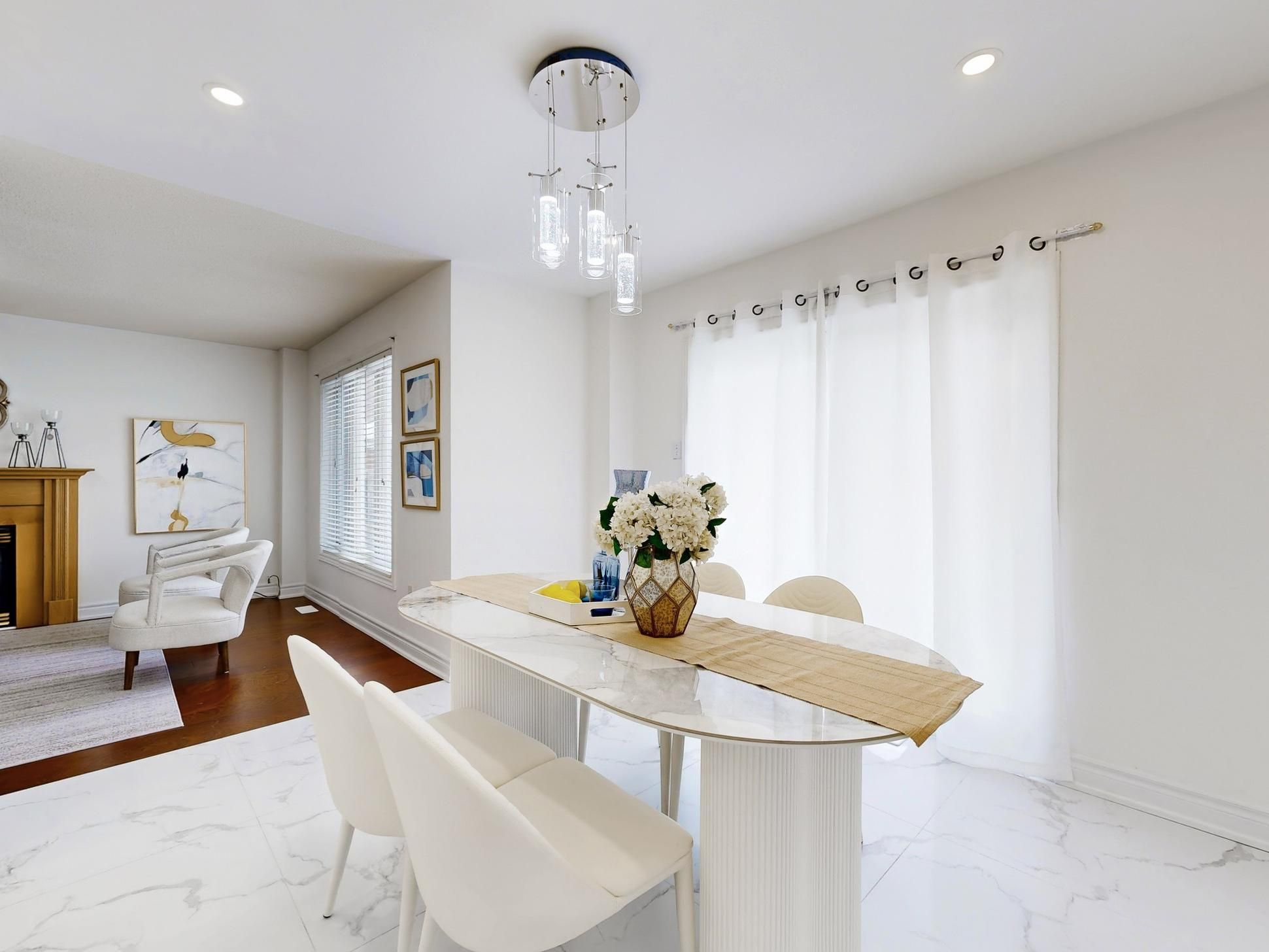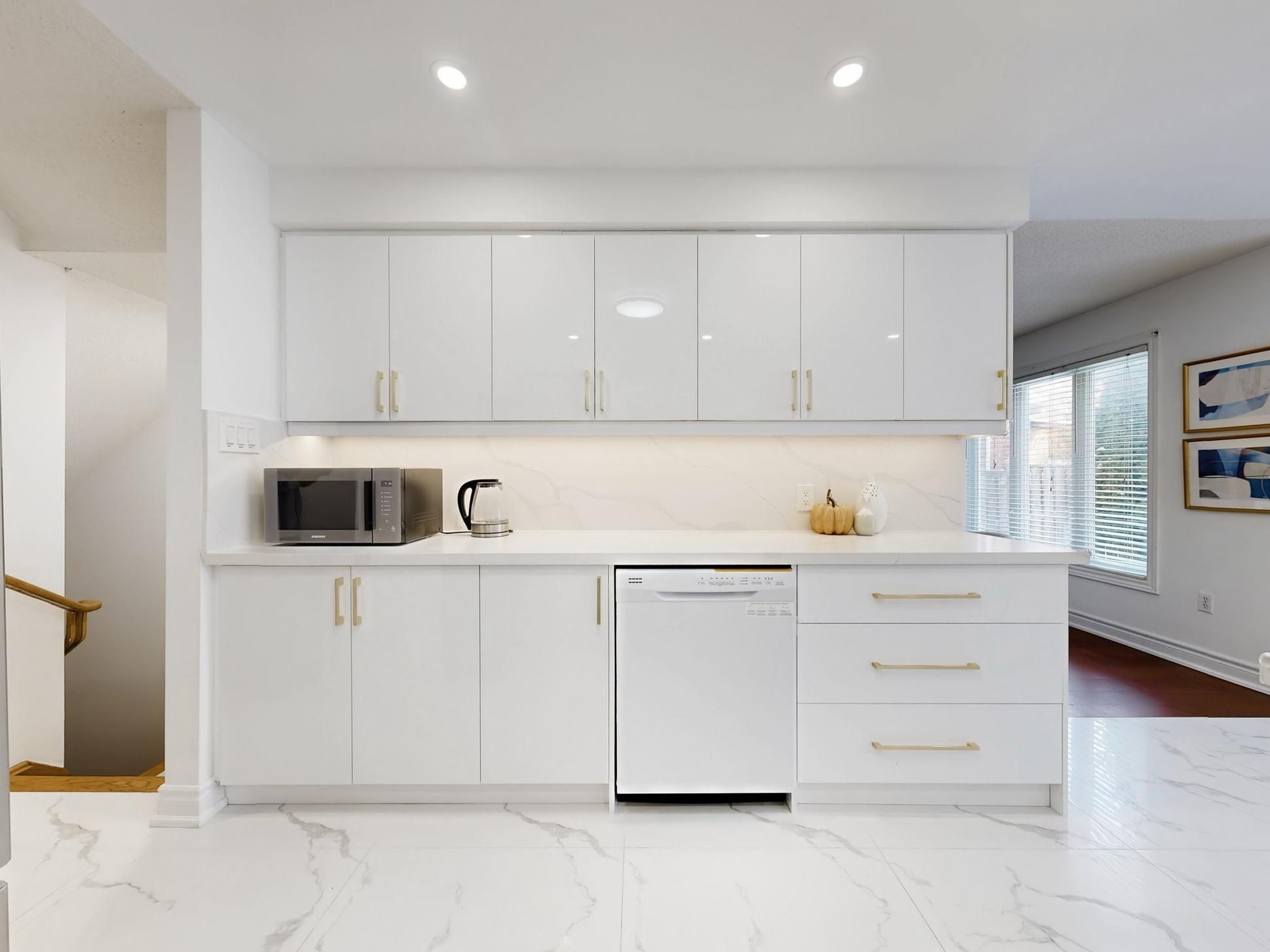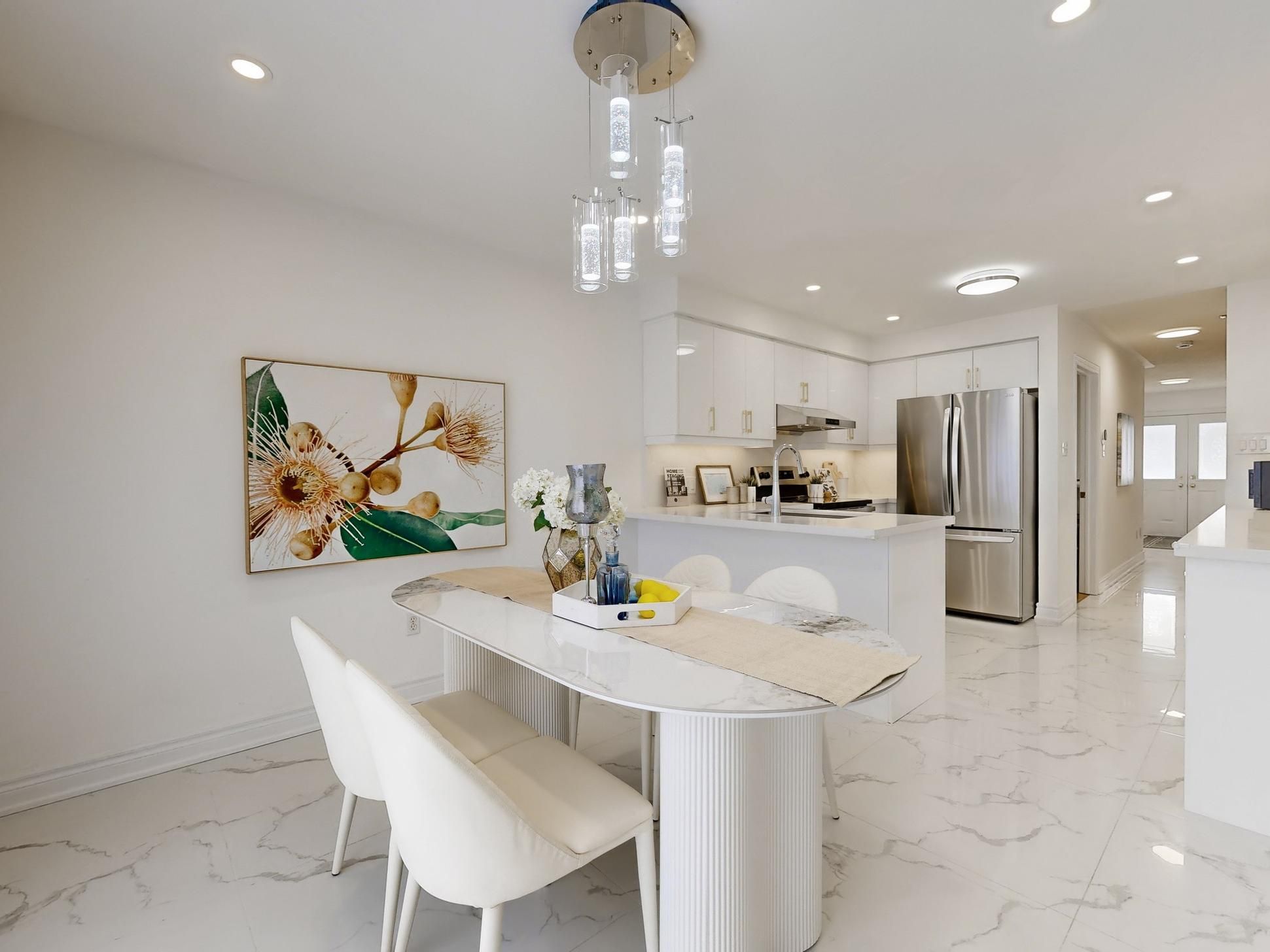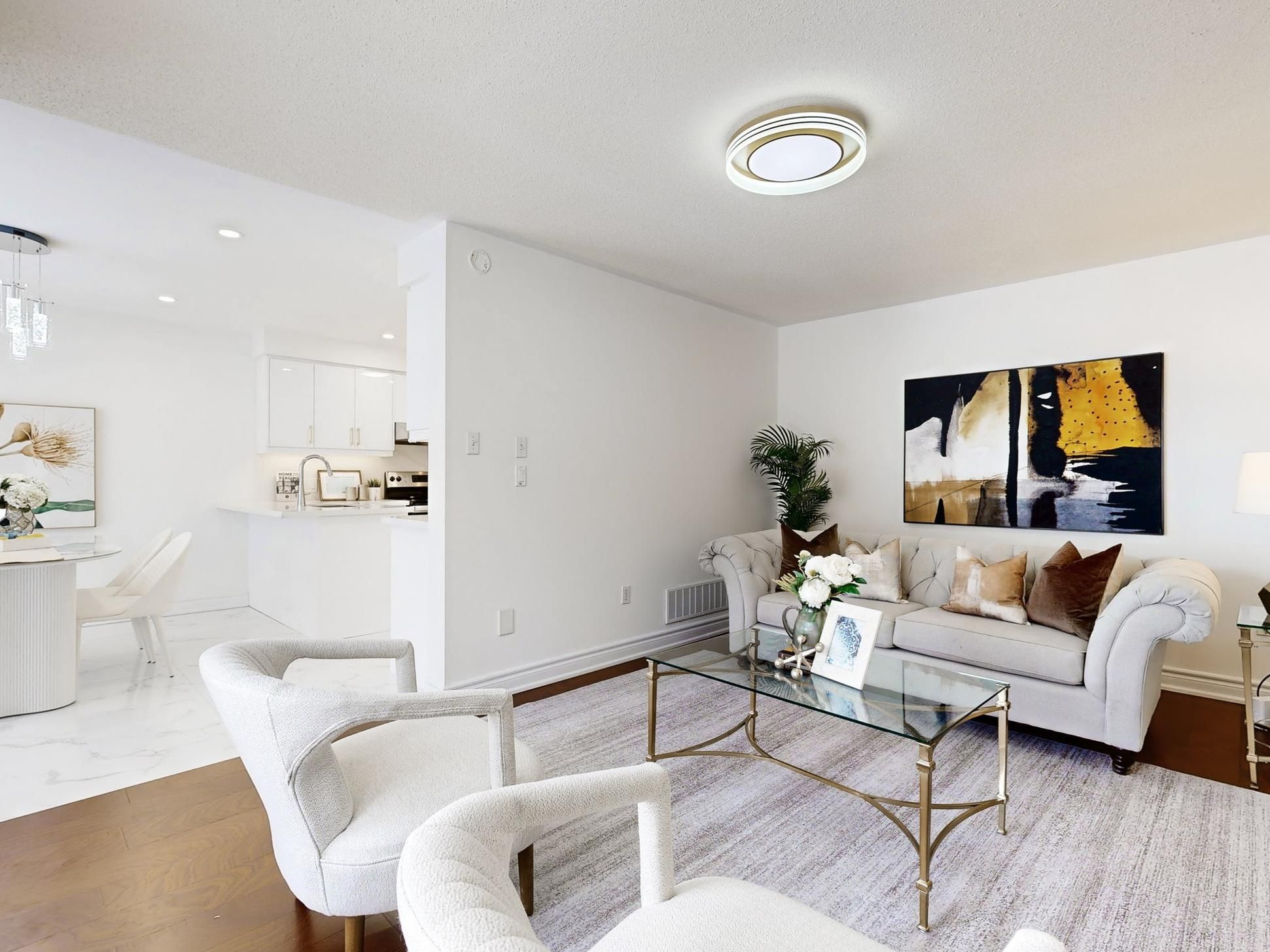 • Spacious open-concept layout with upgraded flooring and pot lights.