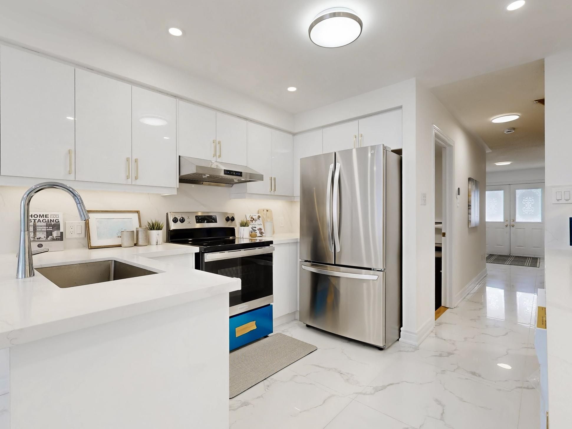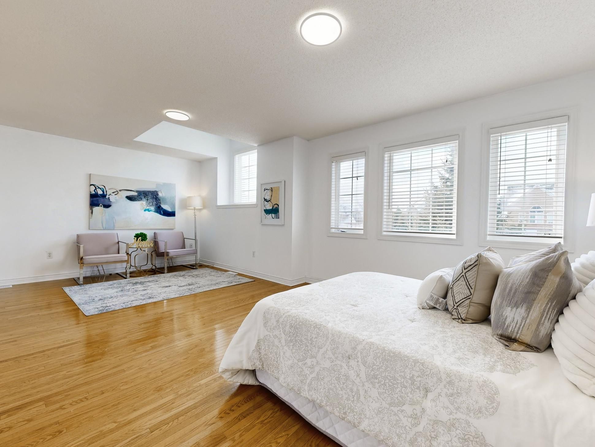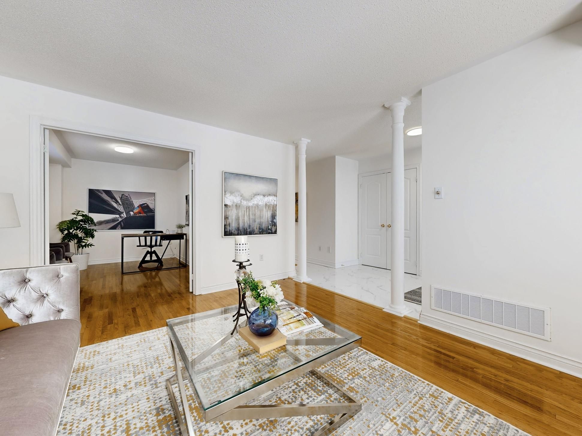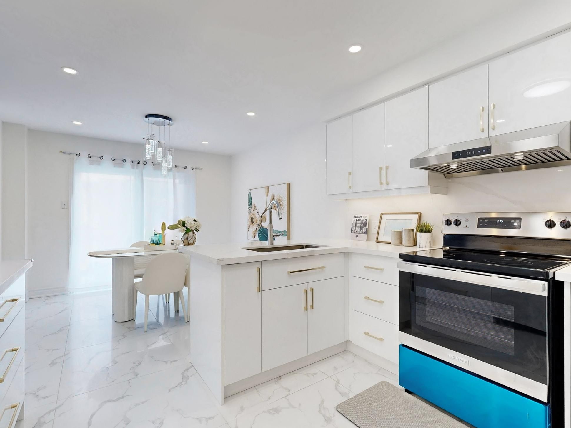 • Spacious open-concept layout with upgraded flooring and pot lights.