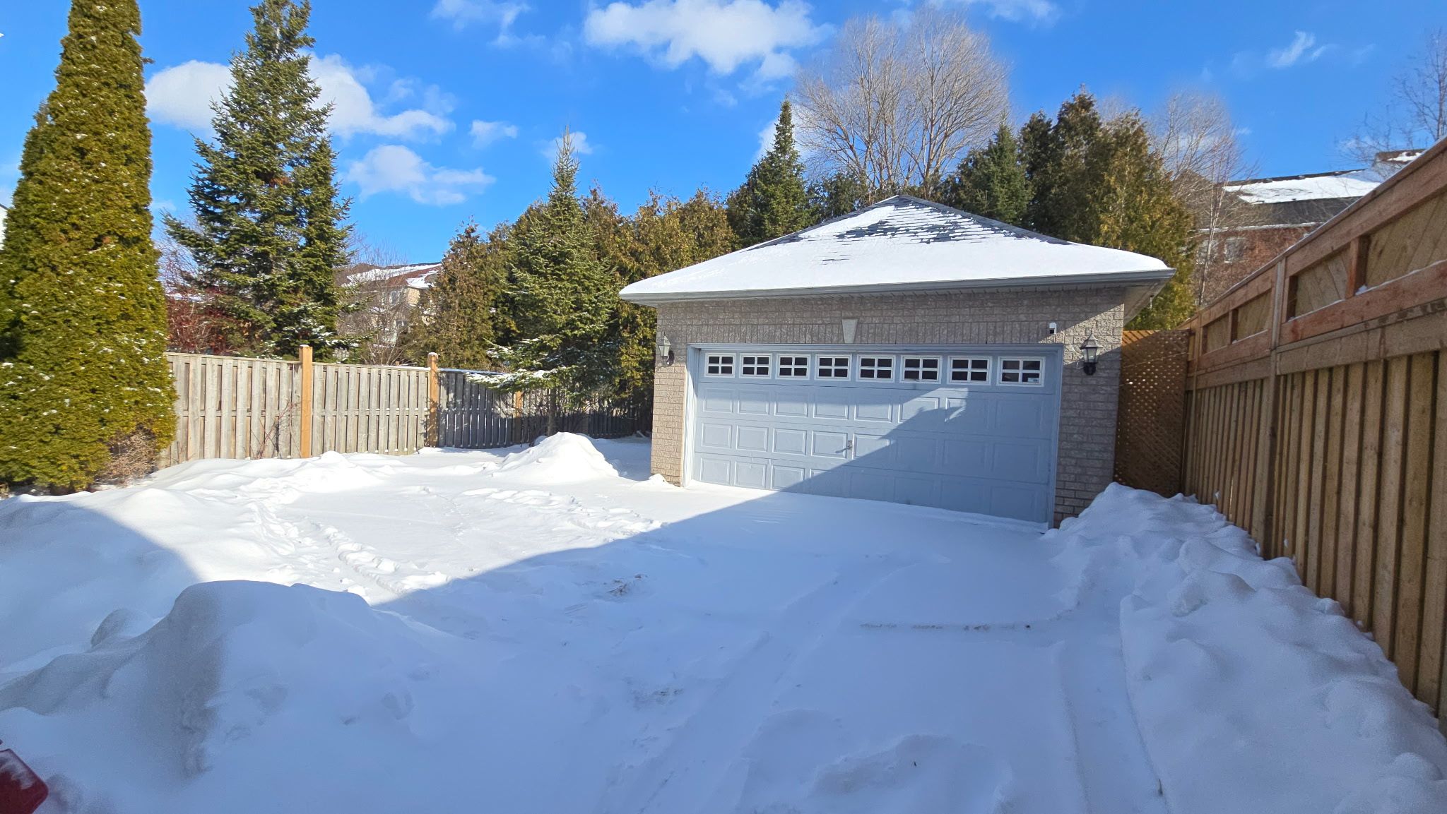 • Separate two-car garage offers extra storage and convenience.