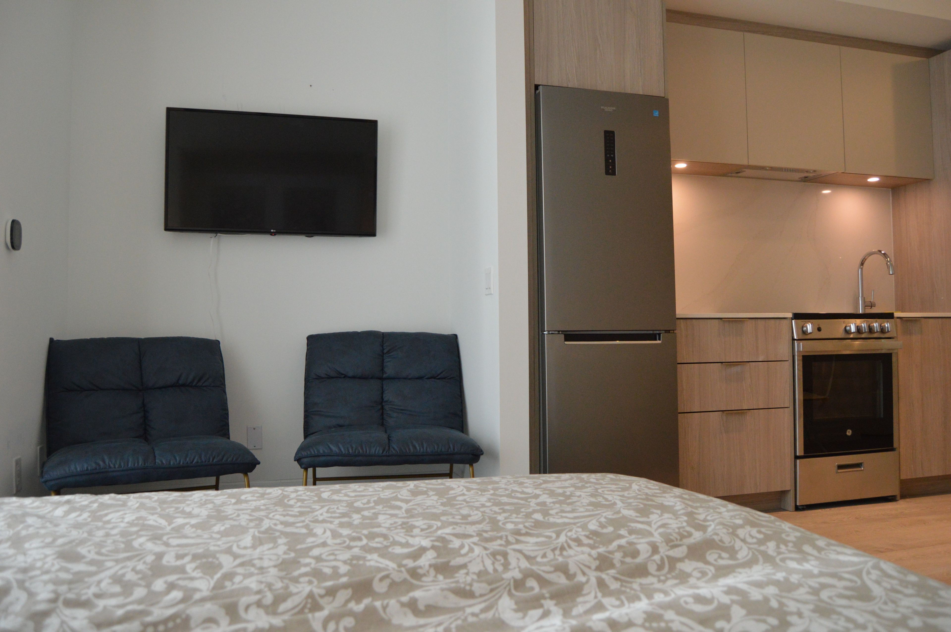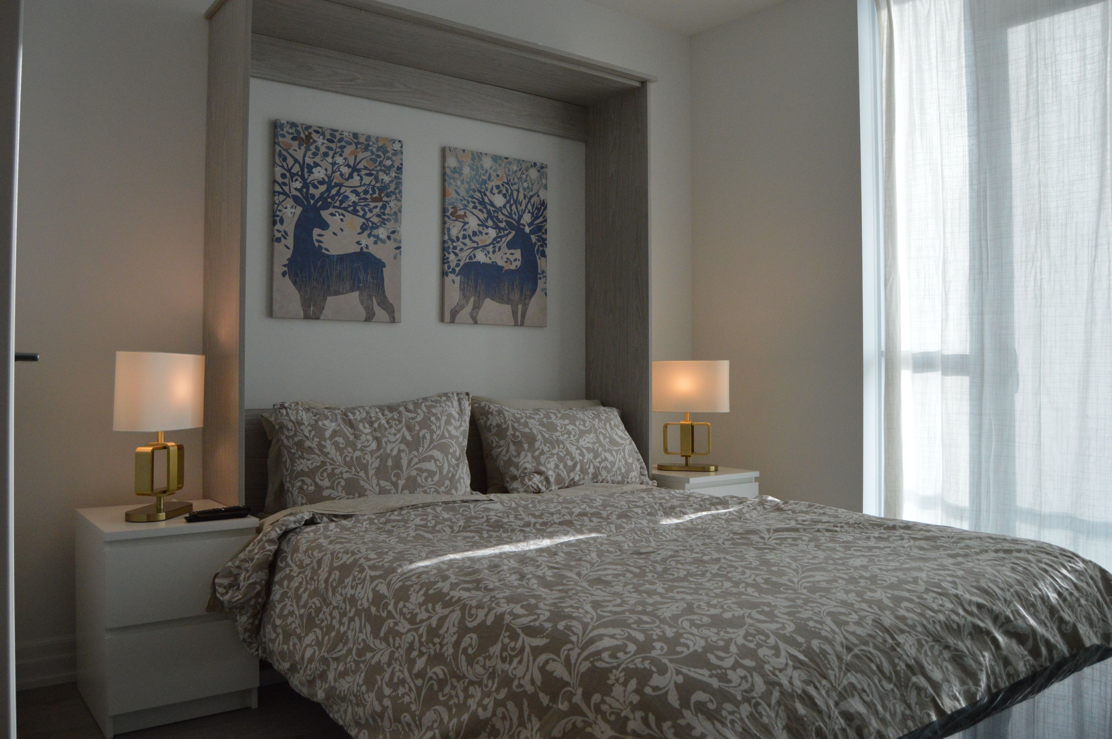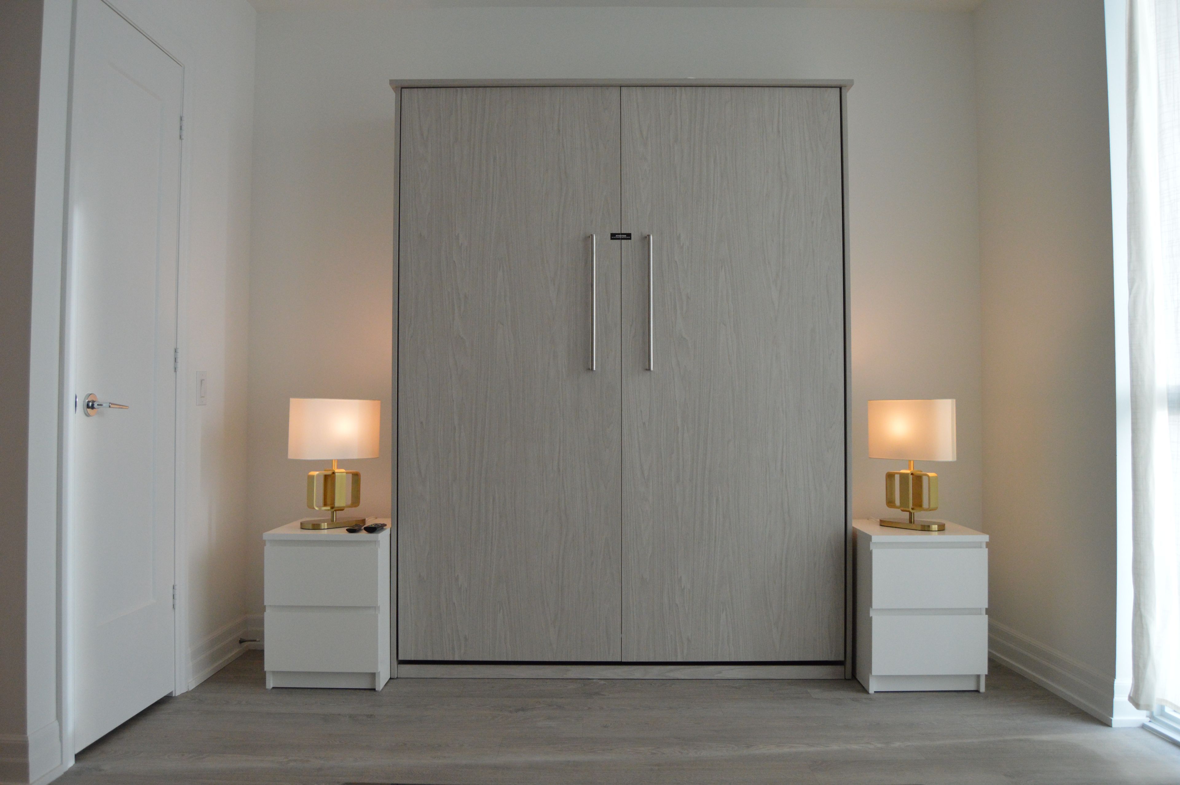 Bright & modern open concept bachelor unit floor to ceiling window, murphy bed attached, with a private locker for added convenience. Bright open-concept with walk-out to the balcony. Located at one of toronto's finest condominium residents on the waterfront, plenty of natural sunlight . Modern kitchen w/ s/s appliances, built in dishwasher, quartz counters, custom backsplash. The front door of this gorgeous home is a one-minute walk to the lake! Perfect for a single professional. *parking may be available to rent within building* enjoy a world-class amenities, including a fully equipped fitness centre, outdoor pool, yoga studio, party room, rooftop terrace with bbqs, and 24-hour concierge services. The building is also energy-efficient and well-managed, ensuring comfort and peace of mind. Located in the heart of humber bay shores, this condo places you steps away from waterfront trails, parks, boutique shops, trendy cafes, and fine dining. Access to the gardiner expressway easy commuting to downtown toronto or the airport.