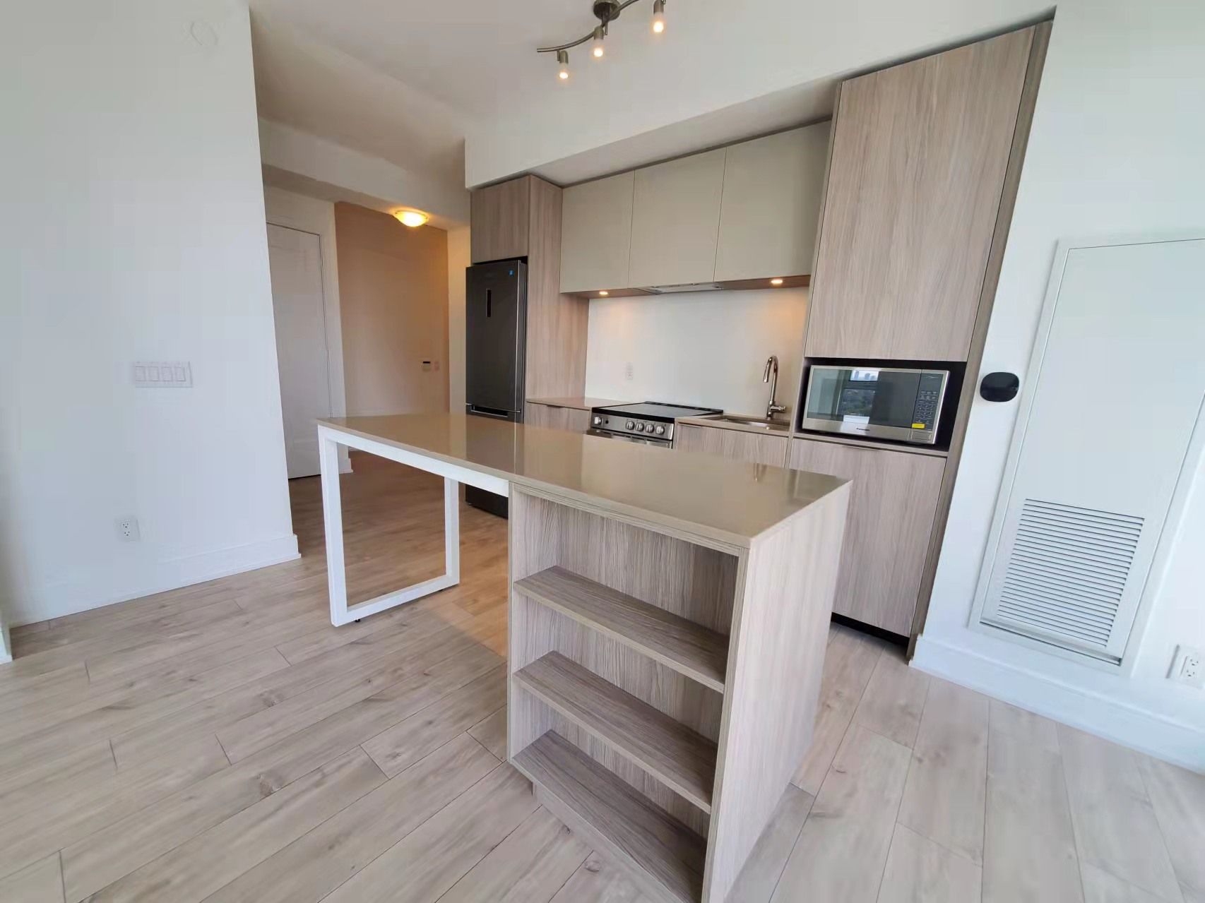 Stunning 1+1b, 2w never lived-in corner unit condo in water front community with beautiful unobstructed lake views. 24hr. Concierge. Easy access to park, lake & trails. S/s integrated appliances, modern open concept kitchen with island, high ceilings, mirrored closets, open balcony,bicycle storage,first-come first-serve basis. Because of the tenant's privacy, interior photos are not provided here. The images shown are from previous listings for reference only.