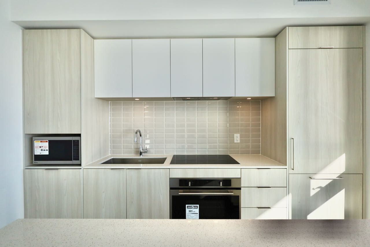 • Quartz countertops add a sleek touch to the kitchen.
