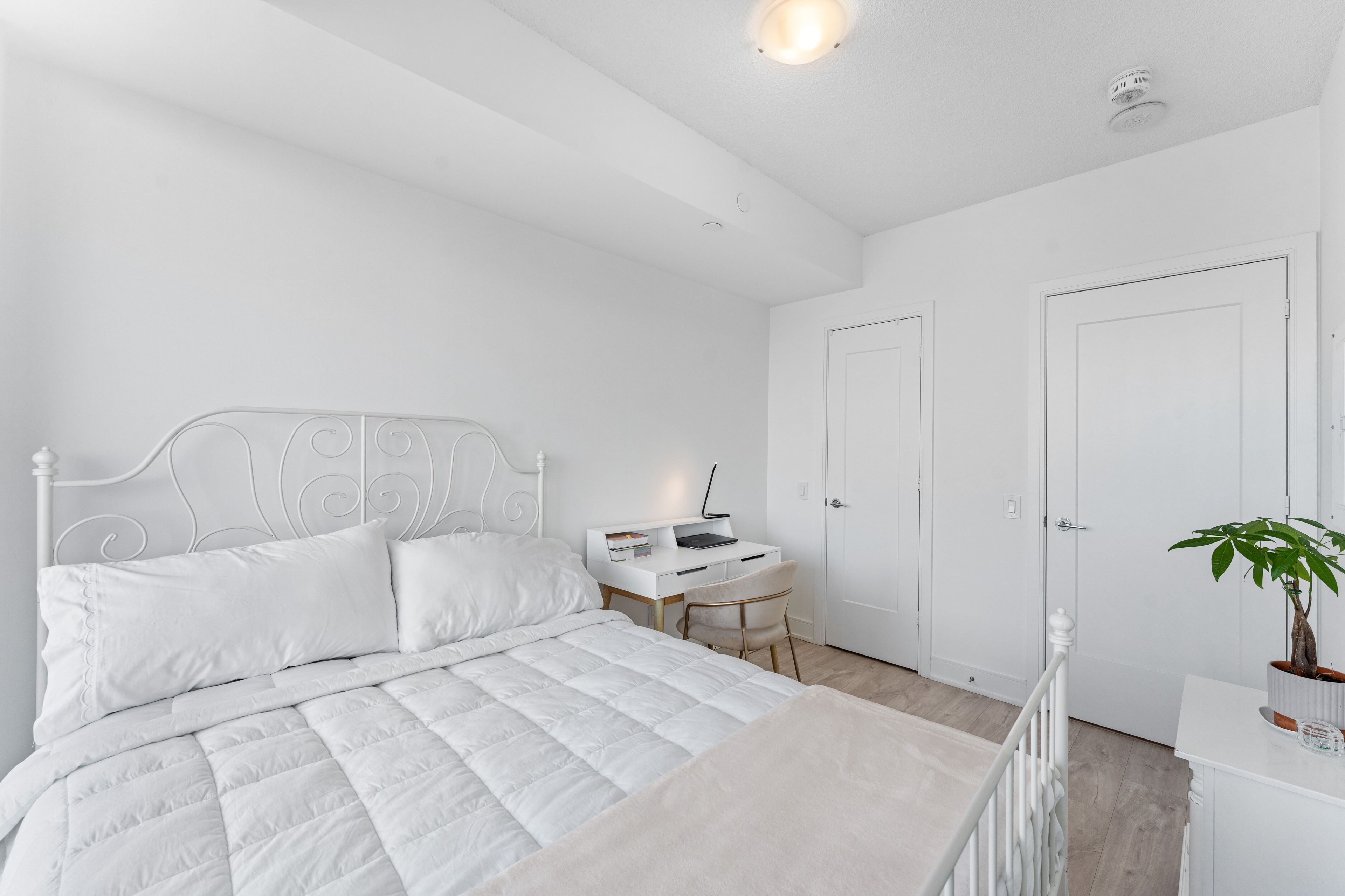 • Modern one bedroom suite with a large walk-in closet for ample storage.