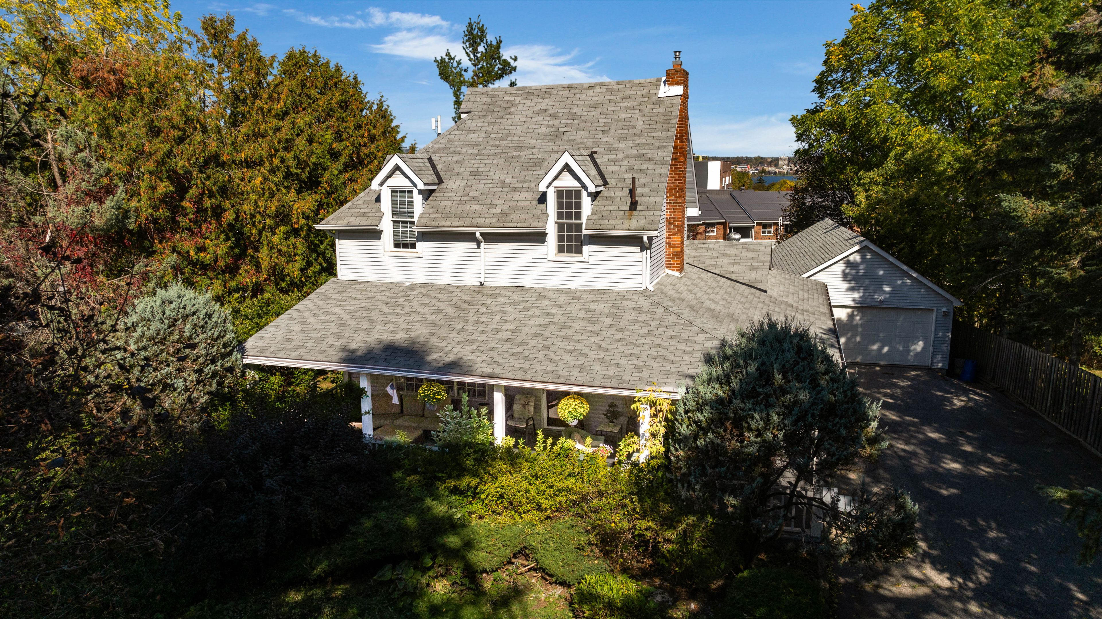 An extraordinary opportunity to own a piece of barries history in the heart of allandale. Set on a massive 101 x 235 mature, tree-lined lot, this 1870-built century home offers unmatched privacy and tranquillity rarely found within city limits. A long, private driveway stretches nearly 100 feet from the road, opening to reveal this historic residence, perfectly nestled among towering trees in complete serenity. A detached garage/workshop with power includes a bonus lower level, ideal for a hobbyist, home gym, or studio, while parking for 810 vehicles adds incredible convenience. The homes wrap around porch features an impressive 12 x 40 covered front veranda - a peaceful space to relax through summer evenings or rainy days alike. Blending timeless craftsmanship and vintage charm, the interior offers four bedrooms (one on the main floor) and two full bathrooms, including a renovated 4-piece bath and foyer with heated floors. Natural light fills every room with treed views throughout, while the private, landscaped backyard showcases lush gardens, a raised deck, and room for a potential pool oasis or garden suite. Upstairs are three spacious bedrooms and a full bath, complemented by the original staircase and character hardwood flooring beneath the current finishings. Updates include structural work to the porch, newer porch and garage shingles, eavestroughs, and west-side foundation waterproofing. Located just minutes to the allandale waterfront go station, kempenfelt bay, downtown barrie, and steps to shear park and st. John catholic school and church, this rare, character-filled home offers a once-in-a-generation opportunity to own a century property on an estate-sized lot in one of barries most sought-after neighbourhoods.