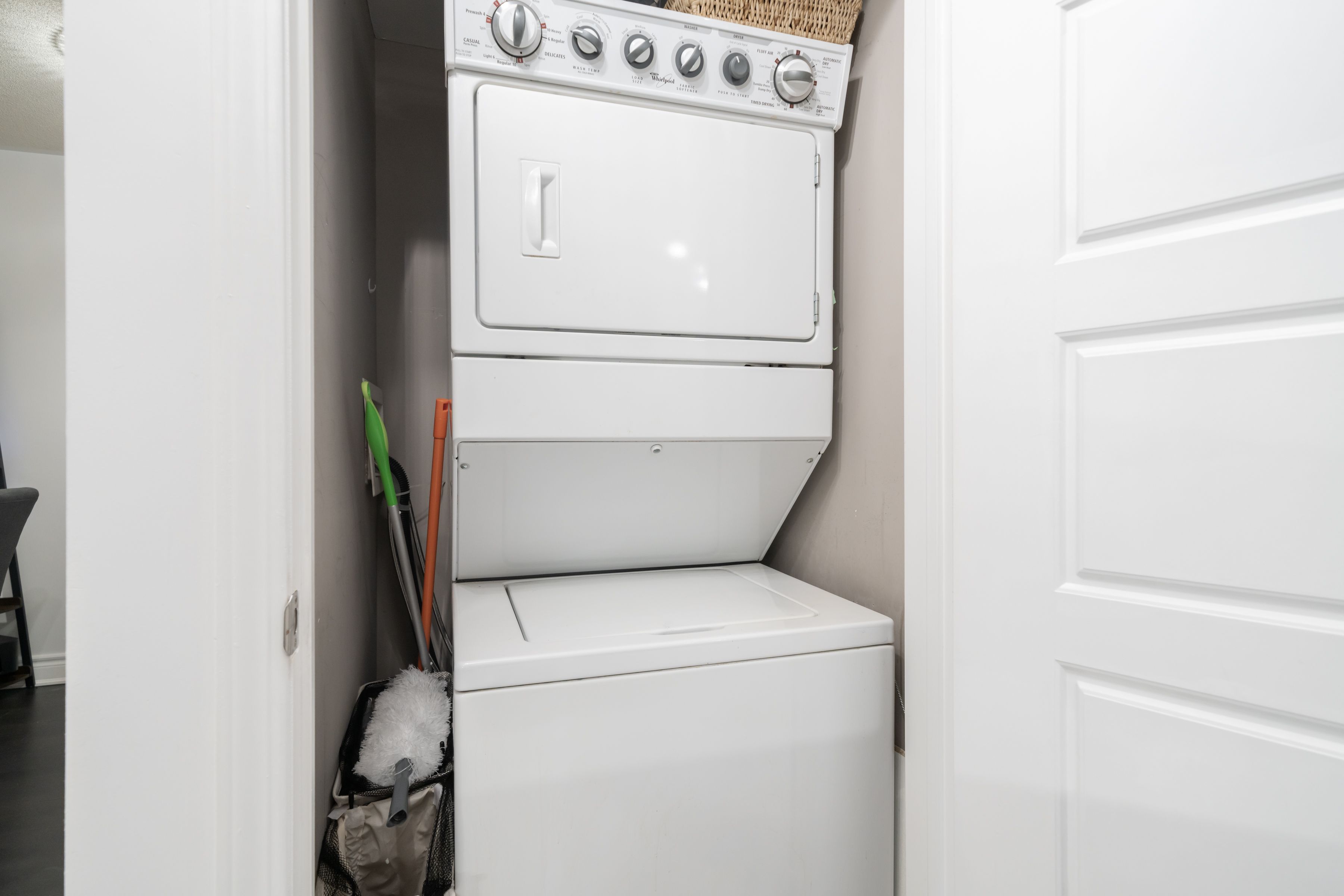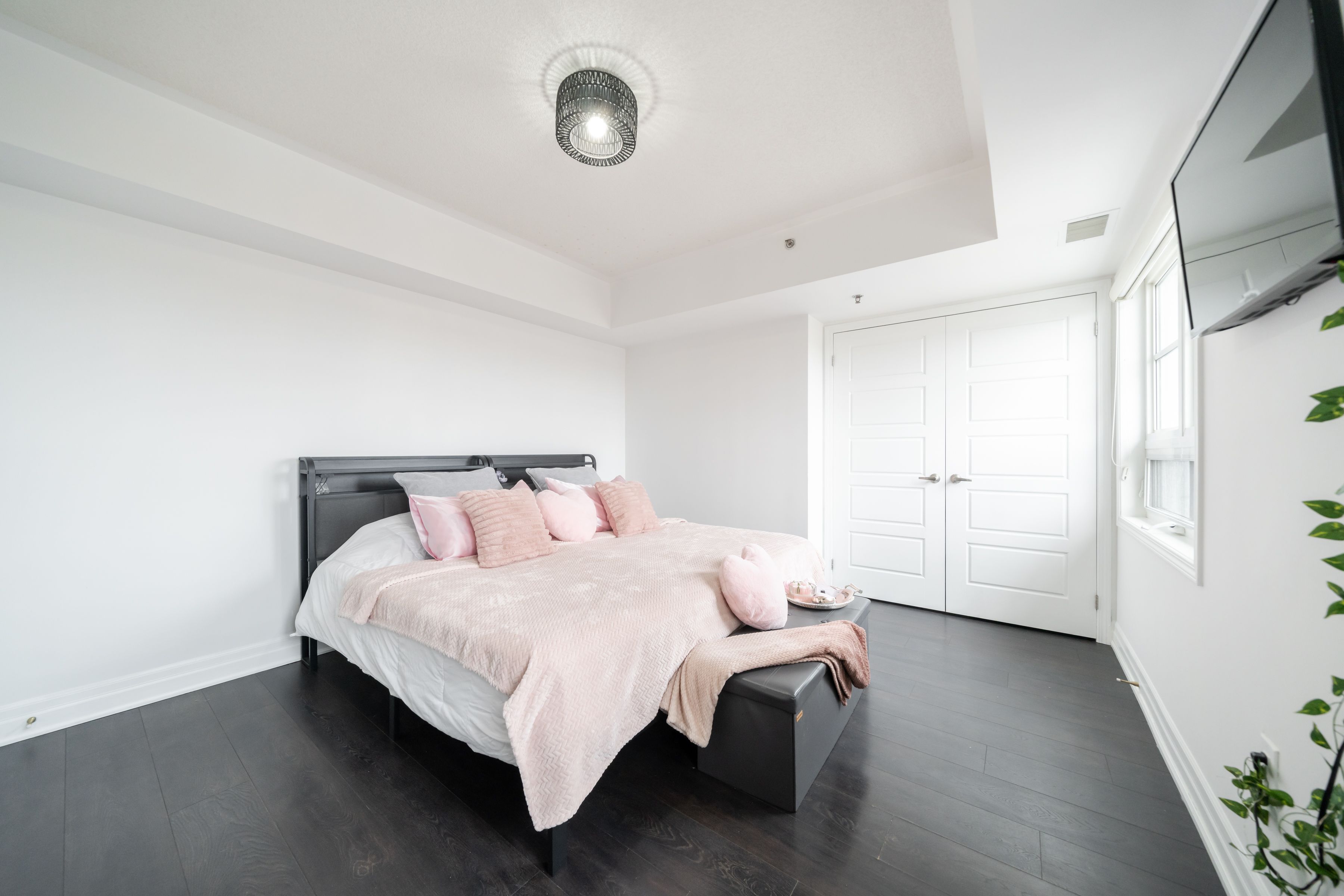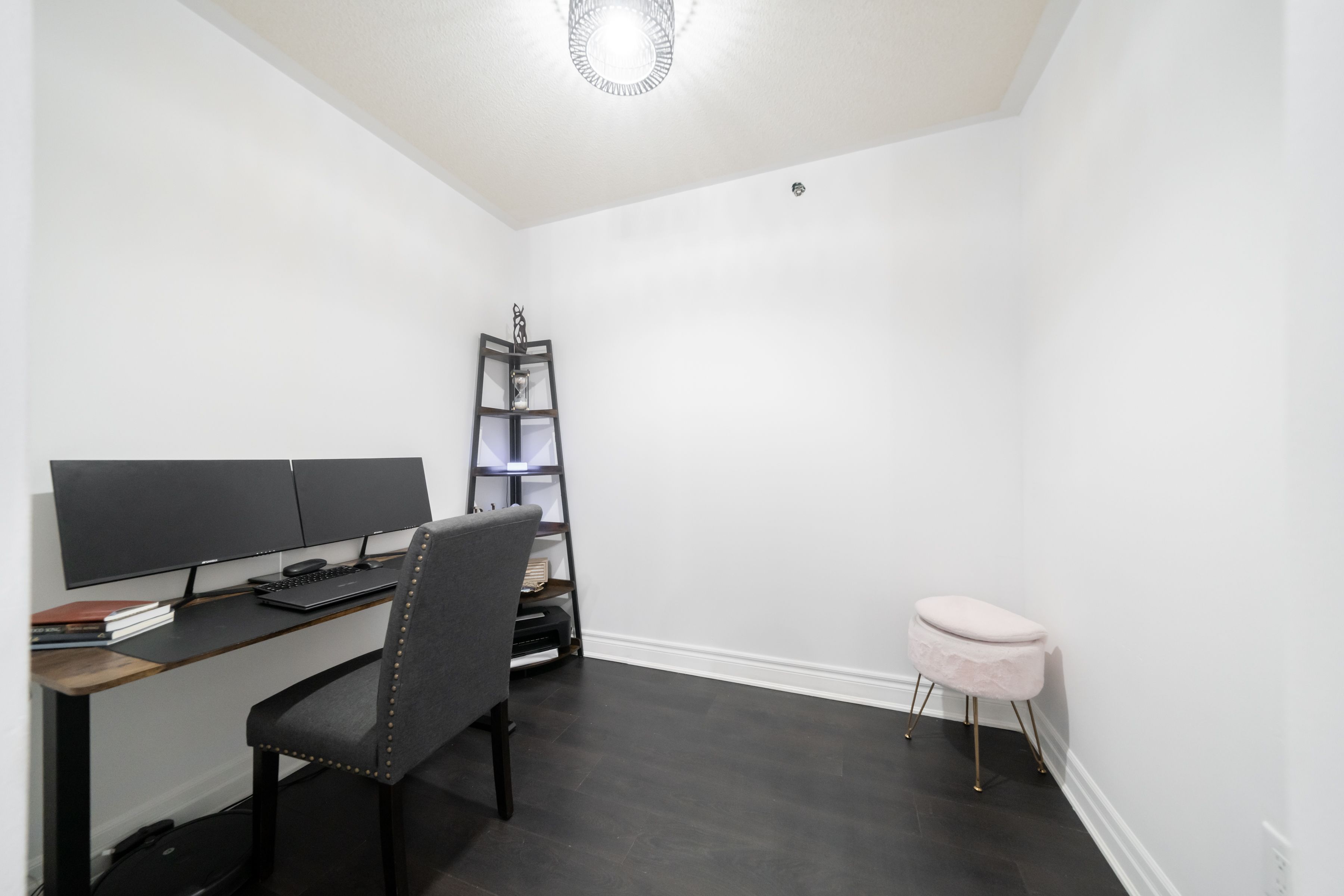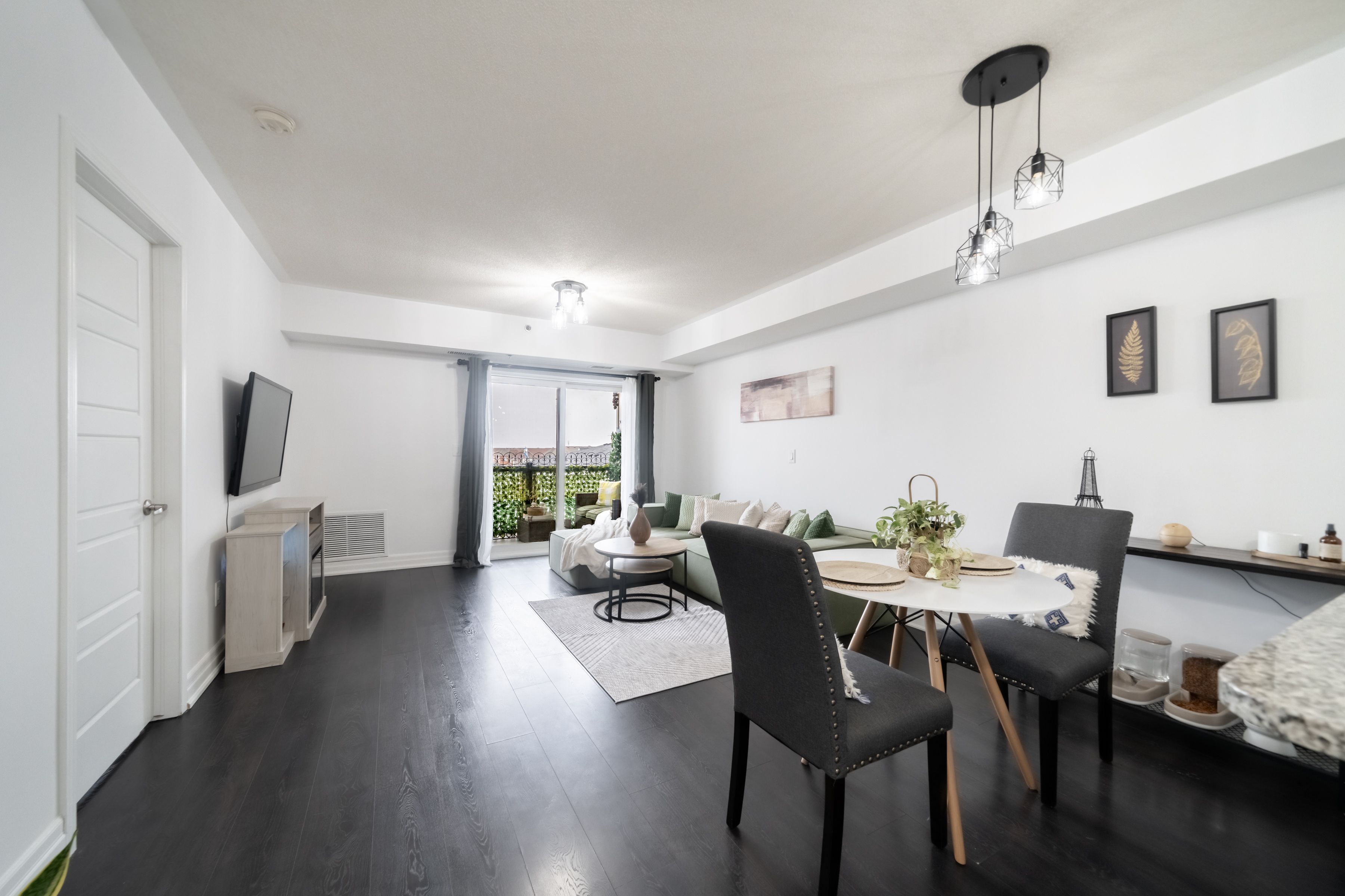 Beautiful and incredibly spacious 1+den located just minutes from mount pleasant go station. Enjoy quiet, convenient living in this bright and inviting home filled with natural light throughout. Step into 767 sf of a freshly painted, comfortable space featuring updated light fixtures and laminate flooring, creating a modern and cohesive feel. The full size kitchen is perfect for the at home cook, complete with granite countertops, full size stainless steel appliances, ample counter space, and plenty of storage. A large breakfast bar provides the ideal setting for casual meals, morning coffee, or entertaining guests. The open concept layout offers generous space for formal dining, accented by a stylish chandelier, and flows seamlessly into a spacious living area designed for both relaxation and hosting. Large windows allow natural light to pour in, enhancing the warm and welcoming atmosphere. Walk out to your private balcony and enjoy serene views and beautiful sunsets, perfect for unwinding at the end of the day. The oversized bedroom is carpet free and thoughtfully designed with two large windows, roller blinds, and a closet featuring custom built-in storage to maximize organization and functionality. The versatile den adds valuable additional living space, ideal for a home office, nursery, guest area, or additional storage, offering flexibility to suit your lifestyle needs. This well maintained unit offers incredible value in a highly convenient location and includes1 parking space and 1 locker for added storage. Within walking distance to mount pleasant go station, schools, libraries, salons, shops, and restaurants. Just minutes to walmart, home depot, grocery stores, parks, and more. A fantastic opportunity and great value for first-time buyers, investors, or down-sizers looking for comfort, style, and convenience.