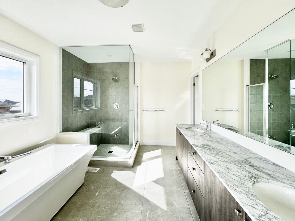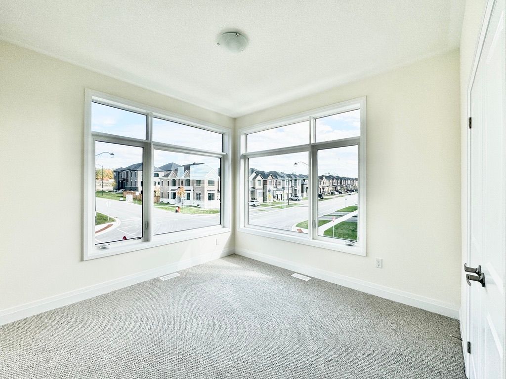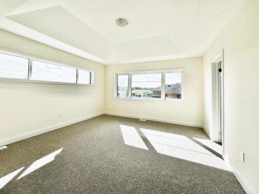 Welcome to this beautiful brand new home filled with natural light from its many windows and corner lot location. The main floor features a separate dining room, private office, and a spacious kitchen with stone countertops, stainless steel appliances, and a walkout to a raised deck, perfect for entertaining. A cozy gas fireplace adds warmth and charm to the main living area. Upstairs, enjoy brand new carpet in all bedrooms. The primary bedroom offers a large 5-piece ensuite, walk-in closet, and stunning sunset views over the golf course. The second bedroom includes a private ensuite, while the third and fourth bedrooms share a convenient jack-and-jill bathroom. The fourth bedroom also features a balcony overlooking a new park. Additional highlights include a two-car garage, parking for two more vehicles on the driveway, and a bright, open layout ideal for modern family living. Available immediately. Basement is not included.