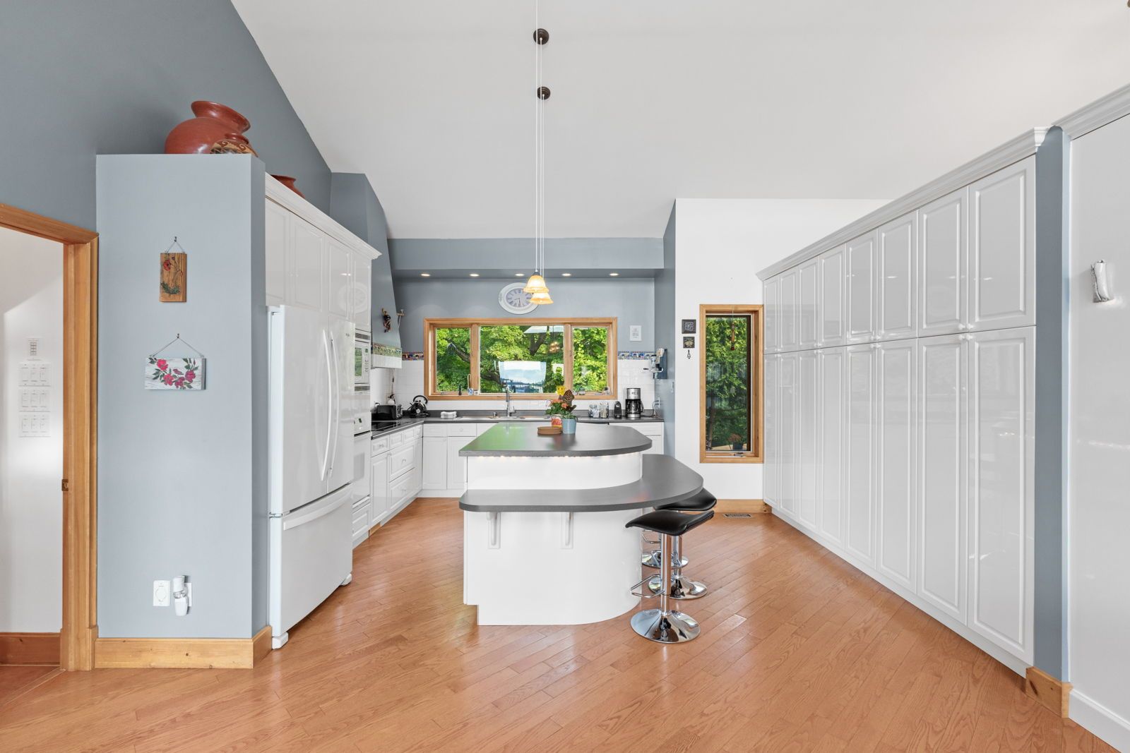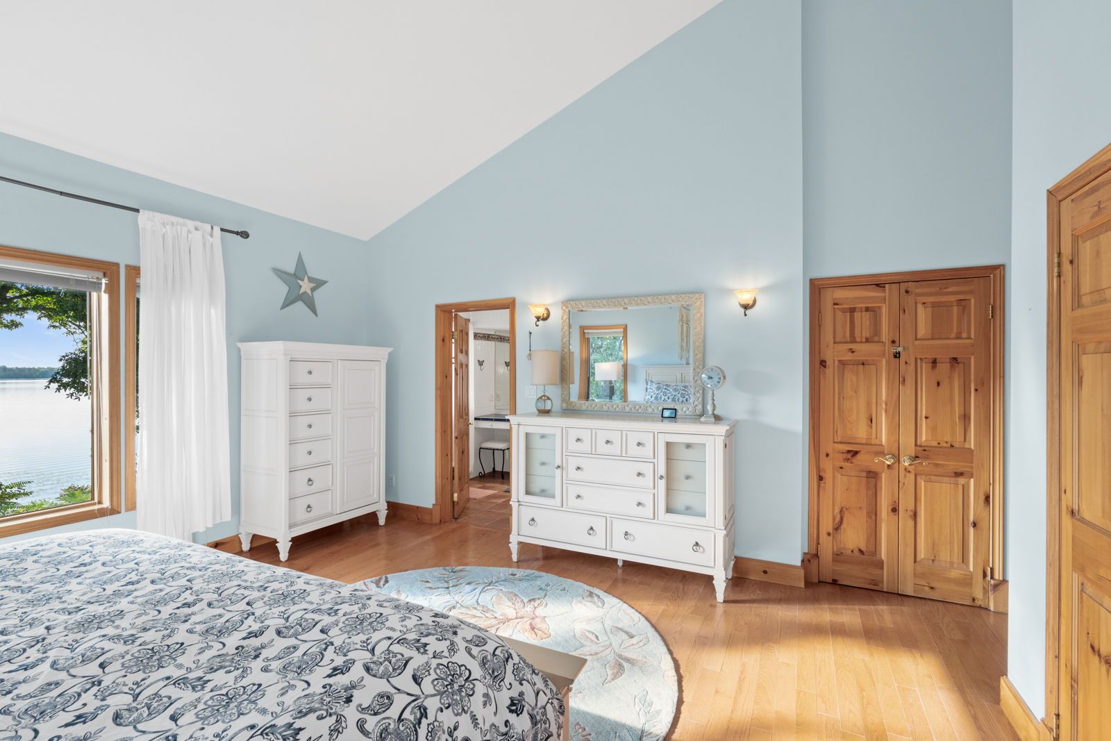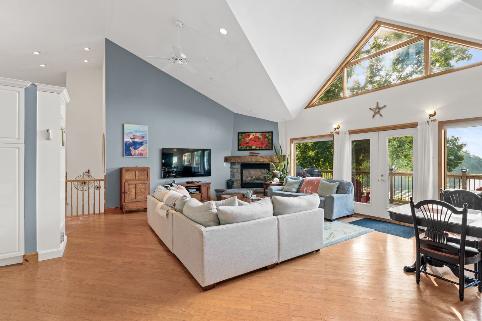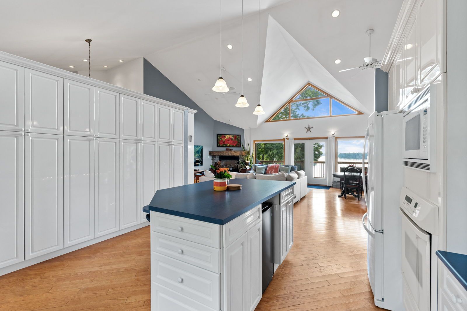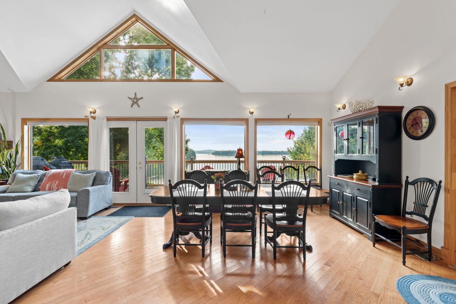 • Large windows showcase stunning lake views and natural light throughout.