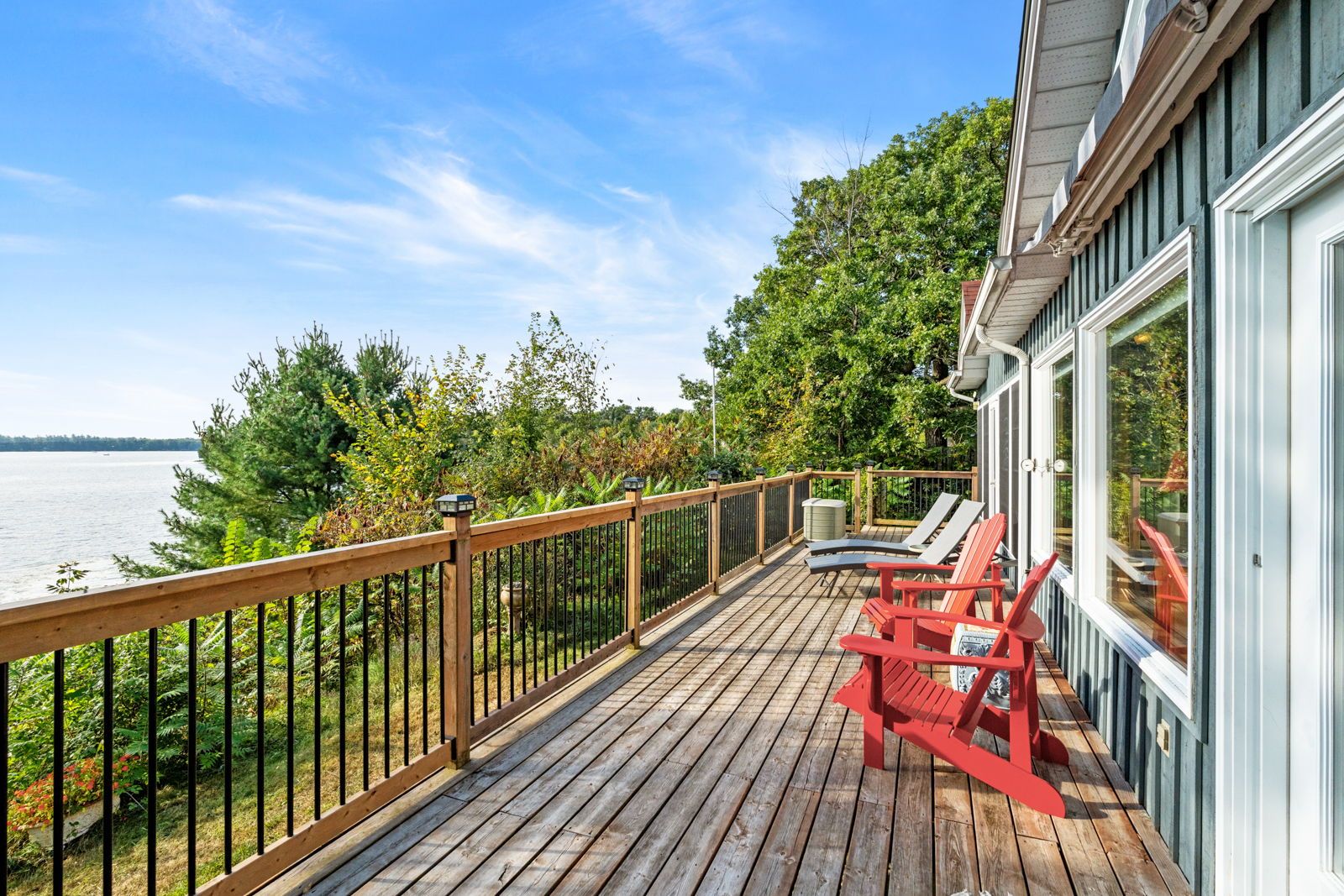 • Expansive waterfront with a dock, great for boating and swimming.